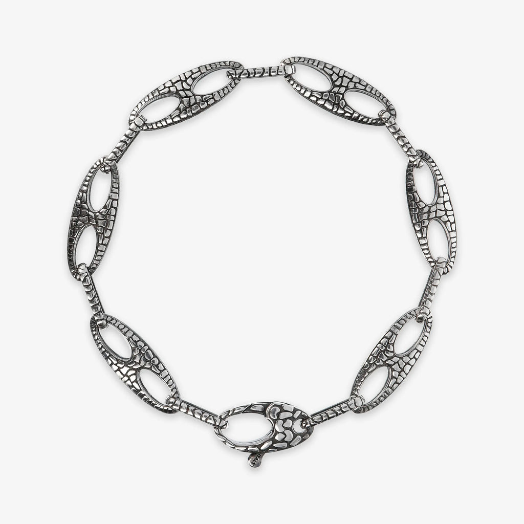 Albert M. Unisex-Gliederarmband aus 925er Silber mit Krokodilstruktur. Erhältlich in zwei Größen: klein (18 cm) und groß (21,6 cm).