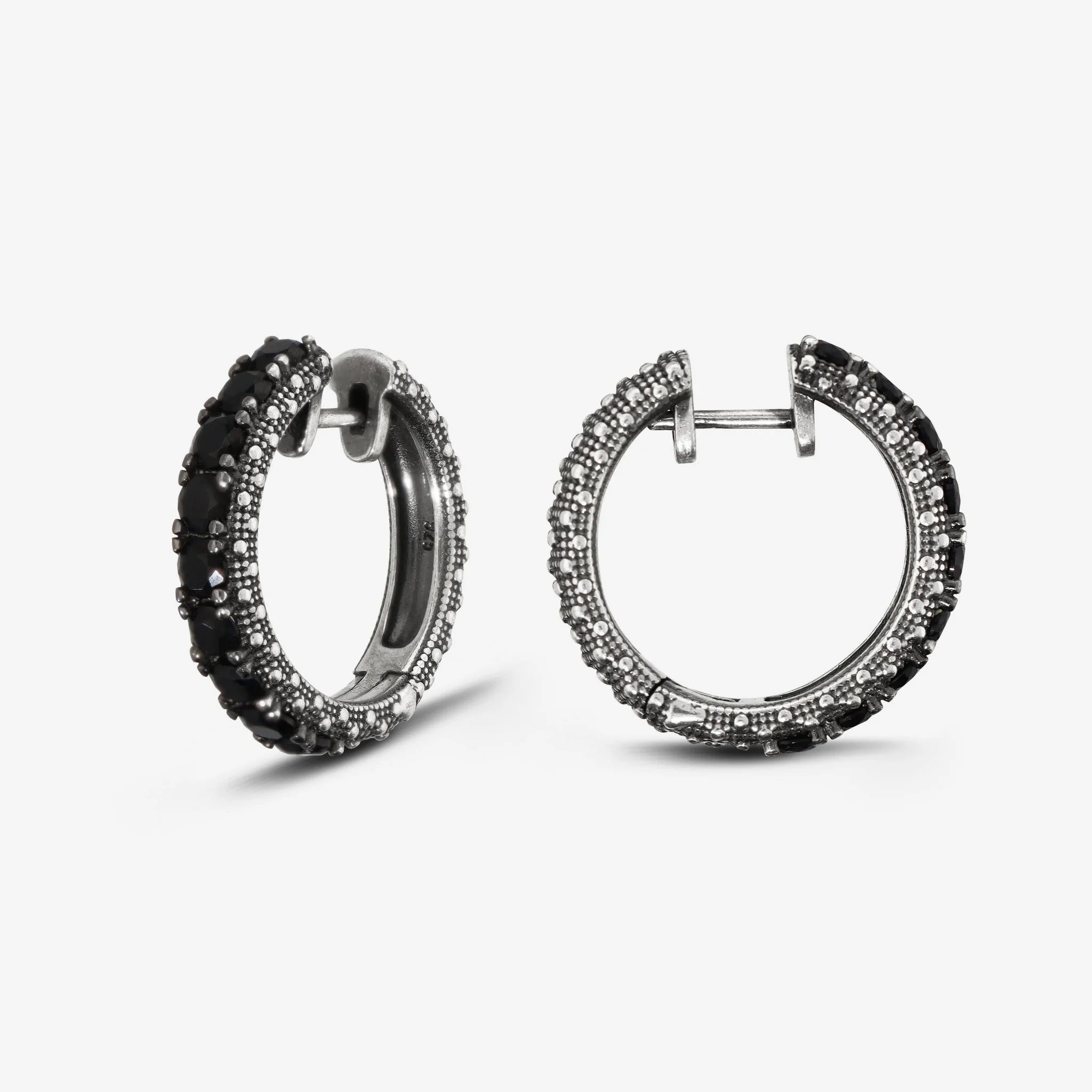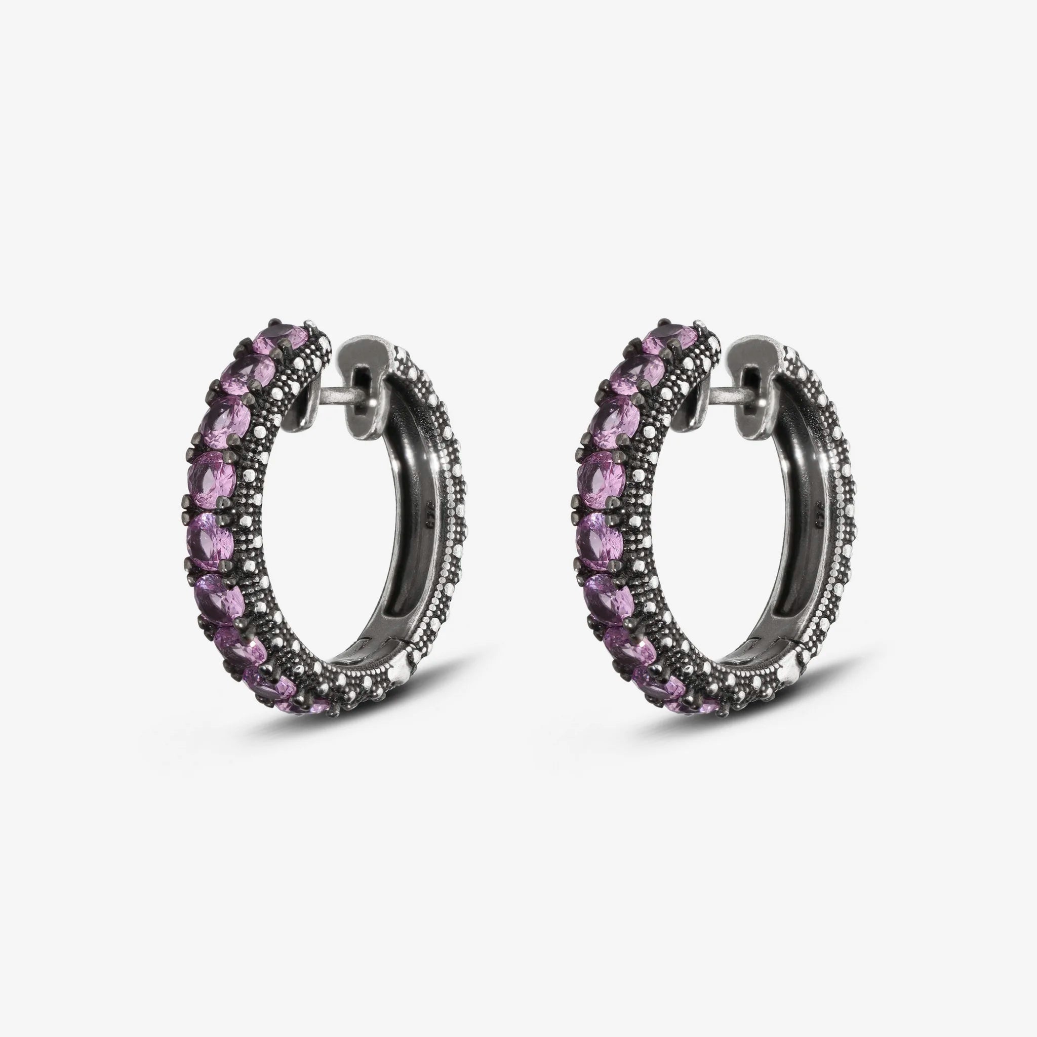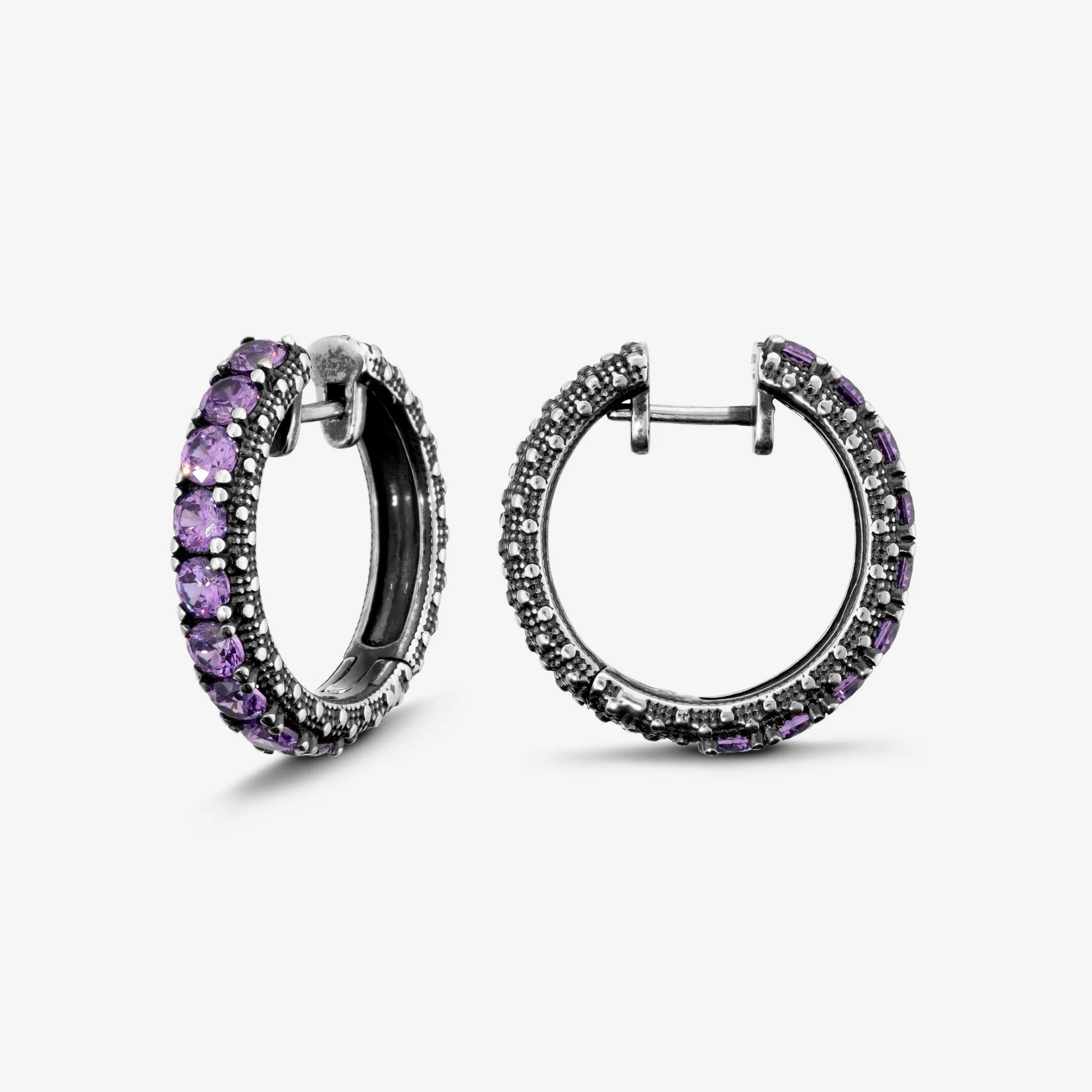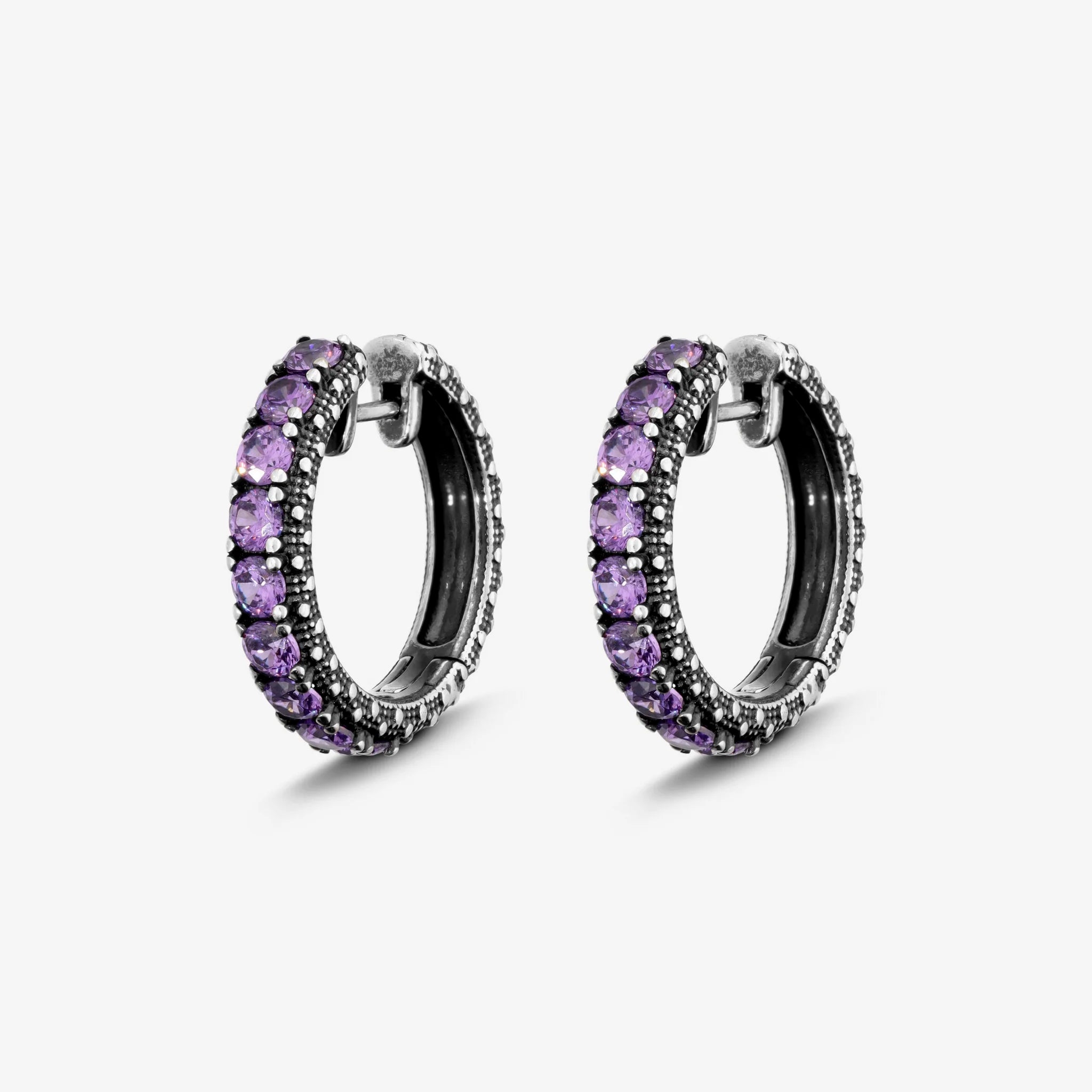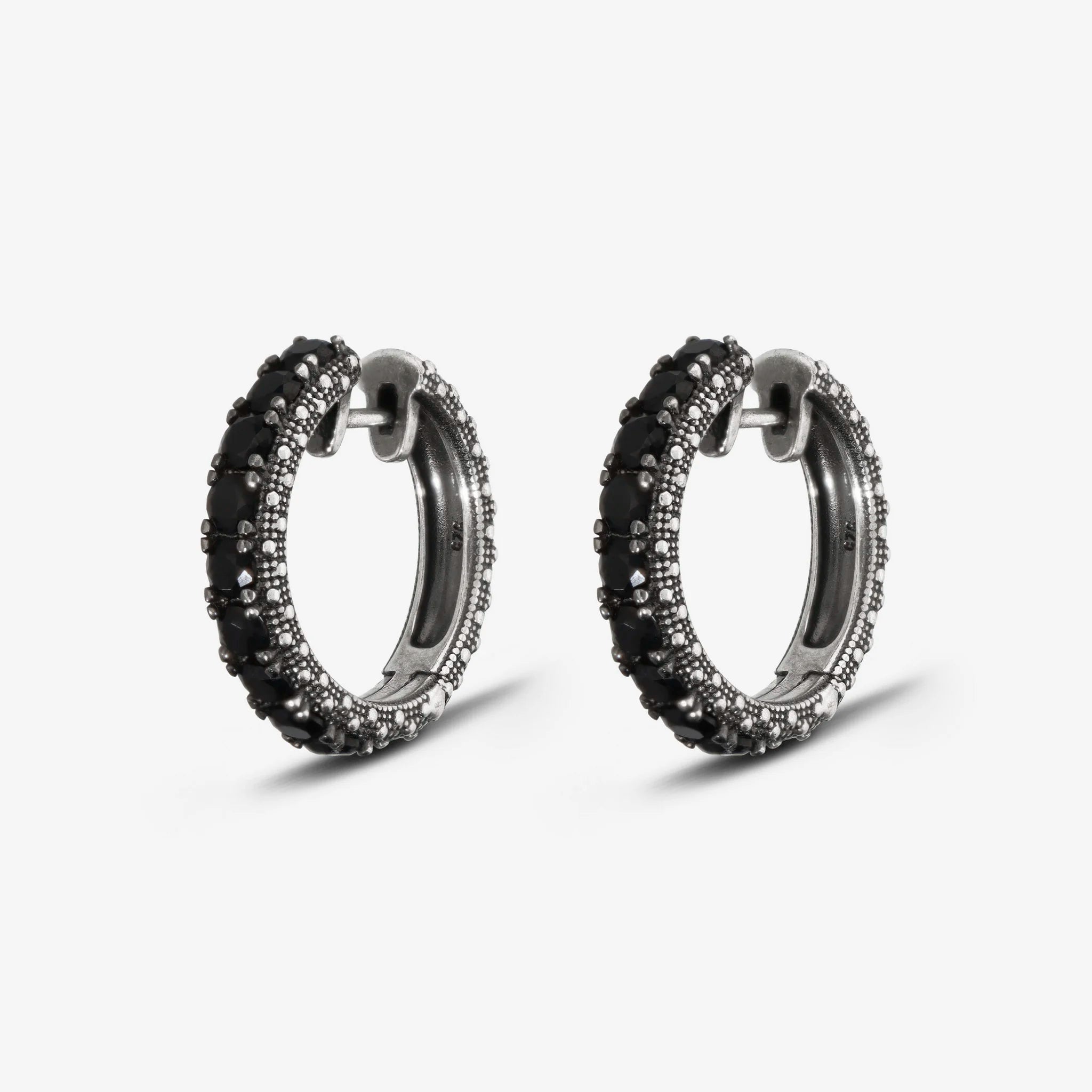 Orecchini a cerchio grandi Albert M. realizzati in Argento 925 con superficie texture riccio di mare impreziositi da pietre. Chiusura con perno a incastro.