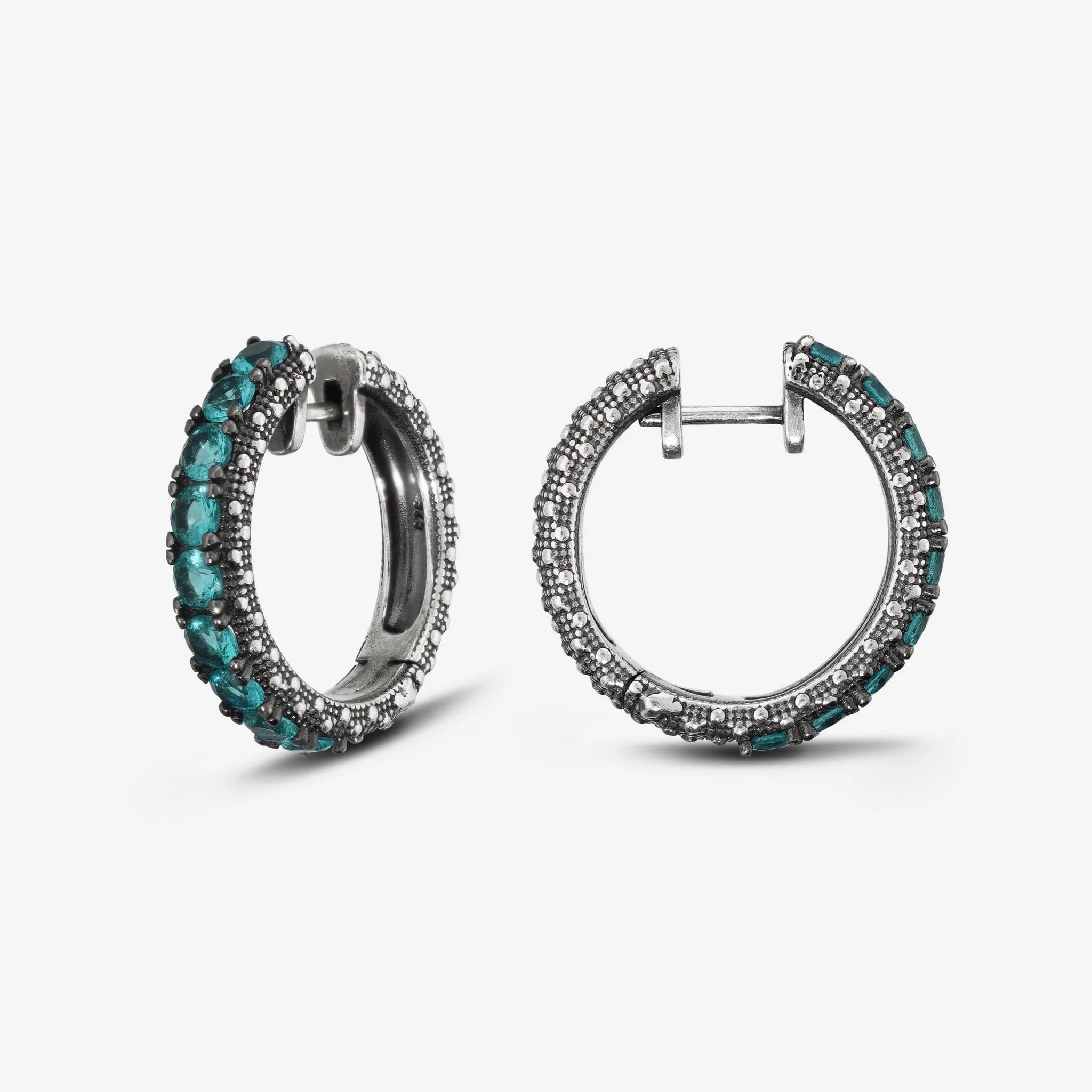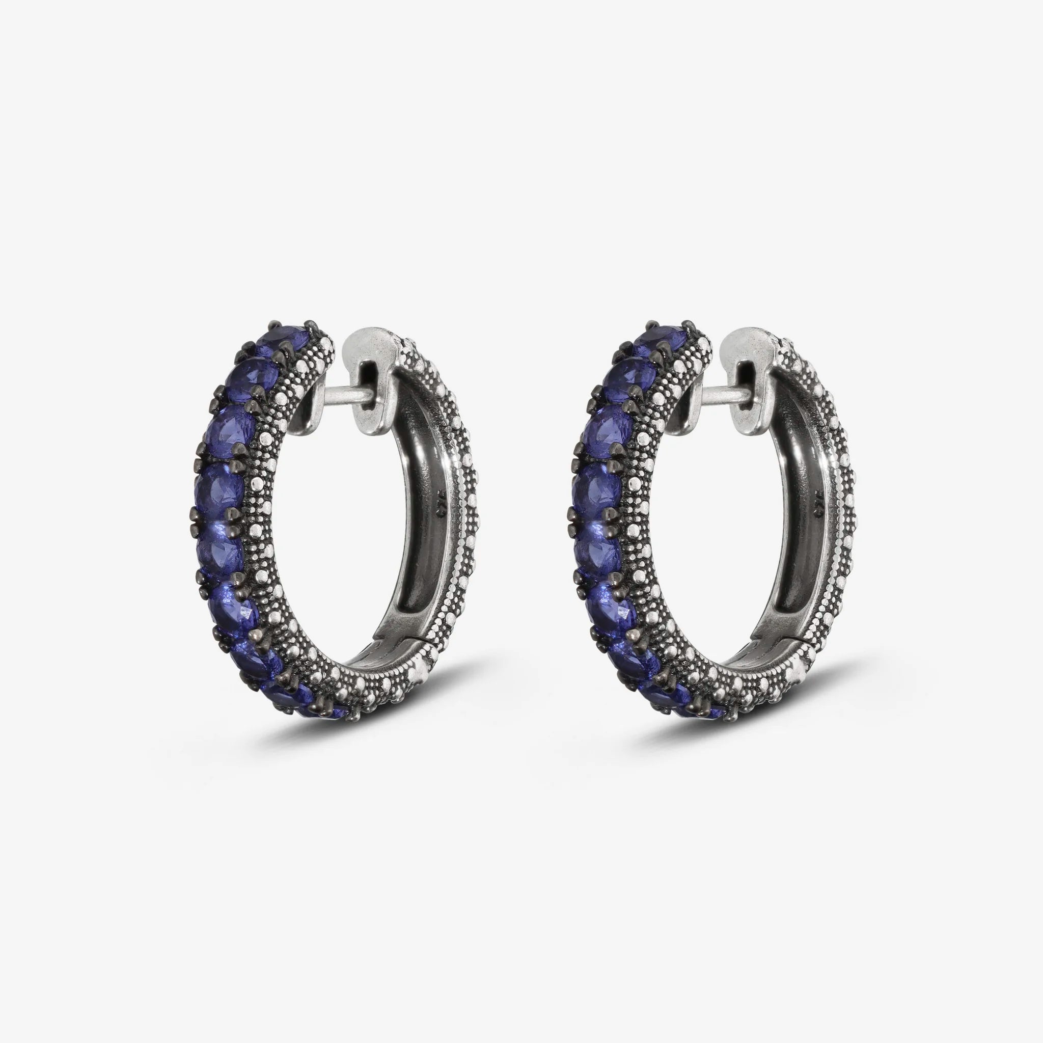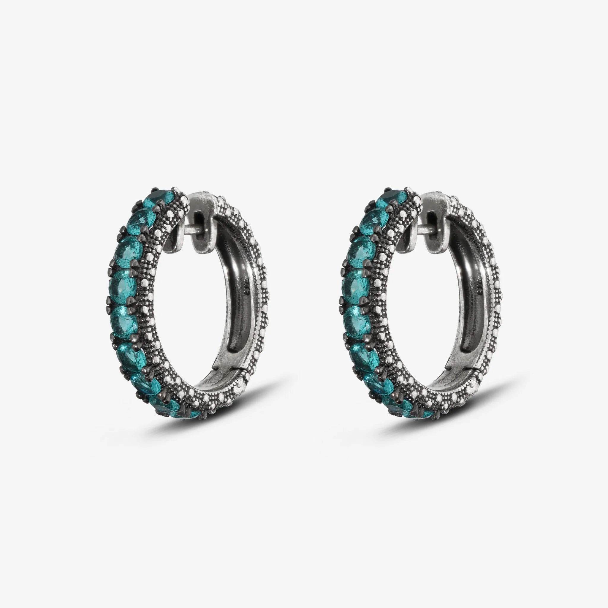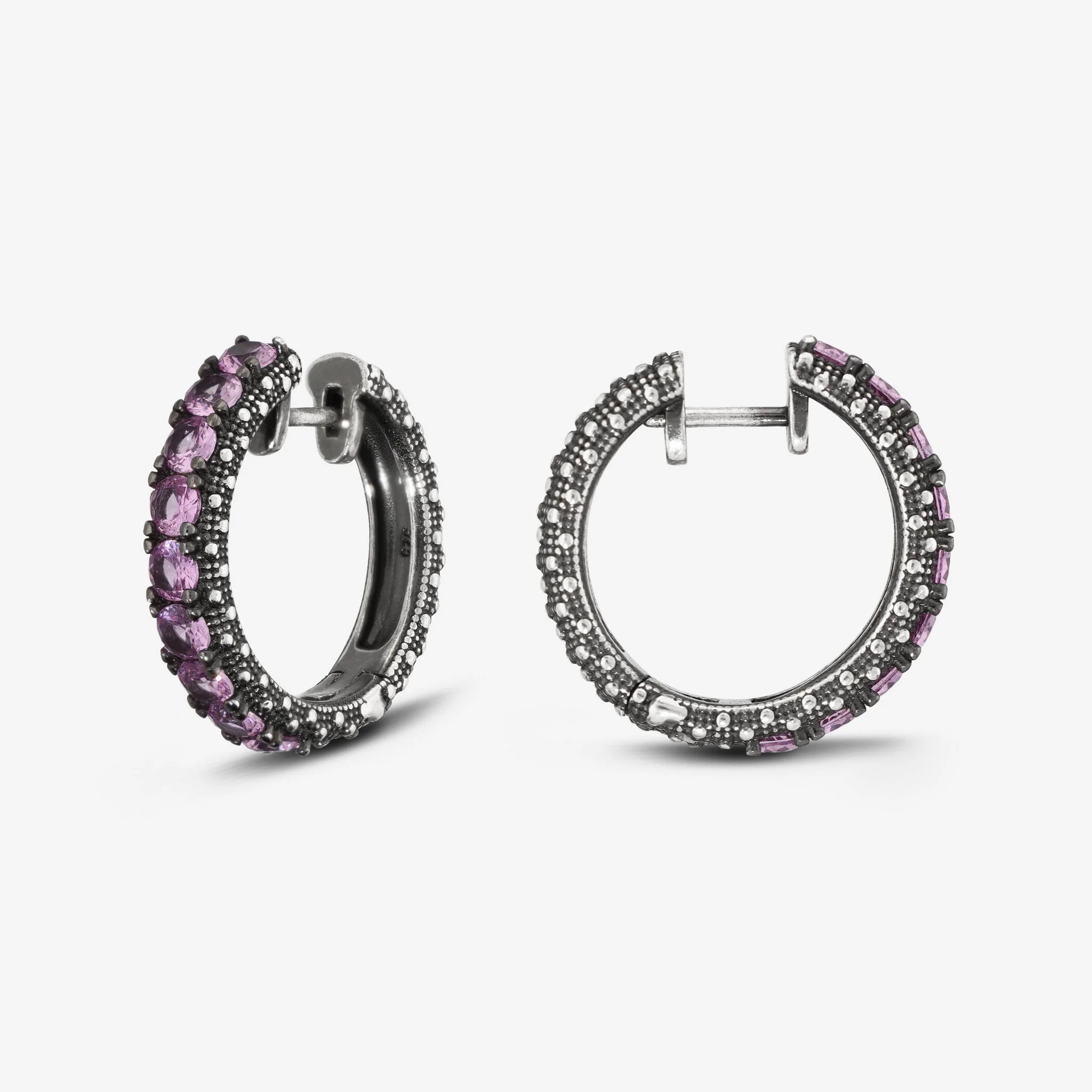Orecchini a cerchio grandi Albert M. realizzati in Argento 925 con superficie texture riccio di mare impreziositi da pietre. Chiusura con perno a incastro.