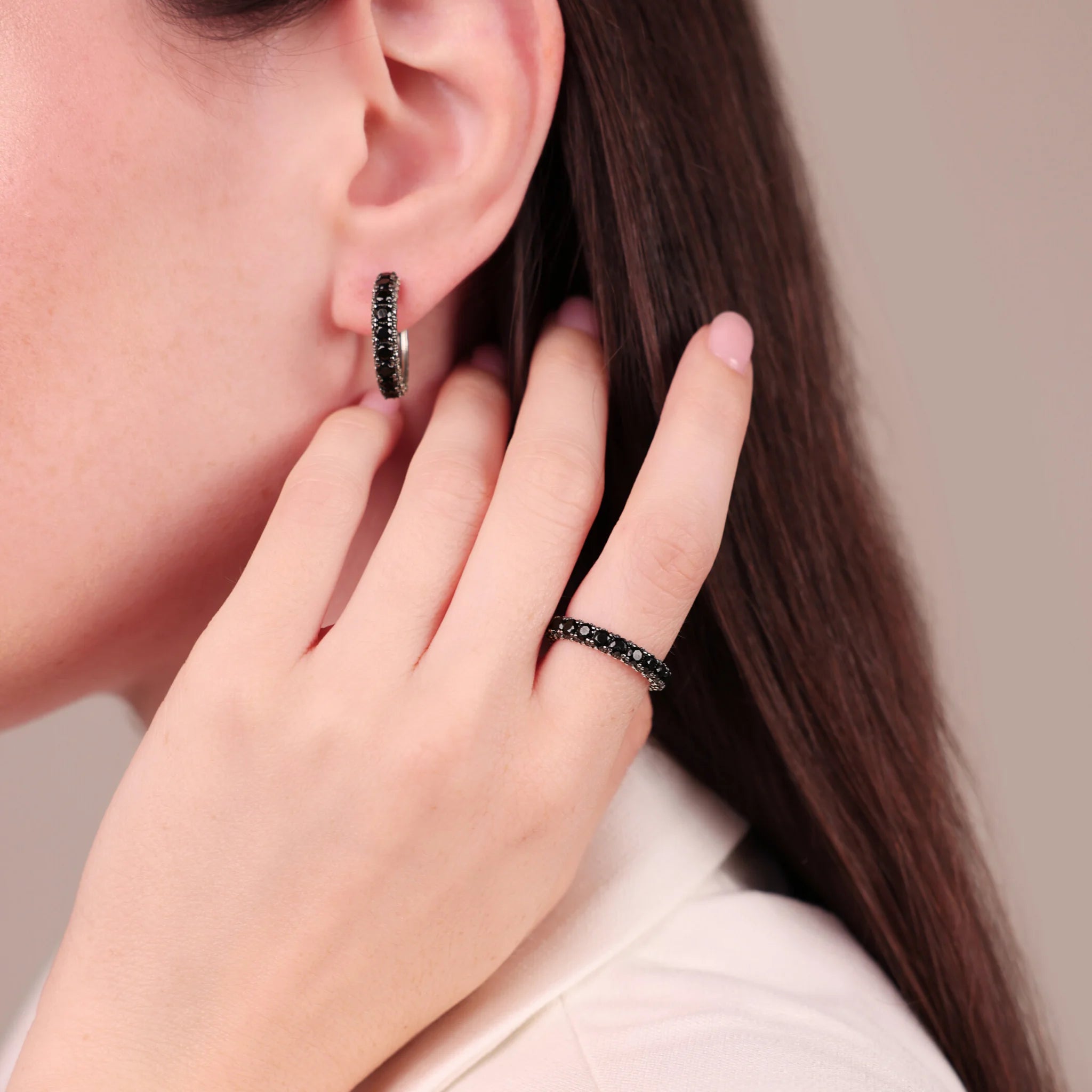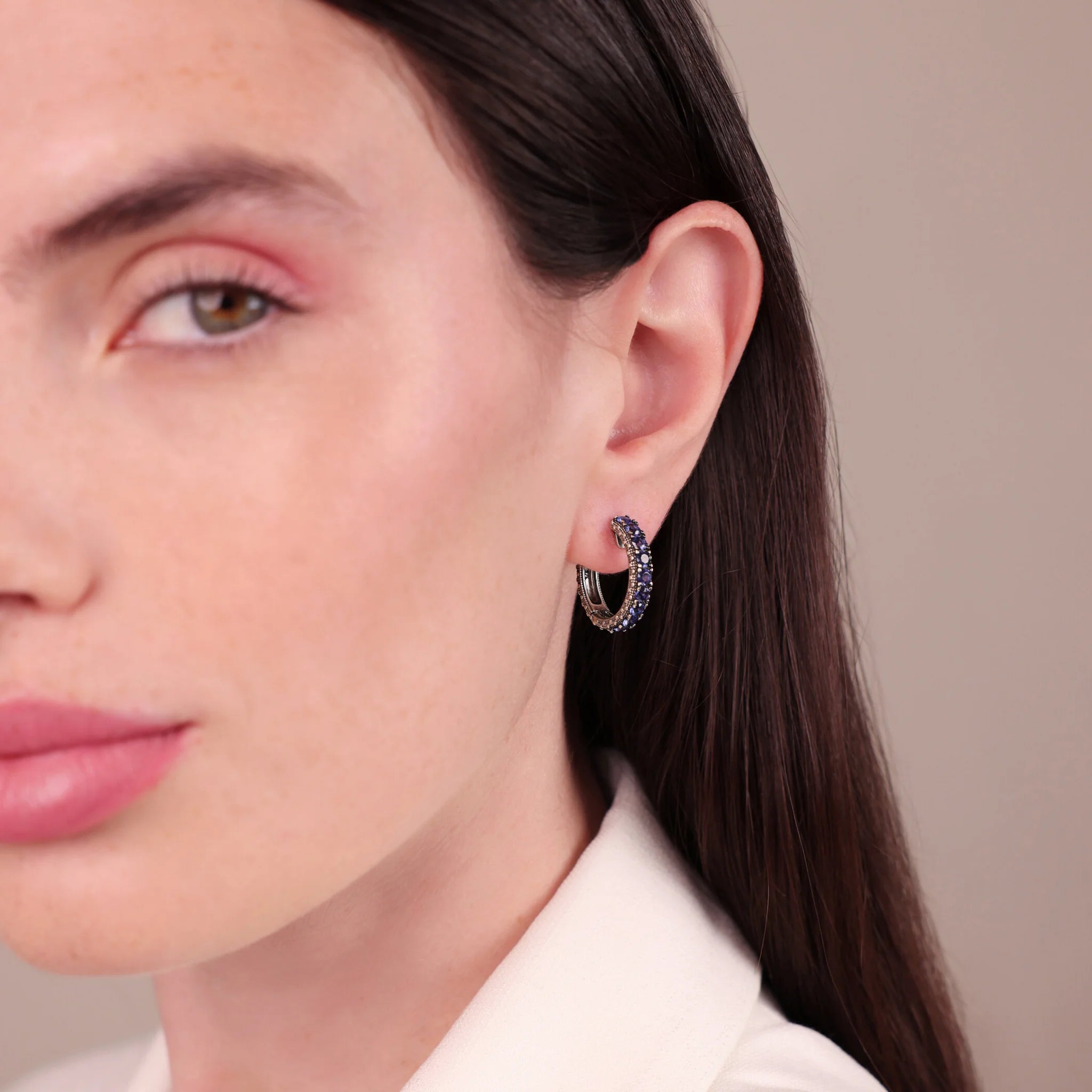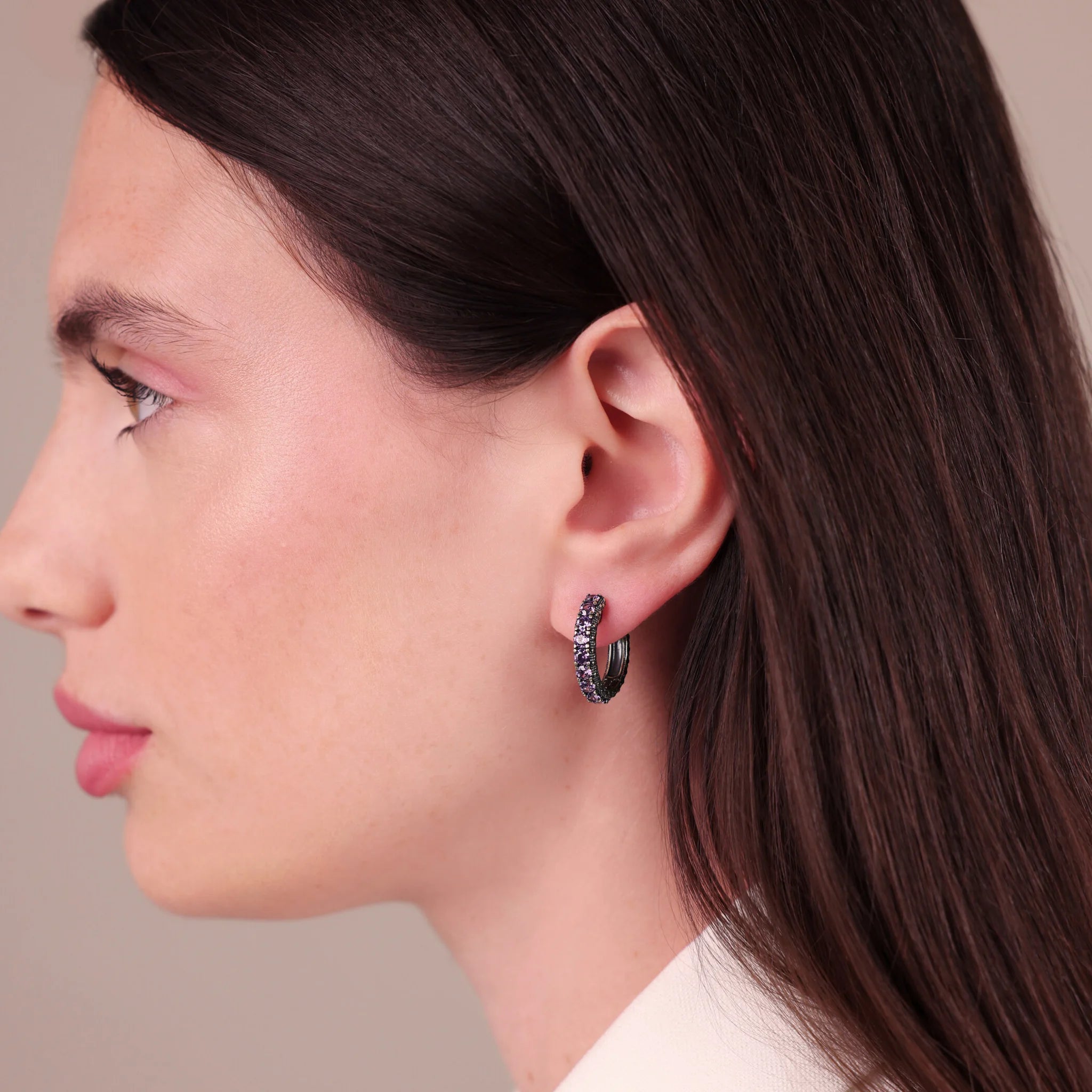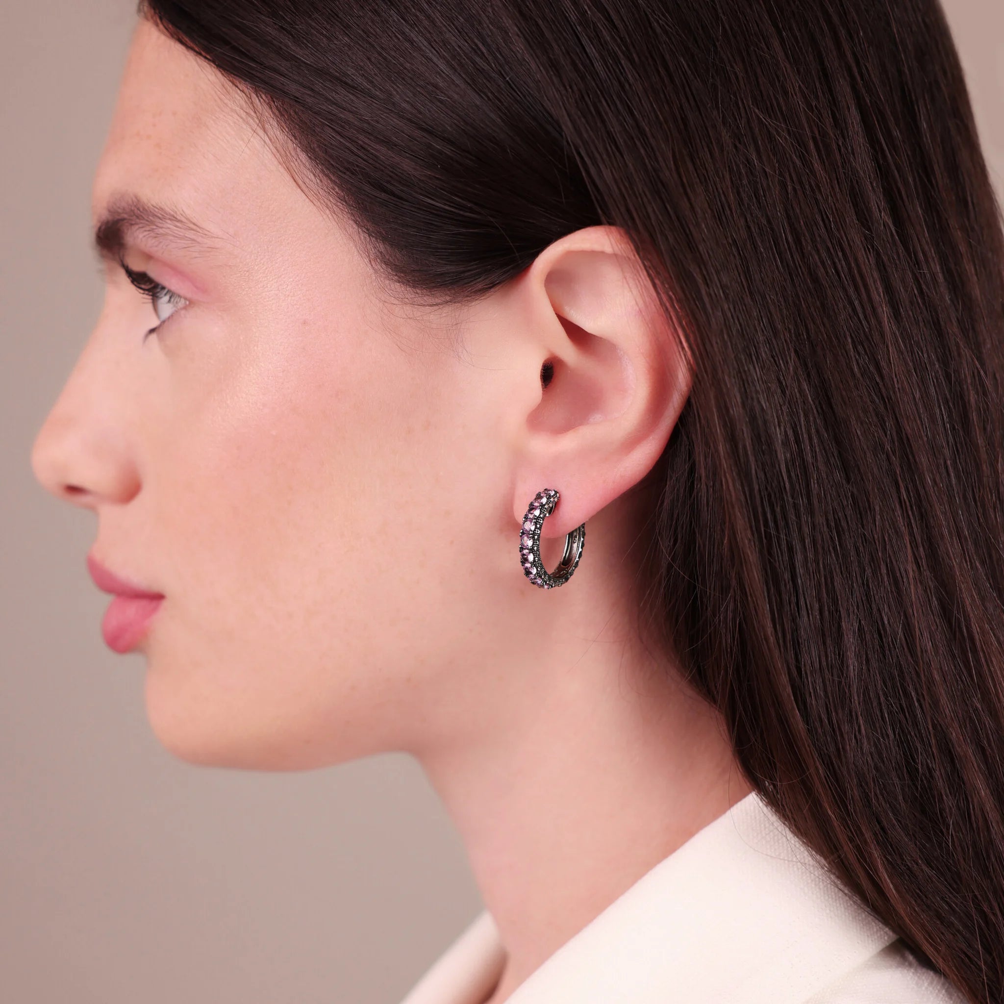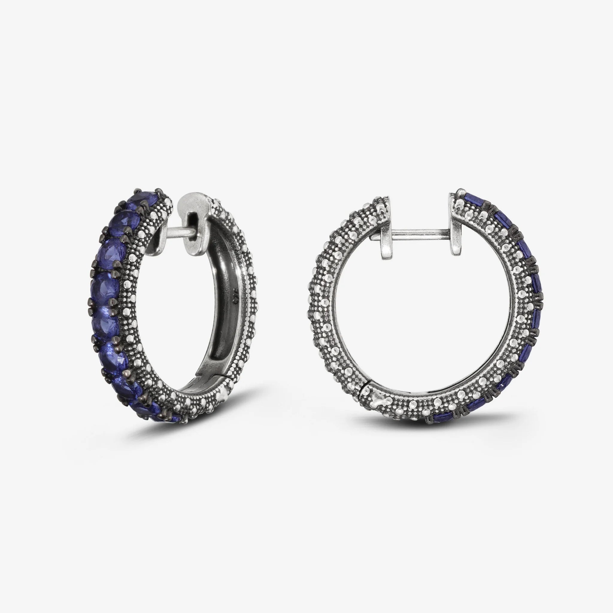 Orecchini a cerchio grandi Albert M. realizzati in Argento 925 con superficie texture riccio di mare impreziositi da pietre. Chiusura con perno a incastro.