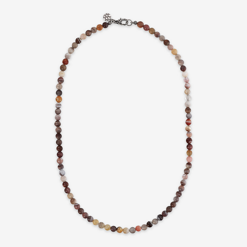 Albert M. unisex choker necklace embellished with faceted natural stone spheres; 925 silver lobster clasp closure with mermaid texture.