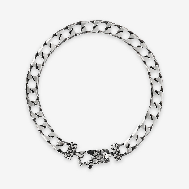Albert M. man bracelet made of 925 silver with square curb chain; lobster clasp with mermaid texture.
