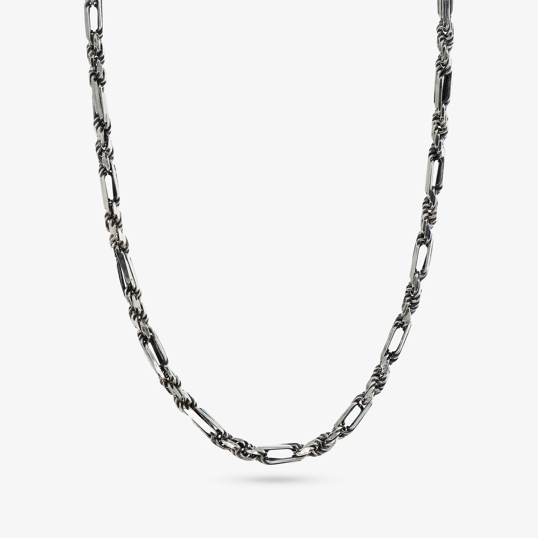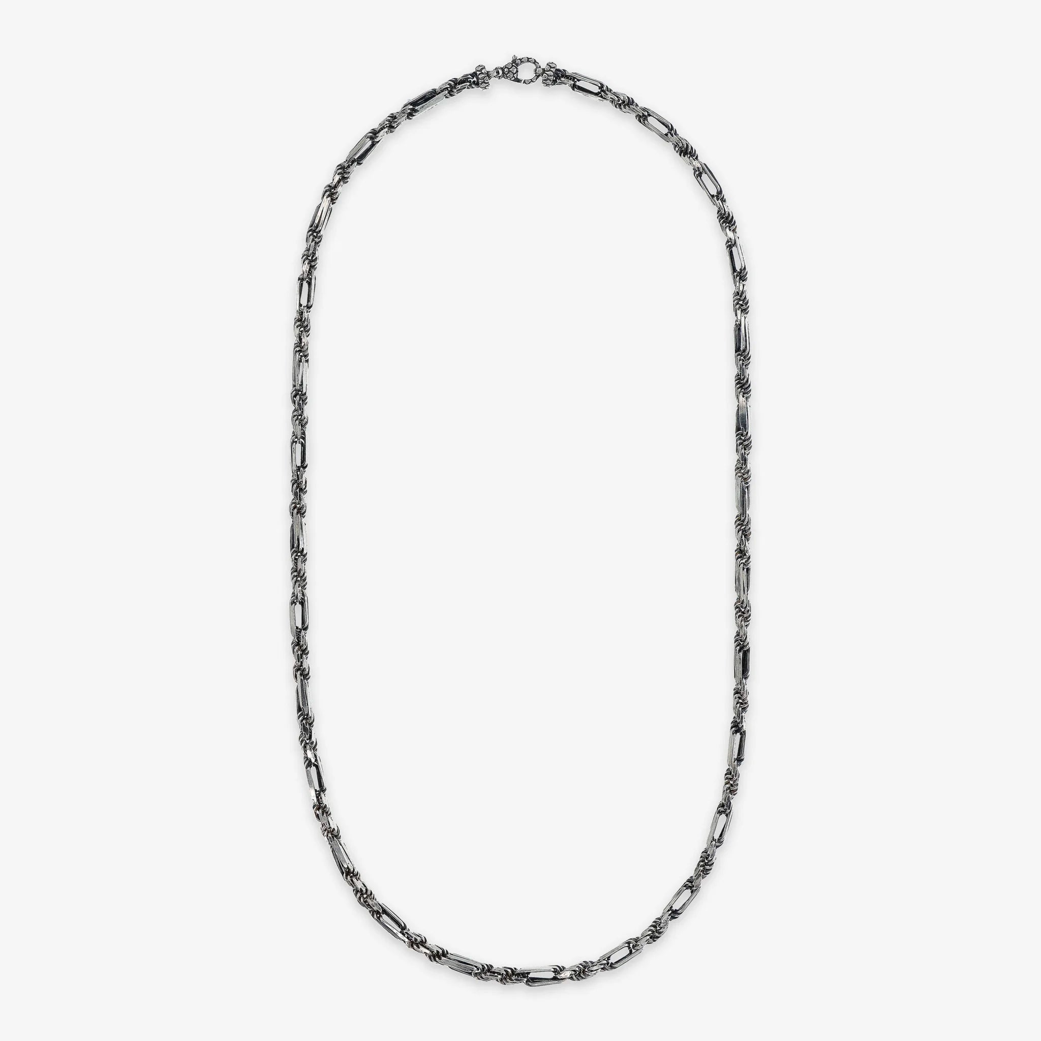 Albert M. men's necklace made of 925 silver with alternating vitero chain and rope link. Mermaid texture lobster clasp closure. Available in two sizes: Short 51 cm / Long 60 cm.