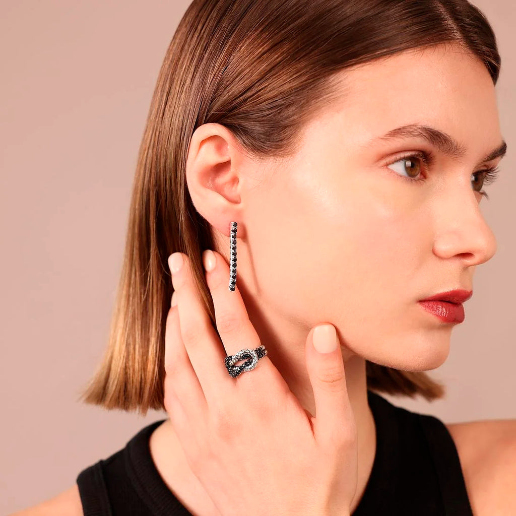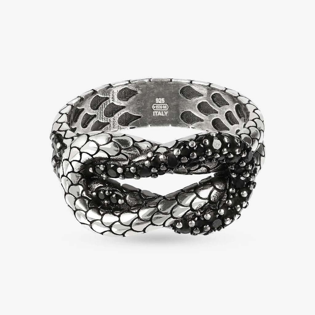 Albert M. women's ring made of 925 silver with mermaid texture and infinity-shaped element embellished with black spinel pavé.
