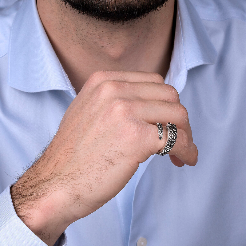 Albert M. contrarié ring for women made on a 925 silver base with an octopus texture that recalls its tentacles.