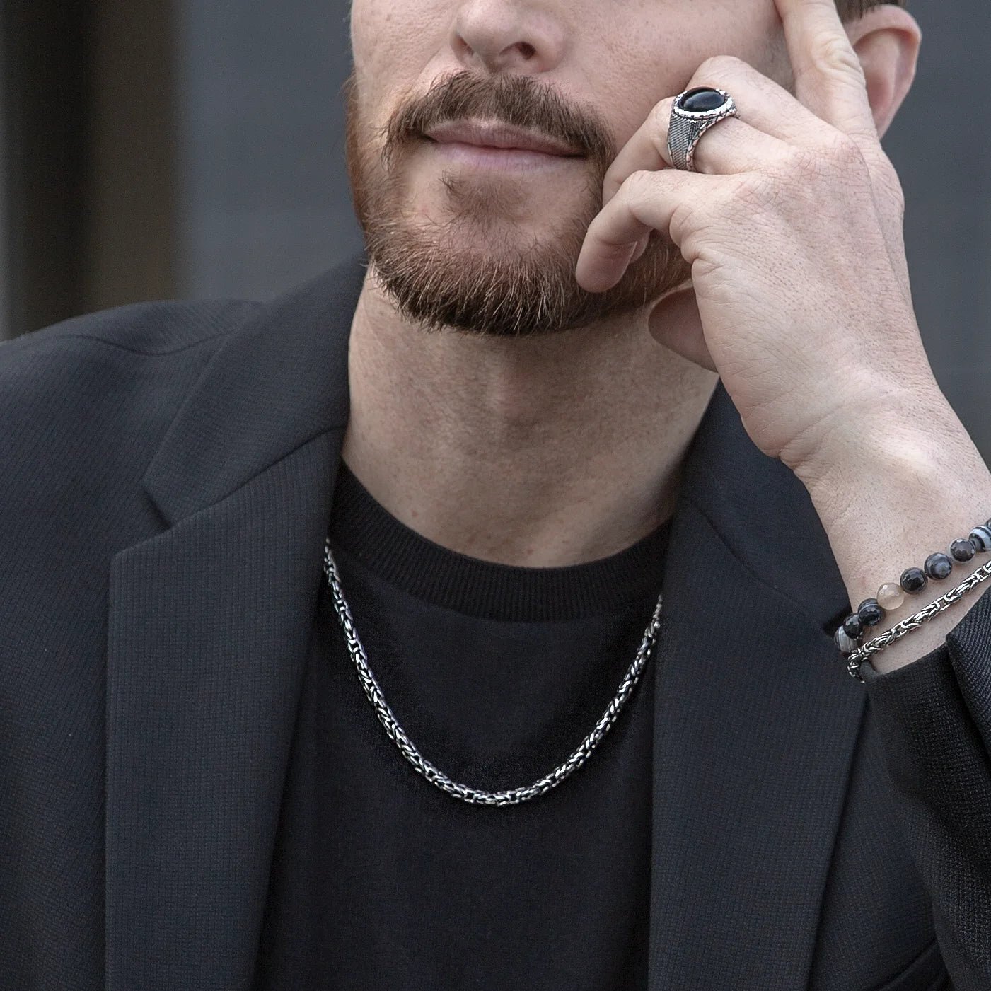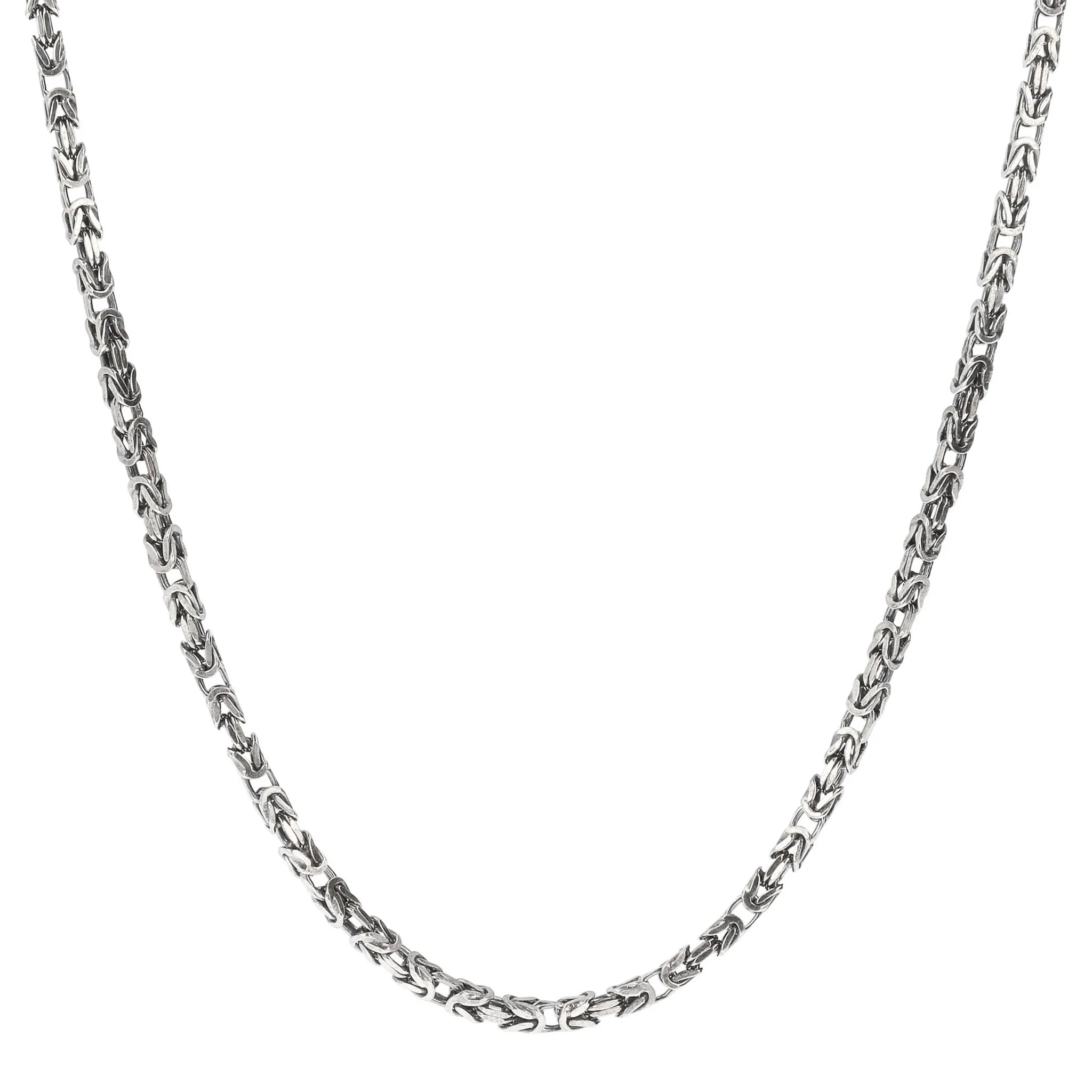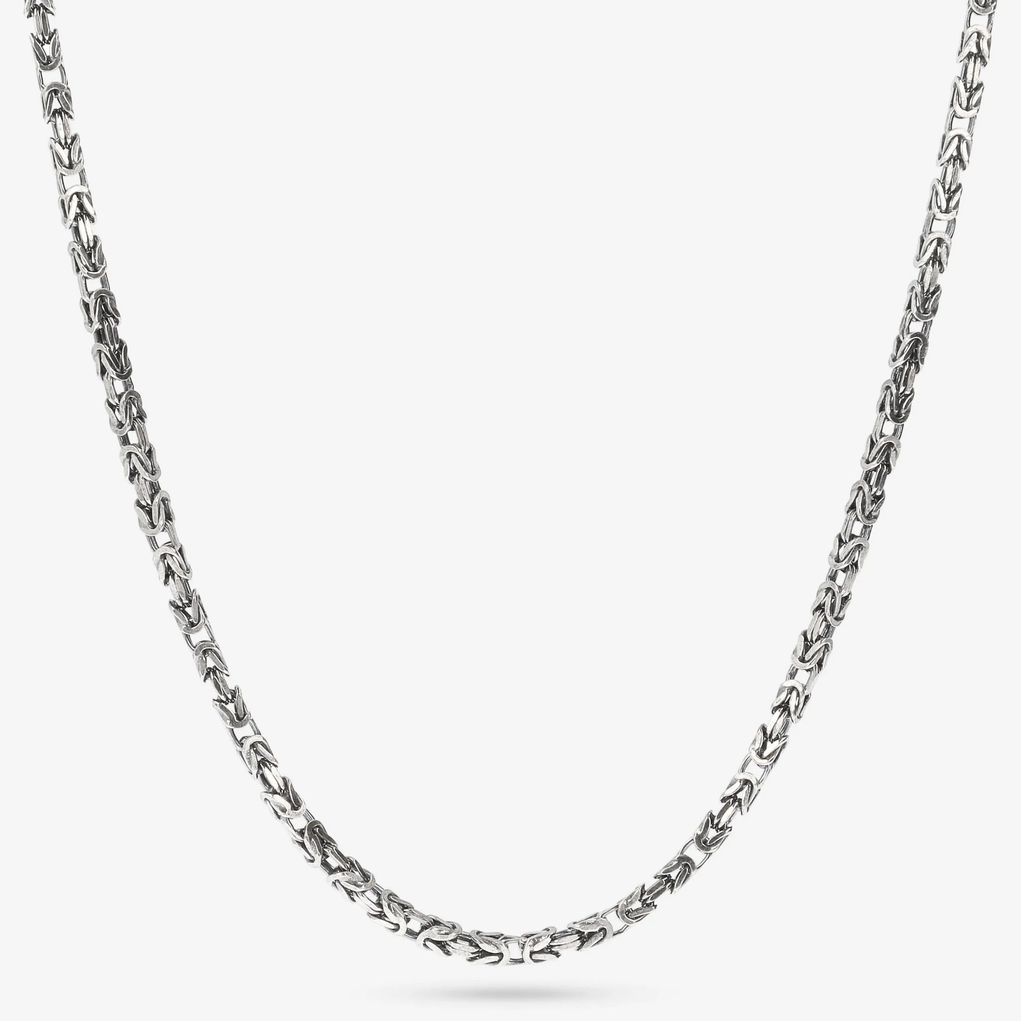 Albert M. man necklace made on a 925 silver base composed of a Byzantine chain; snap hook closure with mermaid texture. Available in two sizes: short (50cm) and long (60cm). Creation that can be easily worn with any outfit.