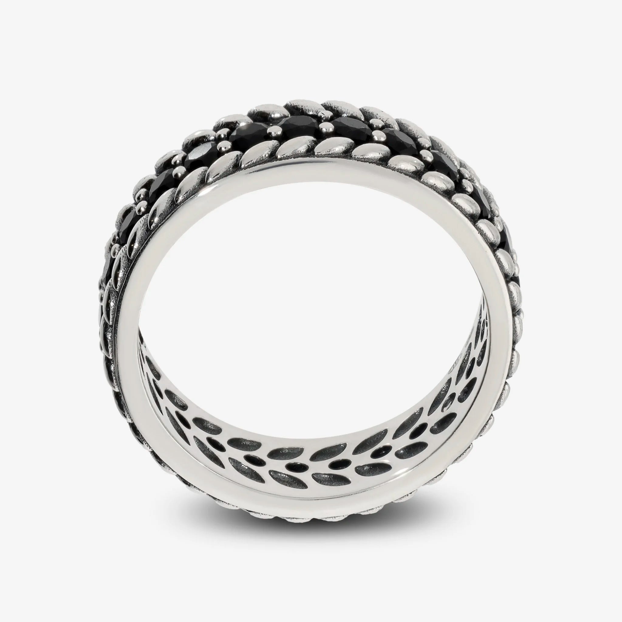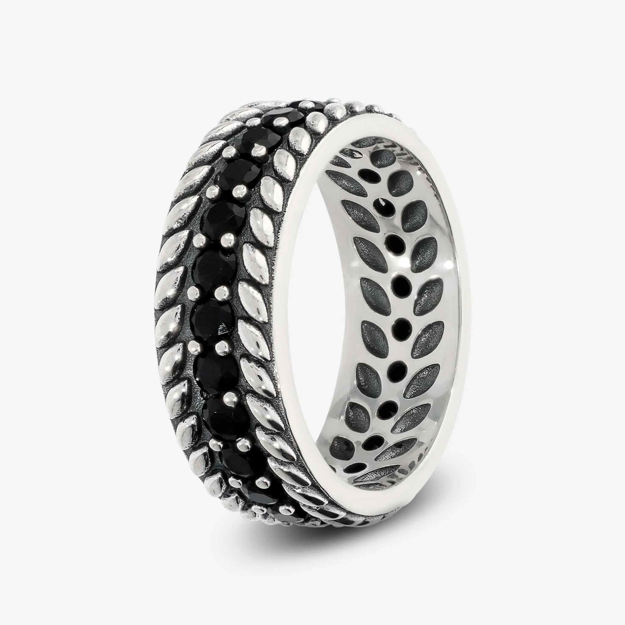 925 Silver Band Ring with Wheat Texture and Black Spinel