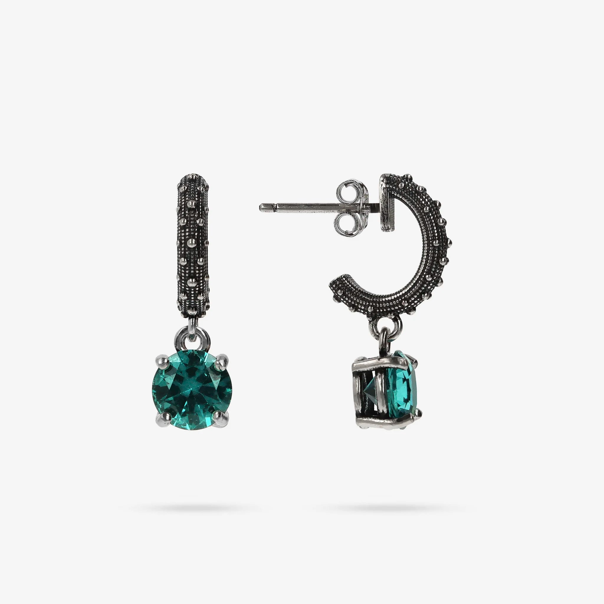 Sea Urchin Texture Hoop Earrings with Natural Stone Pendant