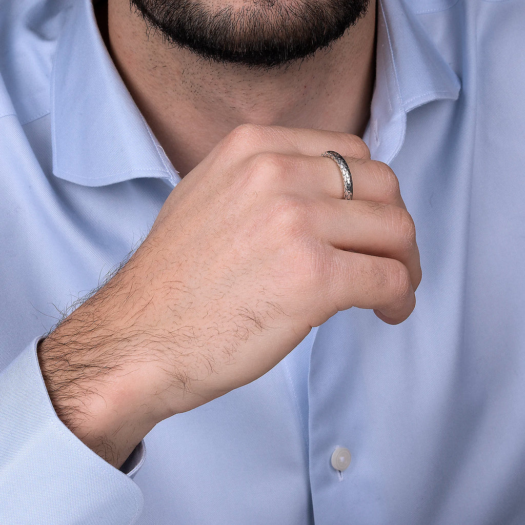 Albert M. unisex ring made on a 925 silver base with a classic design with mermaid texture.