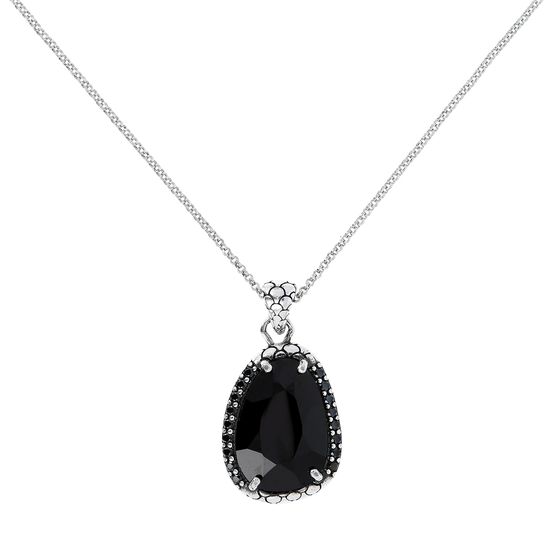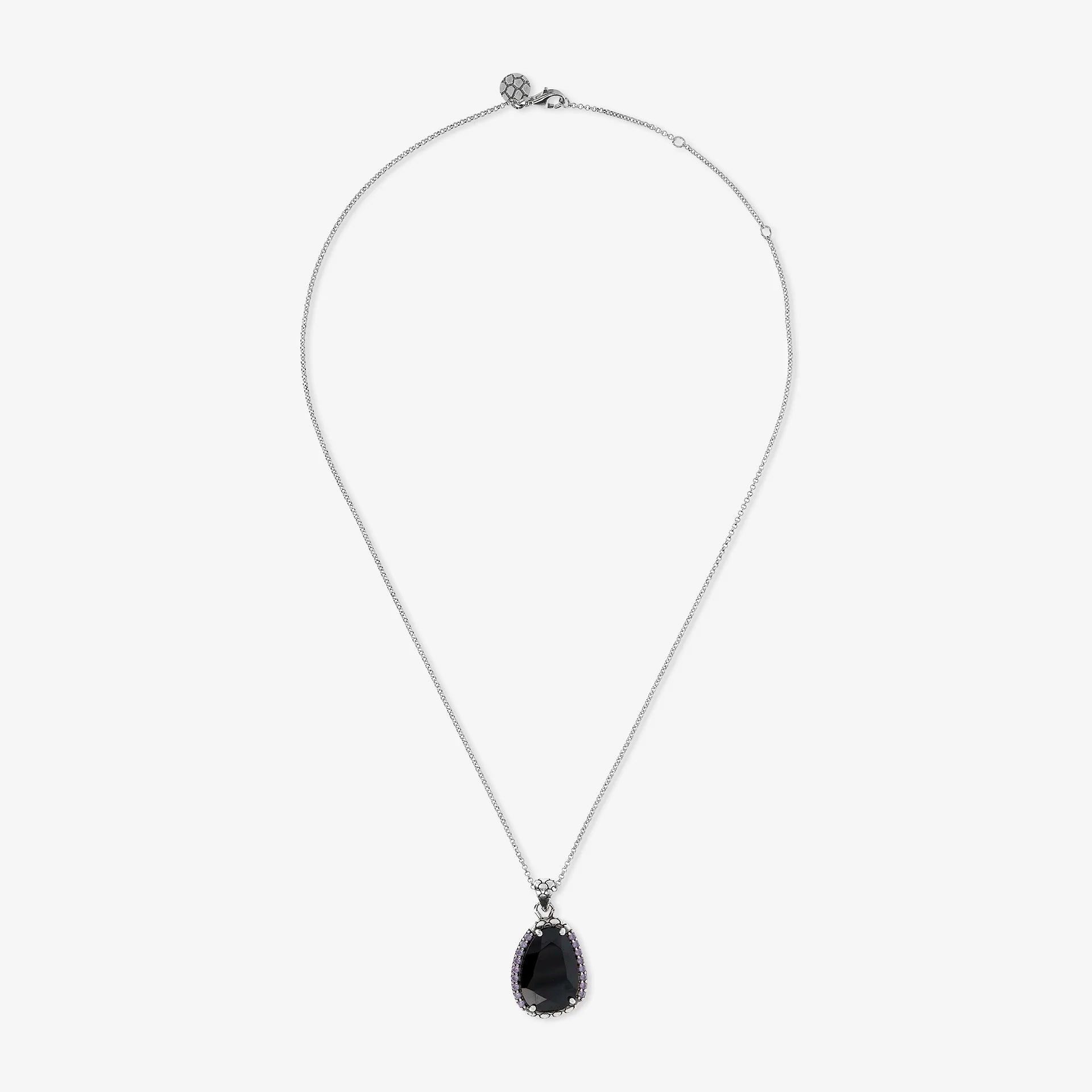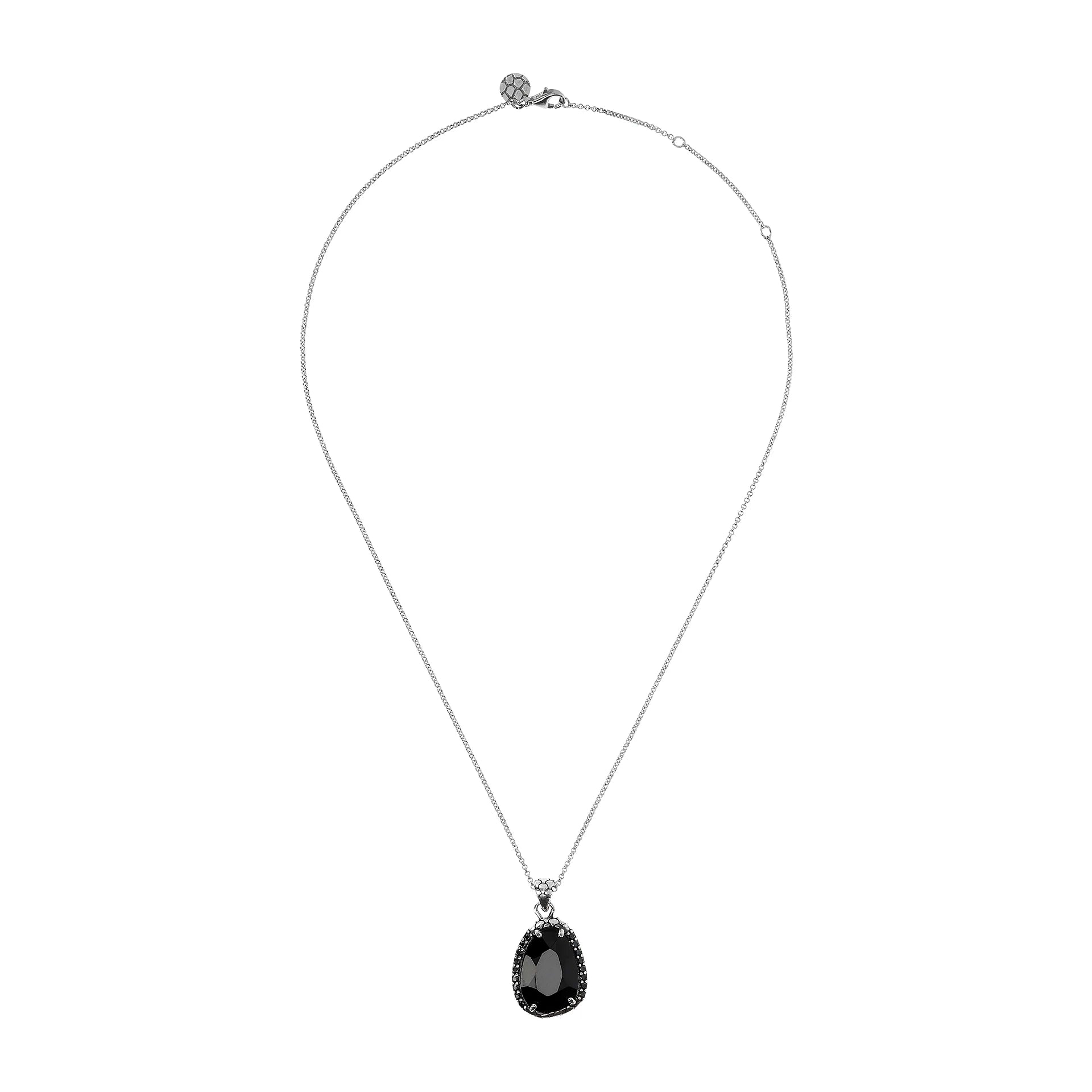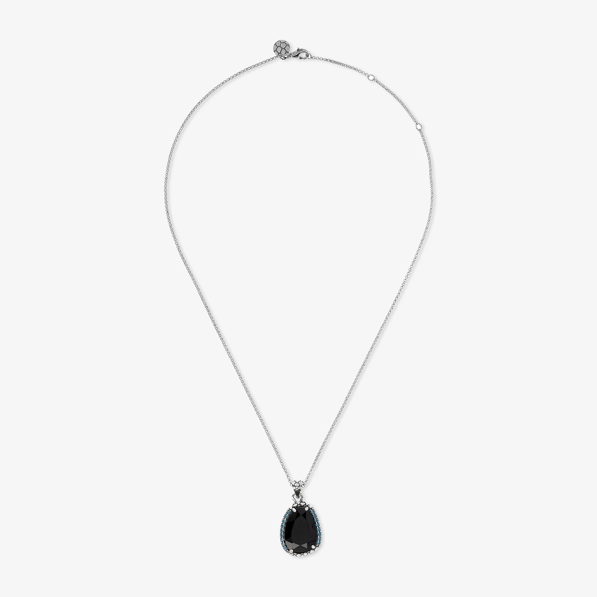Collier avec pendentif avec Black Spinel, pavé et finition en argent 925 agrémenté d'un travail INK. Un processus qui donne cet effet de clair-obscur à la surface du bijou et définit la texture Sirena pour un maximum de séduction et de féminité.