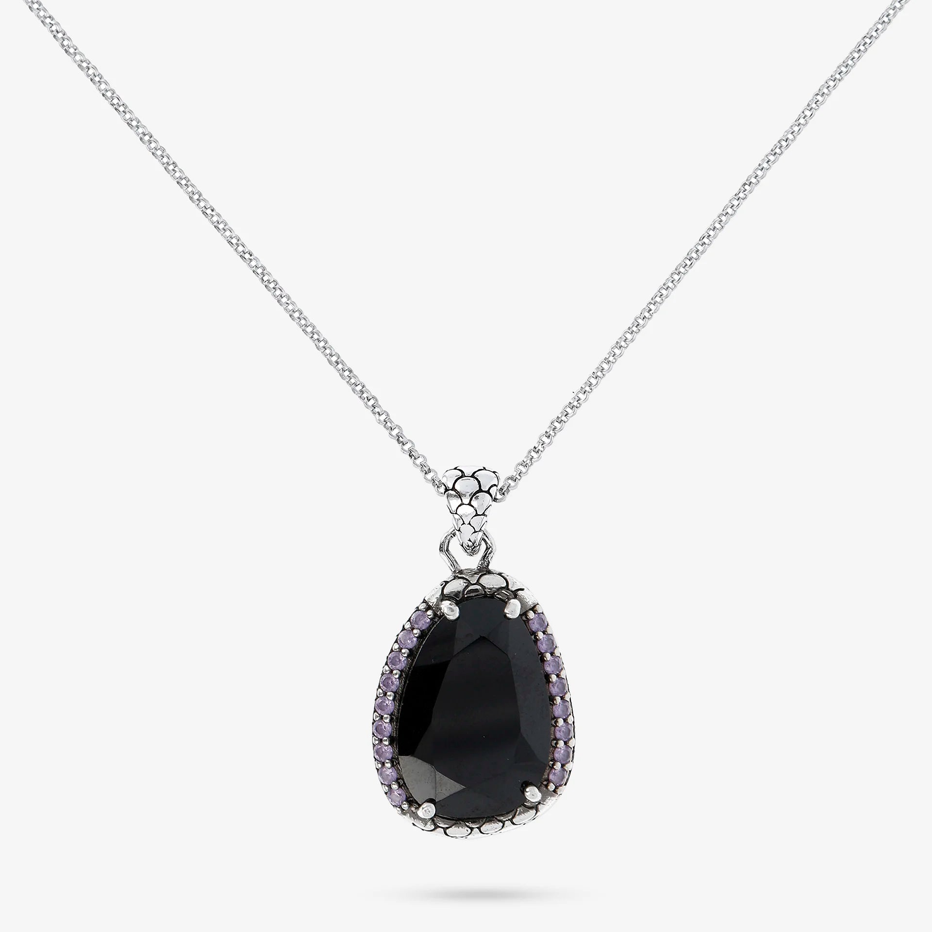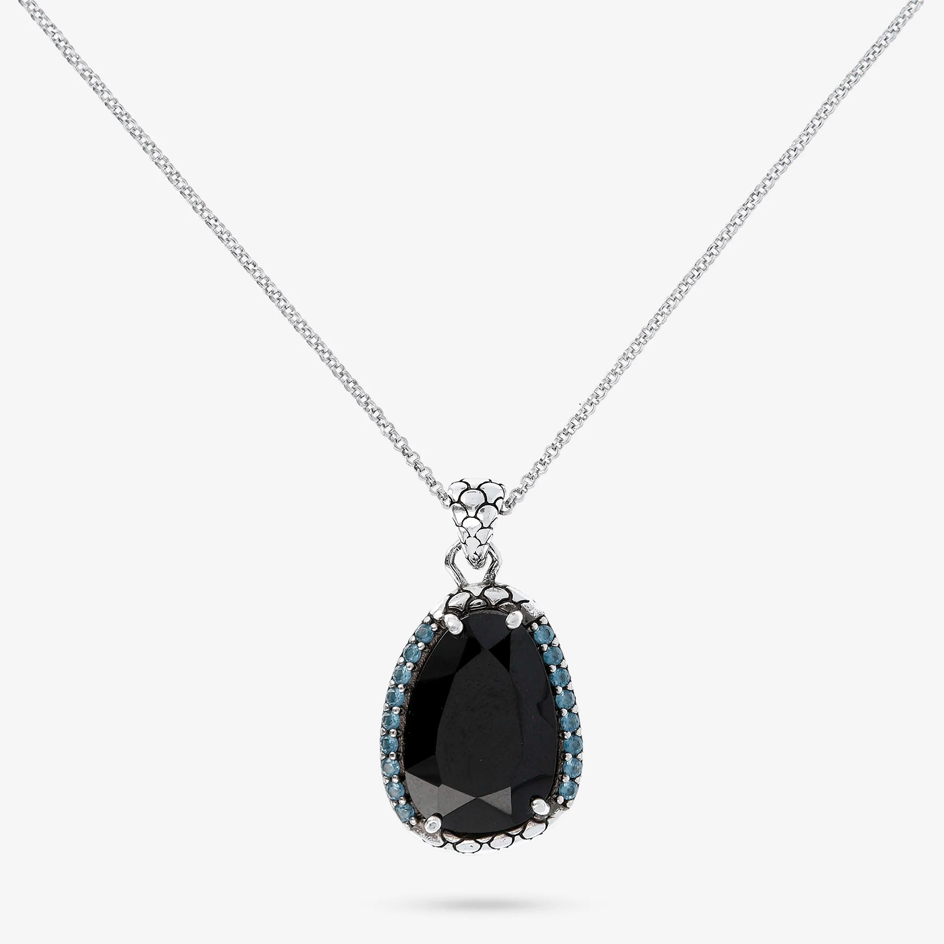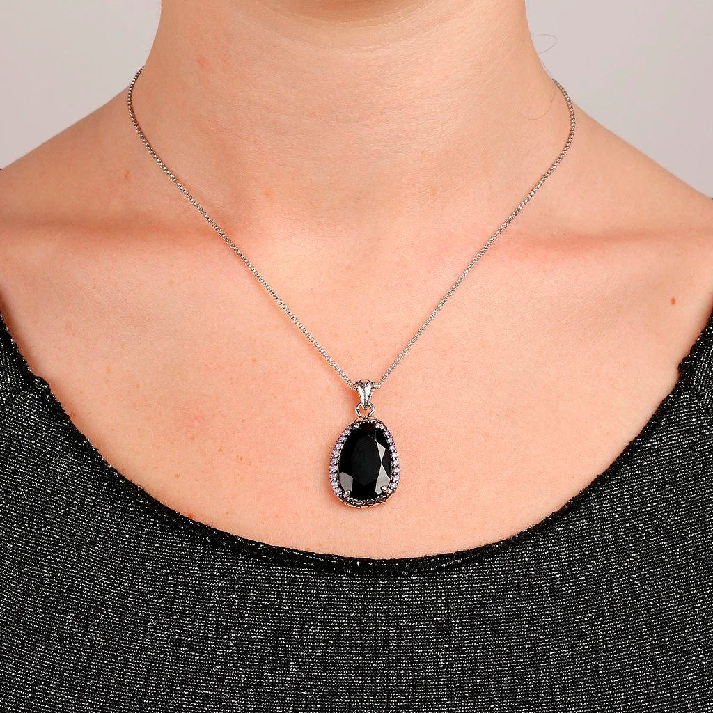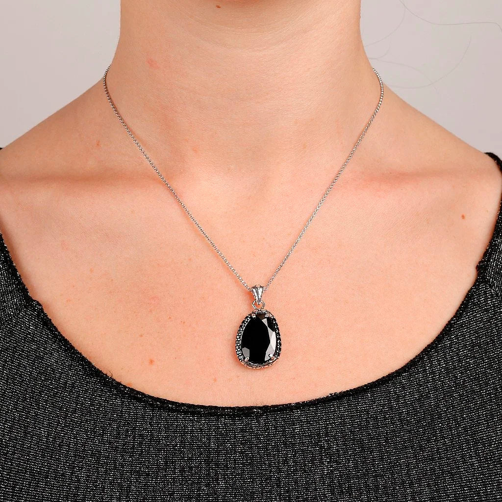 Collier avec pendentif avec Black Spinel, pavé et finition en argent 925 agrémenté d'un travail INK. Un processus qui donne cet effet de clair-obscur à la surface du bijou et définit la texture Sirena pour un maximum de séduction et de féminité.