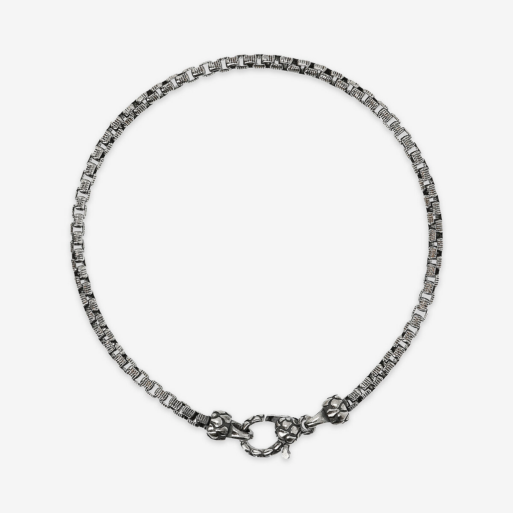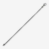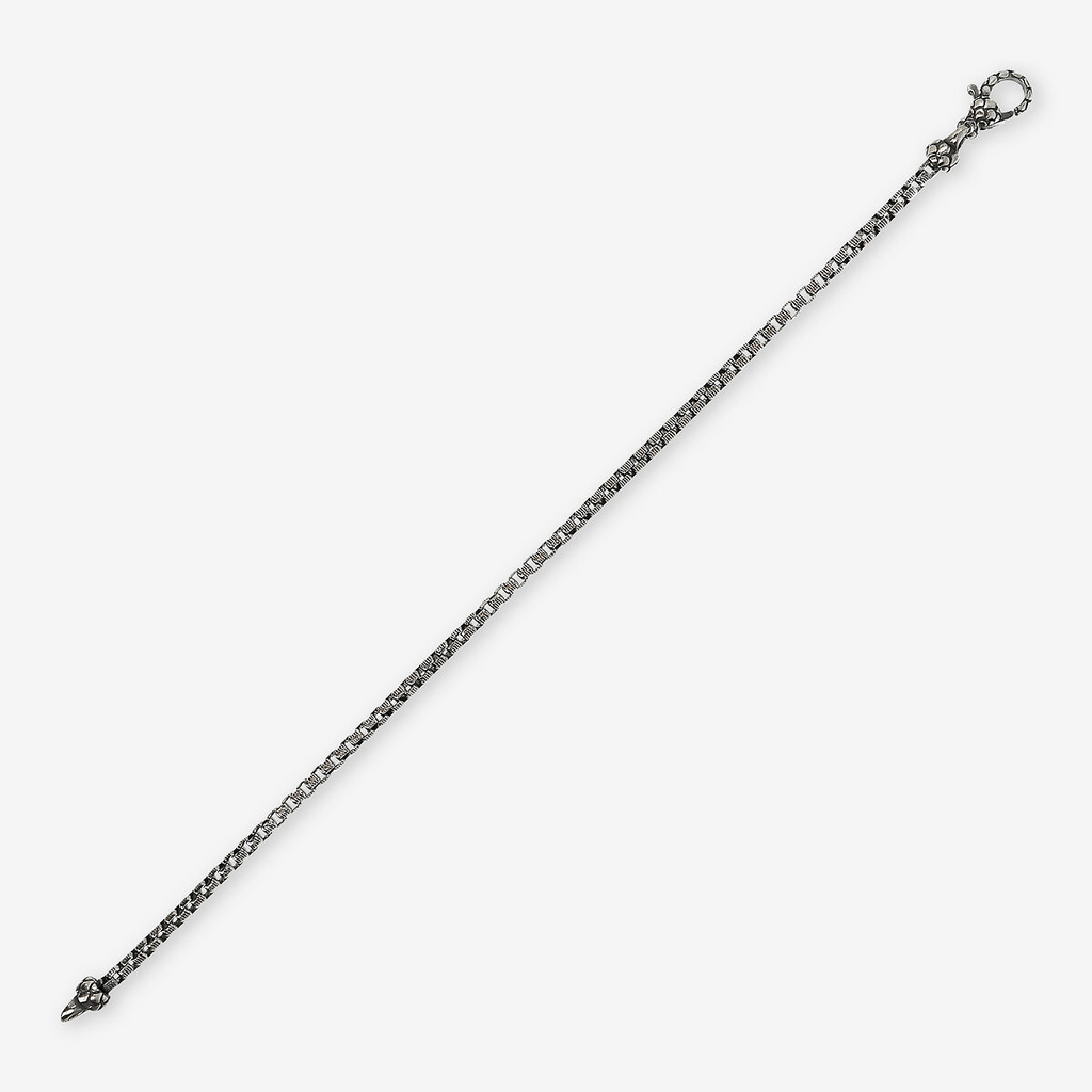 Bracelet homme Albert M. réalisé sur une base en argent 925 avec fine chaîne vénitienne; fermeture à mousqueton avec texture serpent. Disponible en trois tailles : petit (18 cm), moyen (19 cm) et grand (20 cm).Création originale qui se porte facilement avec n'importe quelle tenue.