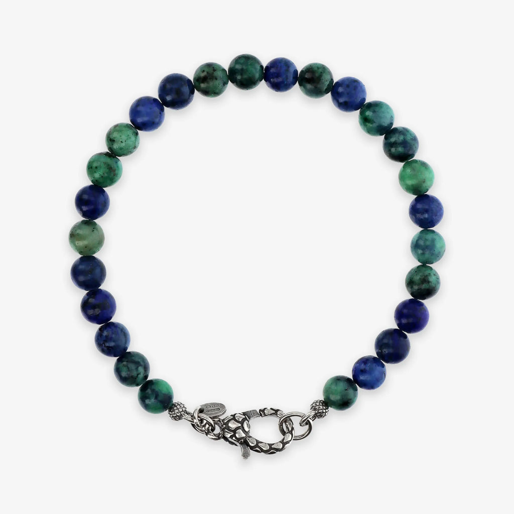 Bracelet pour homme Albert M. en argent 925 avec sphères (6 mm) en pierre naturelle multicolore ; Fermoir mousqueton avec texture sirène et rallonge.