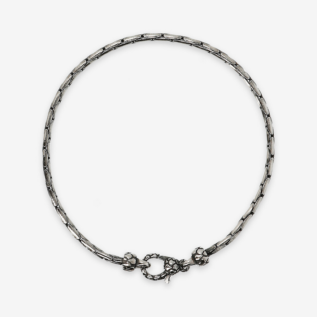 Bracelet homme Albert M. réalisé sur une base en argent 925 avec une fine chaîne à la texture serpent; fermoir mousqueton avec texture sirène. Disponible en deux tailles : petit (19cm) et grand (21cm). Création originale qui se porte facilement avec n'importe quelle tenue.