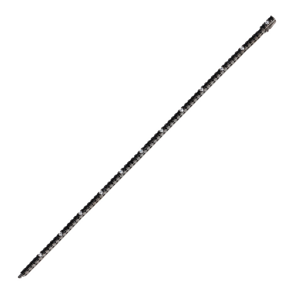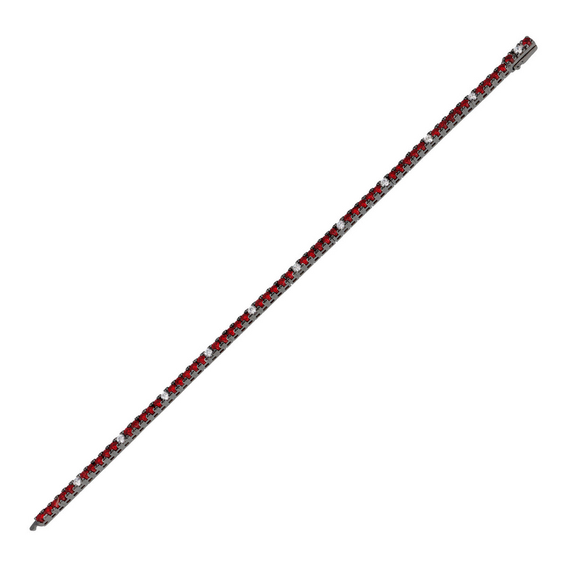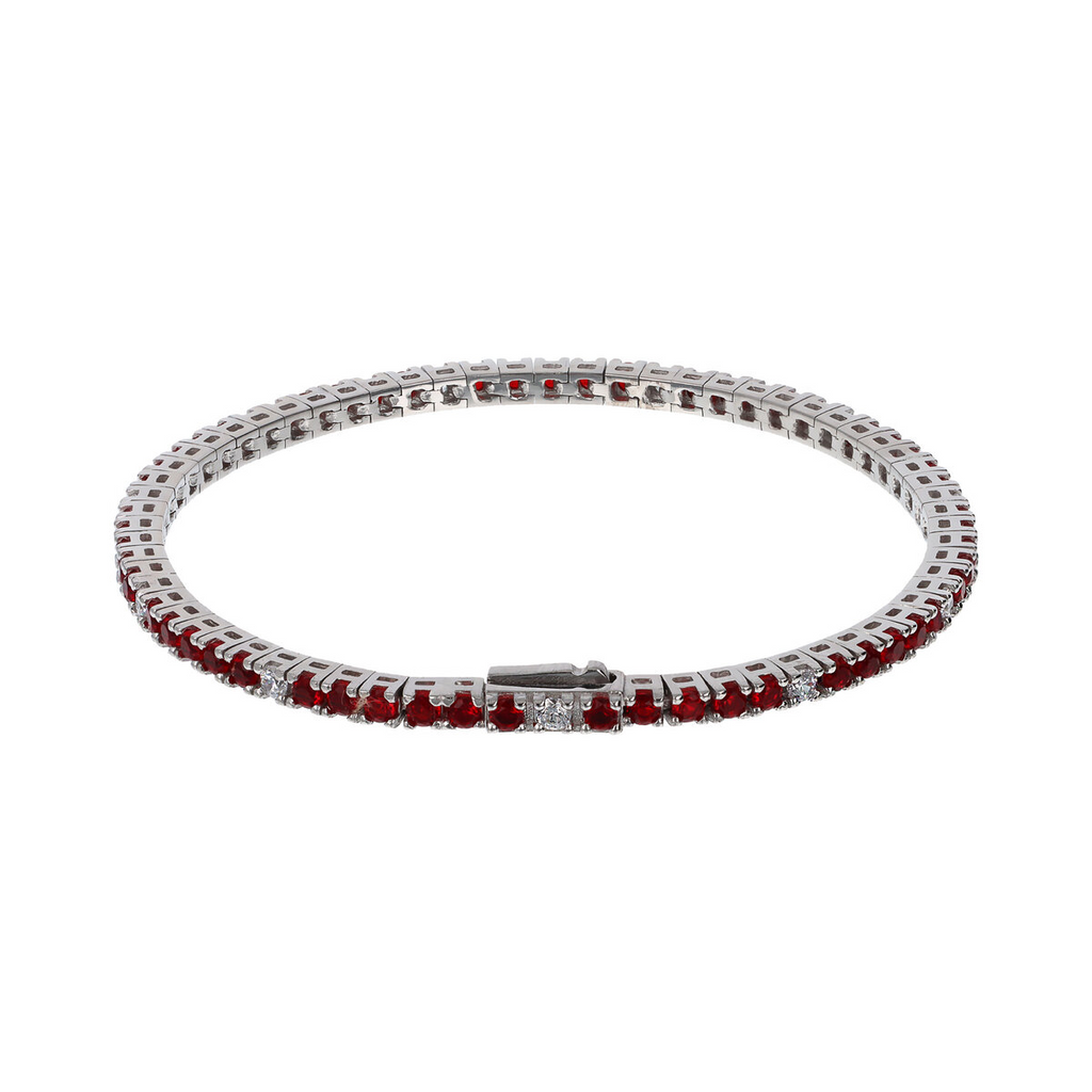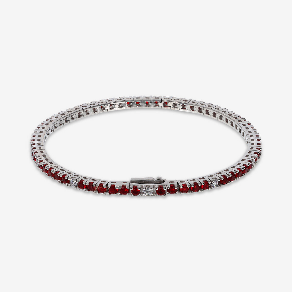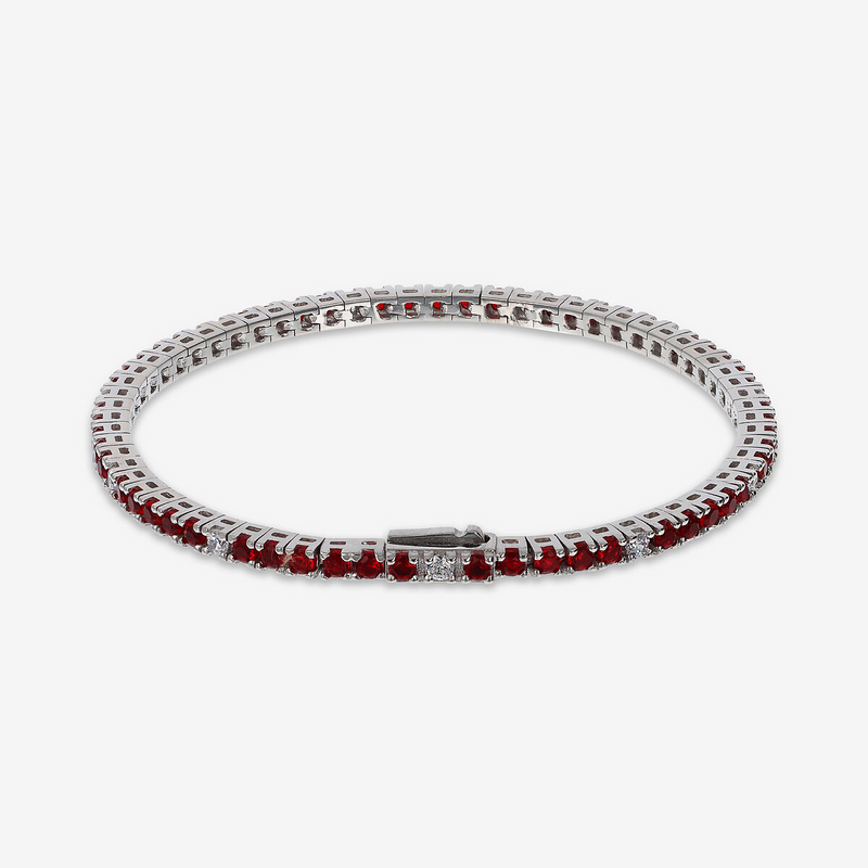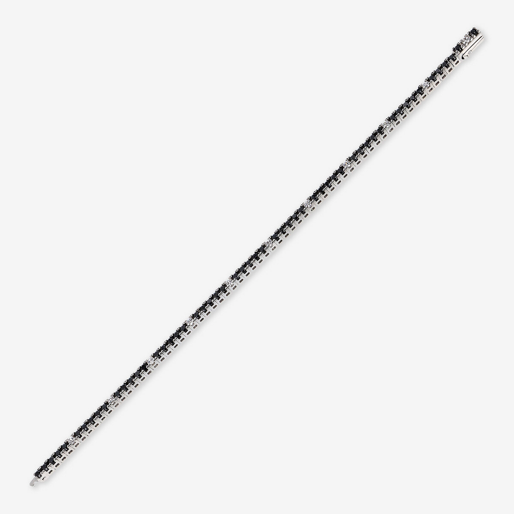 Bracelet tennis pour homme bicolore Albert M. réalisé sur une base en argent 925 agrémentée de zircons cubiques de forme ronde. La particularité de ce bracelet est que même le fermoir boîte est recouvert de zircone cubique, une qualité lumineuse. Disponible en deux tailles : petite (19 cm) et grande (21 cm) et avec placage Ruthénium ou Rhodium.
