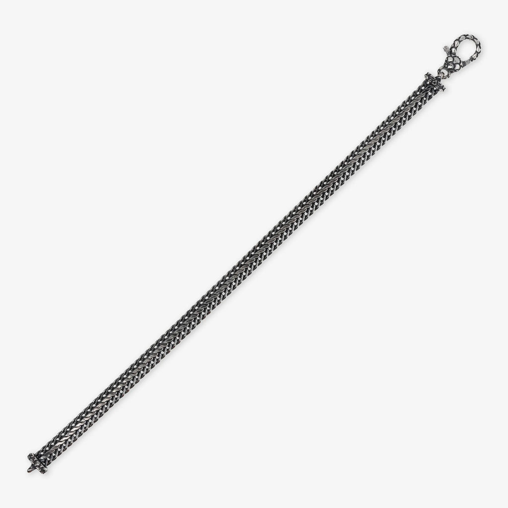 Bracelet pour homme Albert M. en argent 925 avec maillon plat à chevrons. Longueur 19,5 cm. Fermoir mousqueton à texture sirène.
