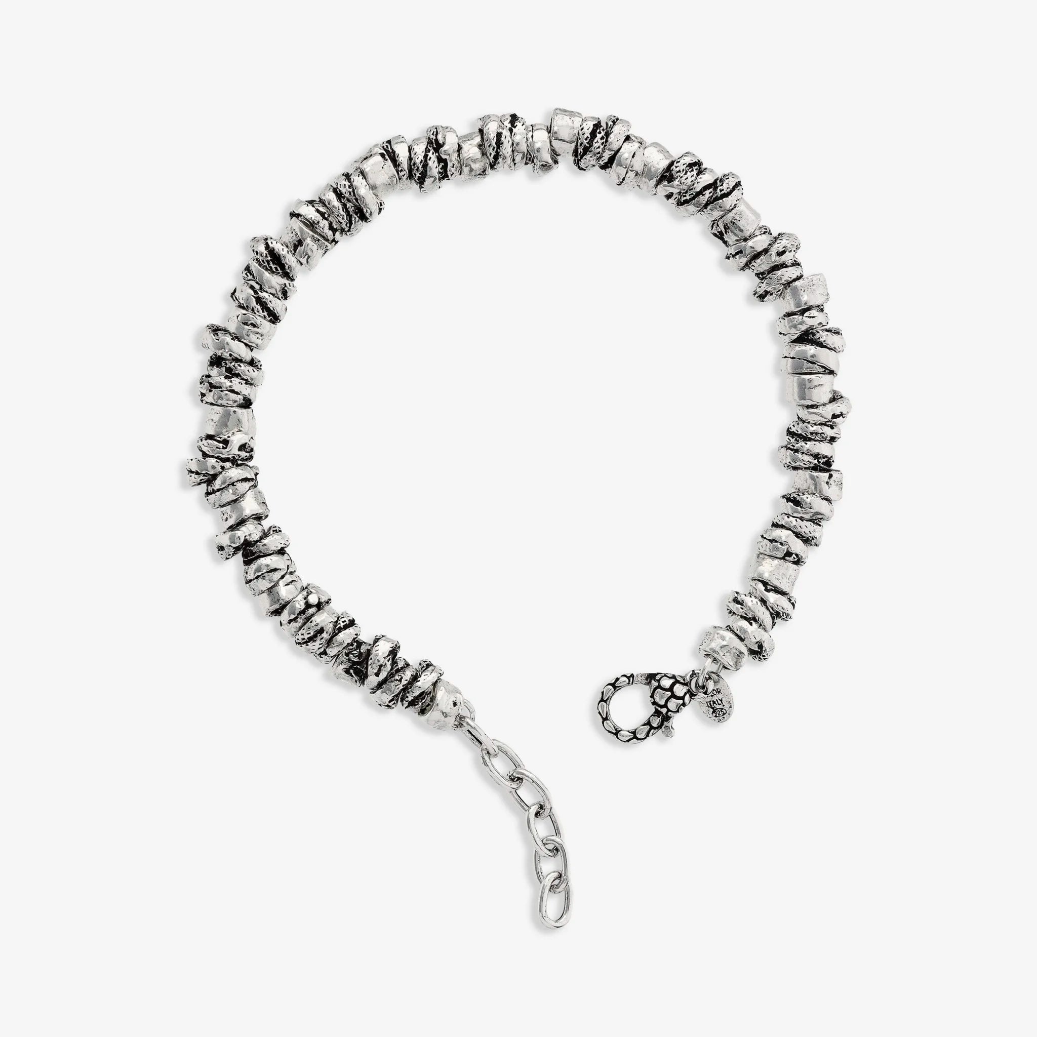 Bracelet en argent 925 avec rondelles travaillées. Fermeture mousqueton avec extension.