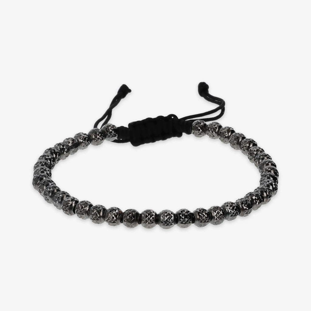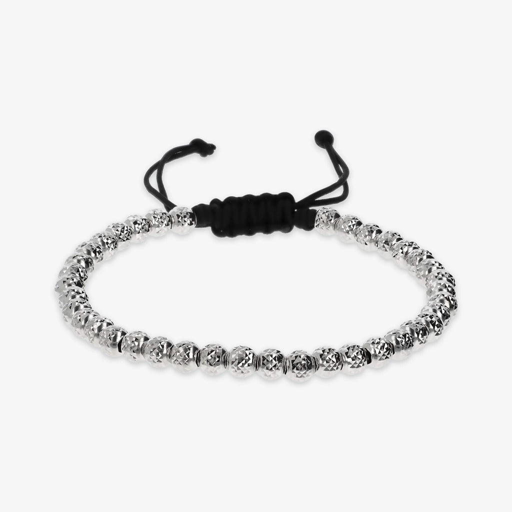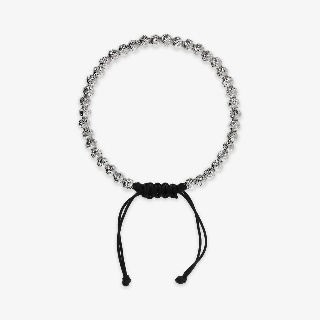 Bracelet homme Albert M. avec perle martelée (4,5 mm) en Argent 925 Fermeture coulissante réglable avec cordon en coton. Disponible avec placage rhodium et ruthénium.