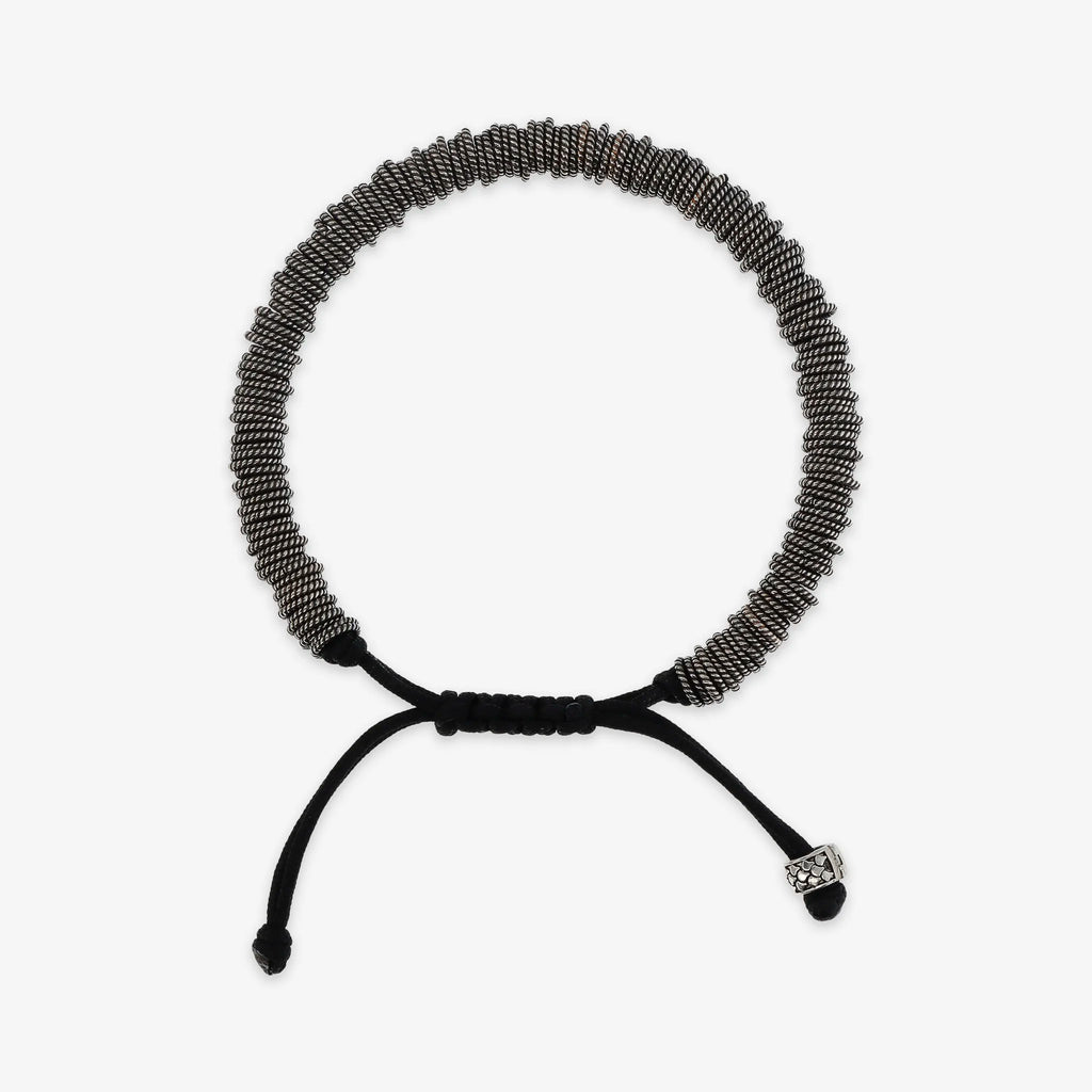 Bracelet pour homme Albert M. avec rondelles texturées en Argent 925 Fermeture coulissante réglable avec cordon en coton.