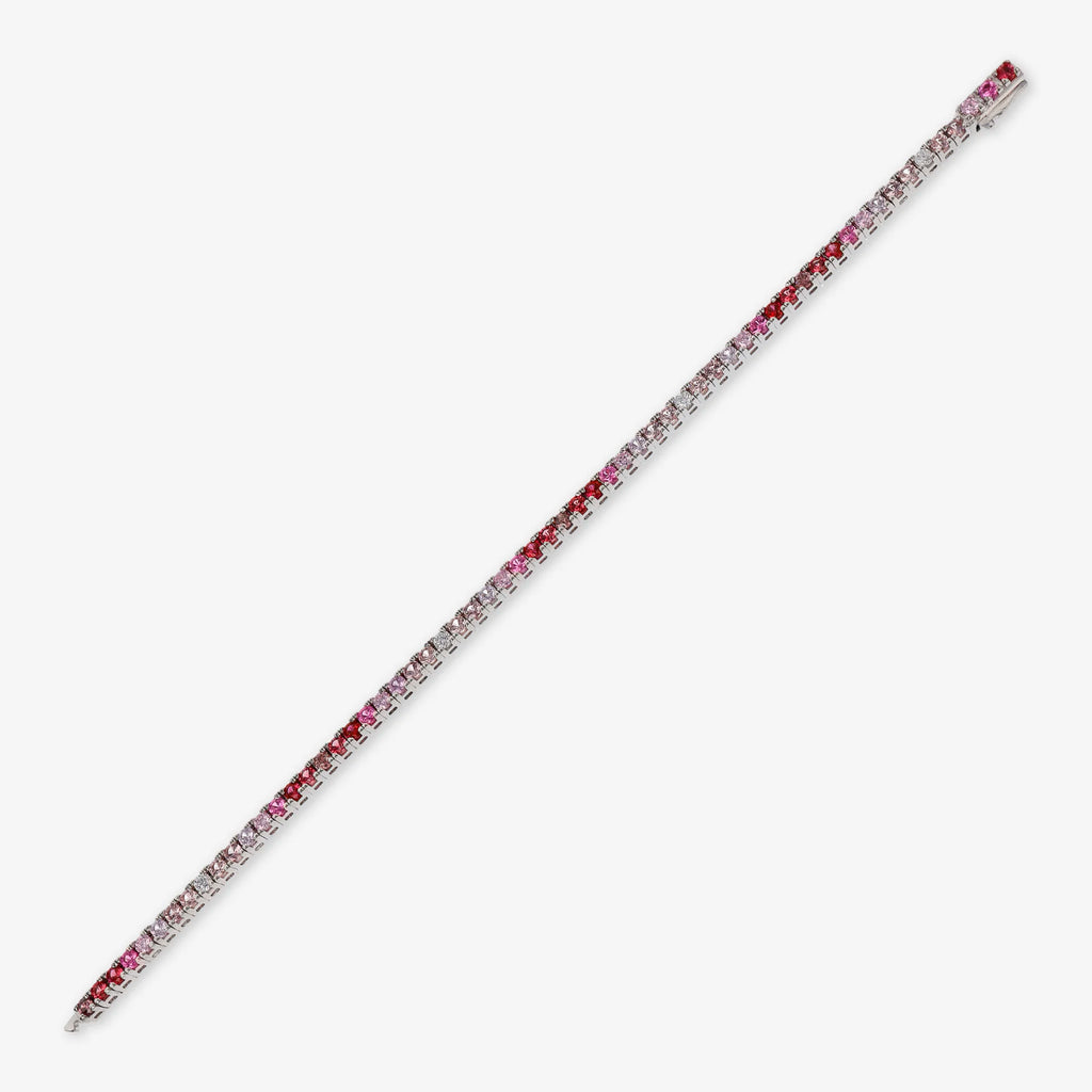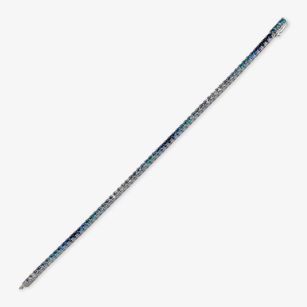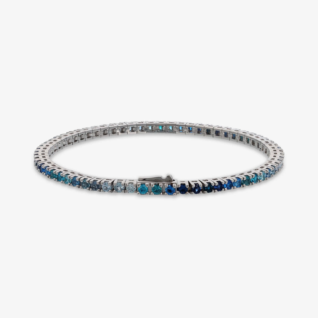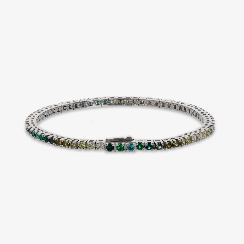Bracelet tennis pour homme Albert M. en argent 925 orné de zircons cubiques aux couleurs nuancées. Disponible en deux tailles : courte (17,8 cm) et longue (19 cm). Fermoir dissimulé avec zircone cubique.