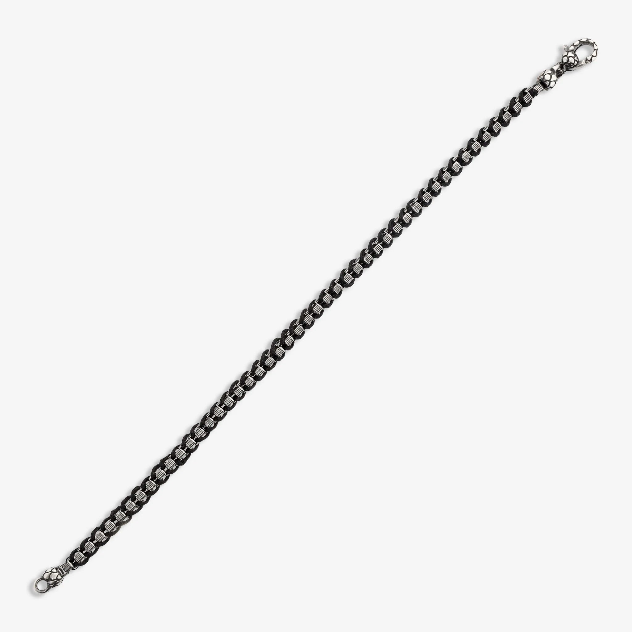 Bracciale in Argento 925 con Catena Veneziana Striata e Cordino Nero