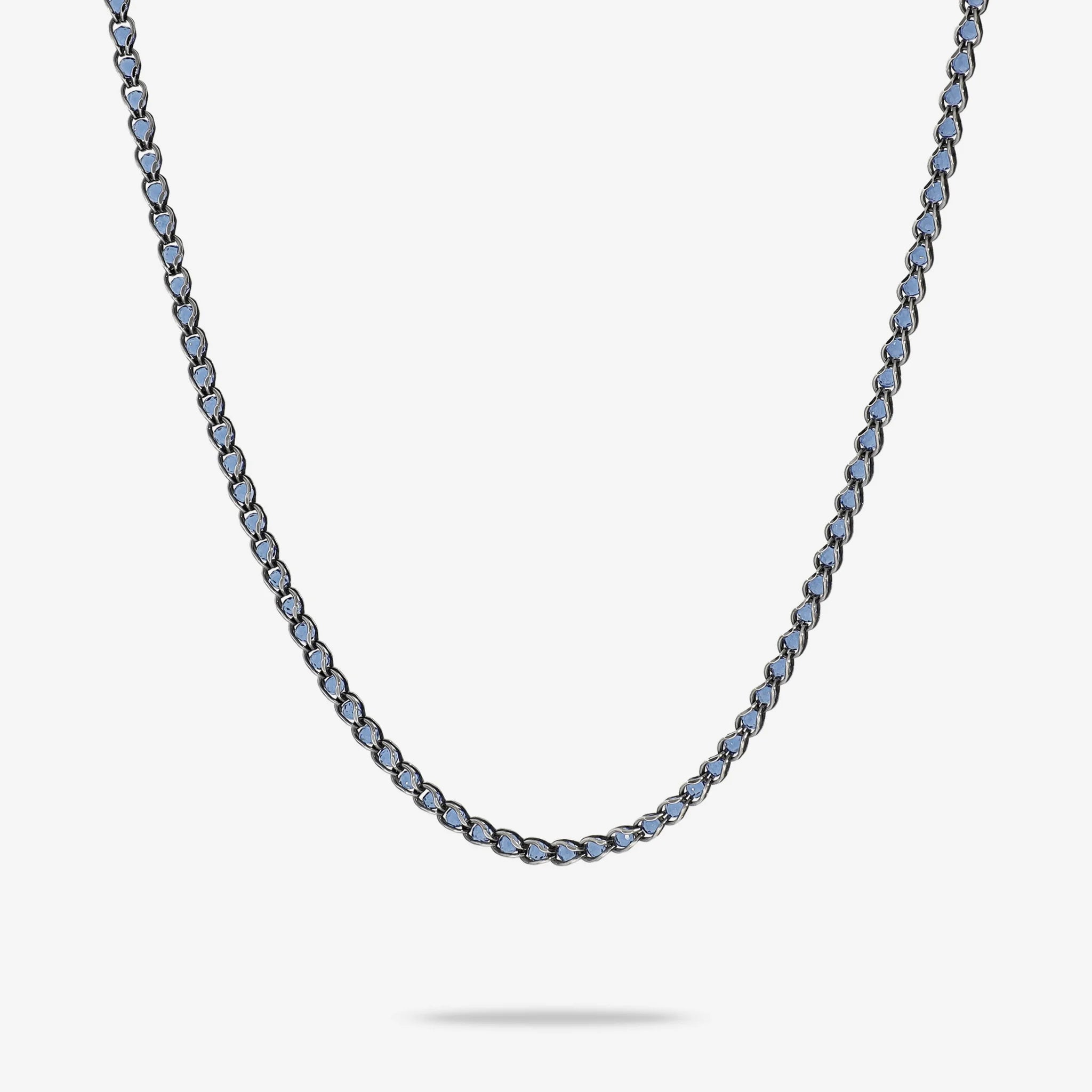 Collana girocollo Albert M. realizzata in Argento 925, placcato Rutenio, con catena a squame impreziosita da punti luce in pietra. Chiusura a moschettone.