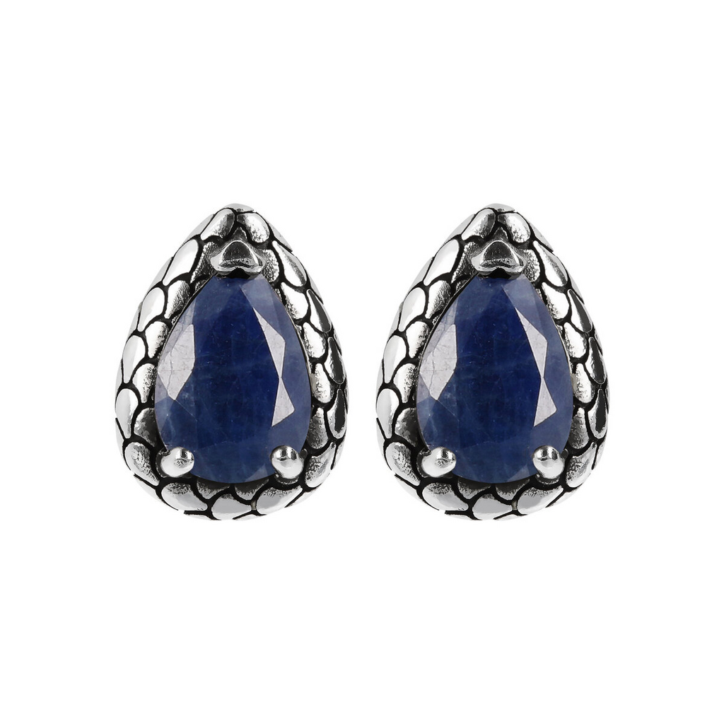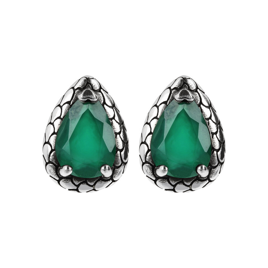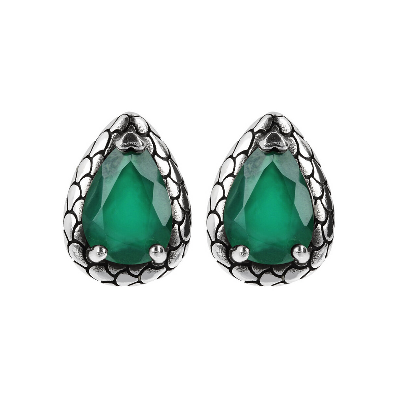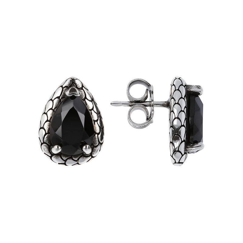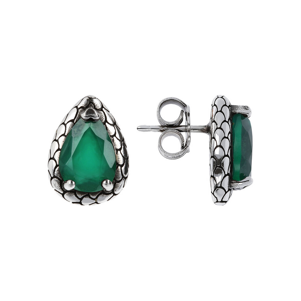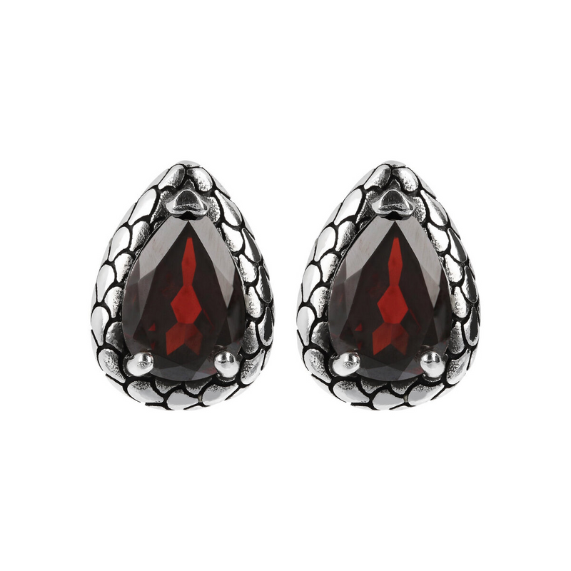 Orecchini a lobo Albert M. realizzati su base di argento 925 a forma di goccia con texture sirena e pietre naturali sfaccettata (spinello, granato, onice, rubino o zaffiro); chiusura a perno e farfalla; lunghezza di 1.3 cm. La particolare texture dona una nota sensuale e misteriosa a questa creazione.
