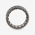 Anello a fascia uomo Albert M. realizzato in argento 925, impreziosito da una doppia riviera in pietra naturale, spinello nero, con bordi dalla texture riccio di mare, caratterizzata da una ricca lavorazione 'a puntini' con piccole sfere in argento che ricoprono la superficie. Al suo interno l'anello presenta una texture sirena.