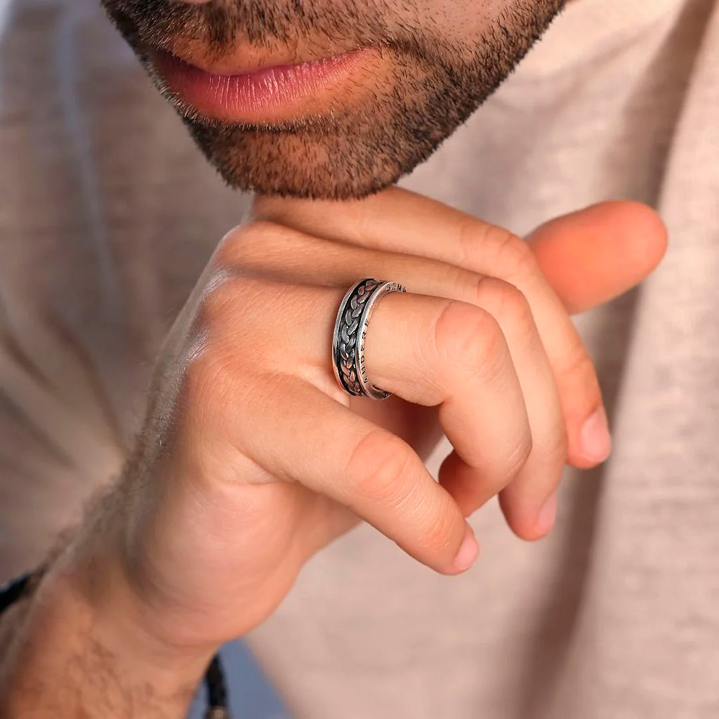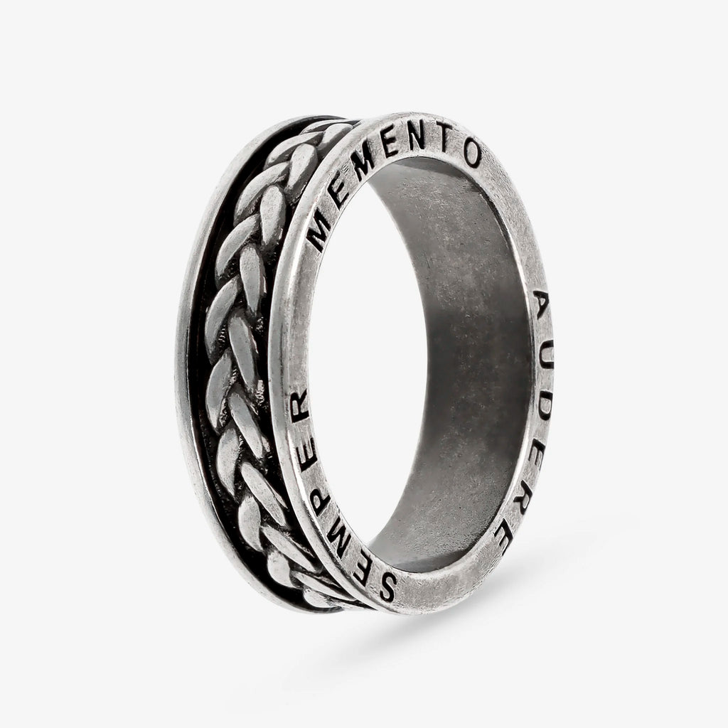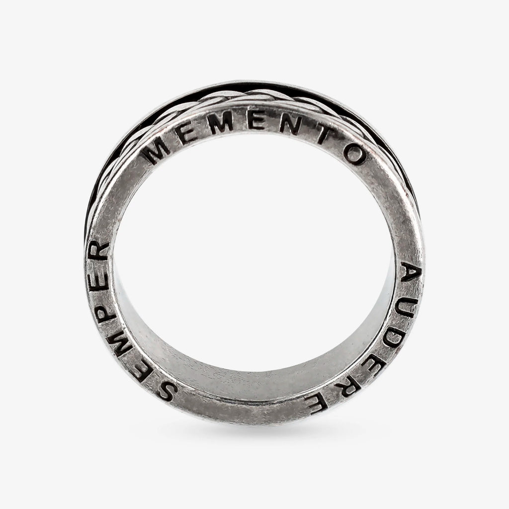 Anello a fascia unisex Albert M. realizzato in Argento 925 dalla texture corda con scritta 'Memento Audere Semper'.
