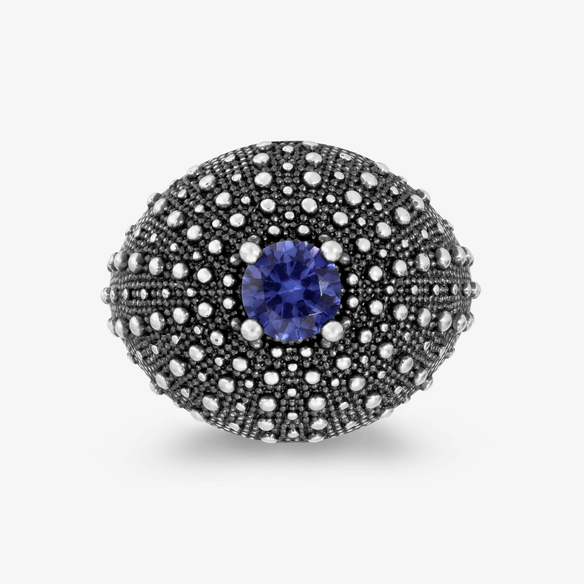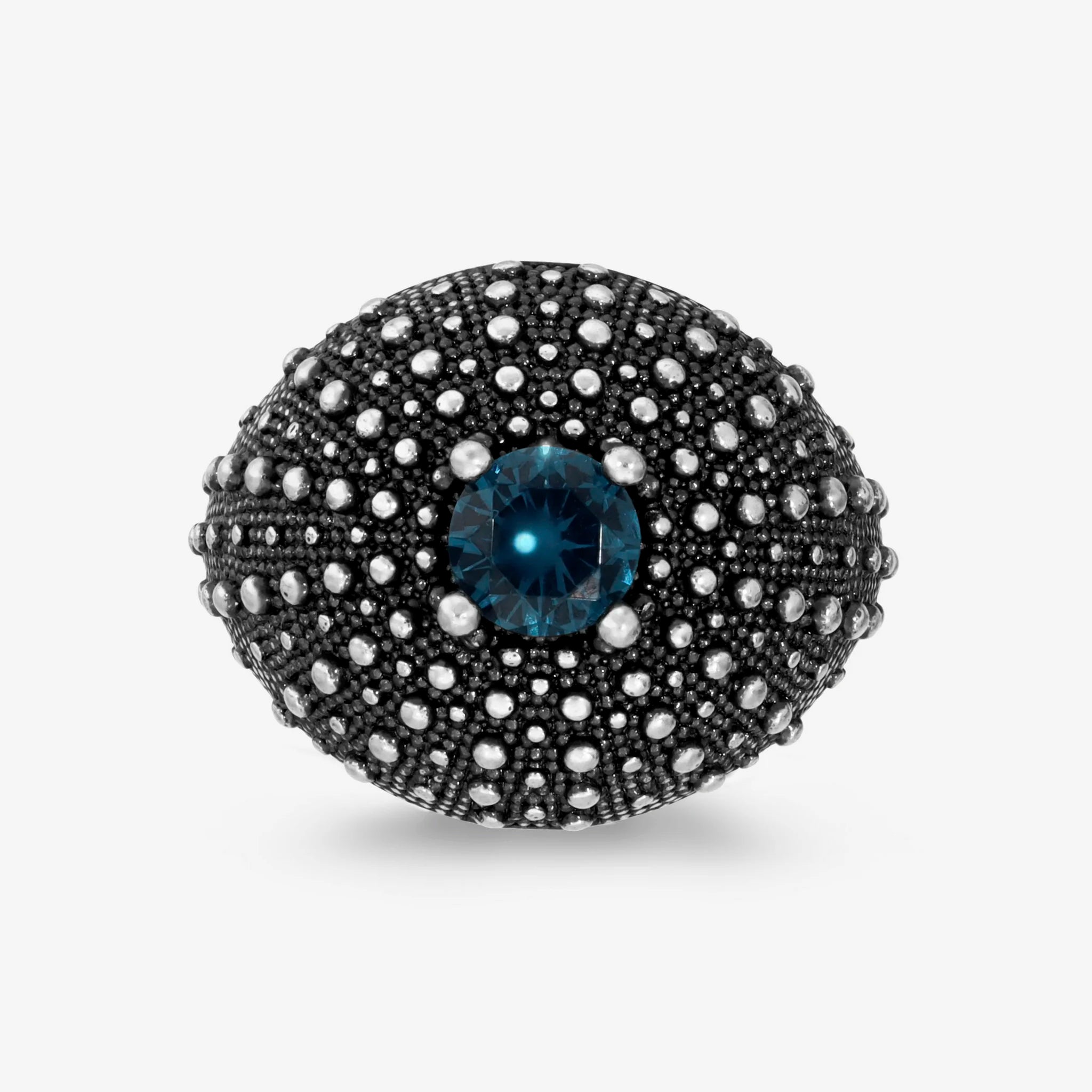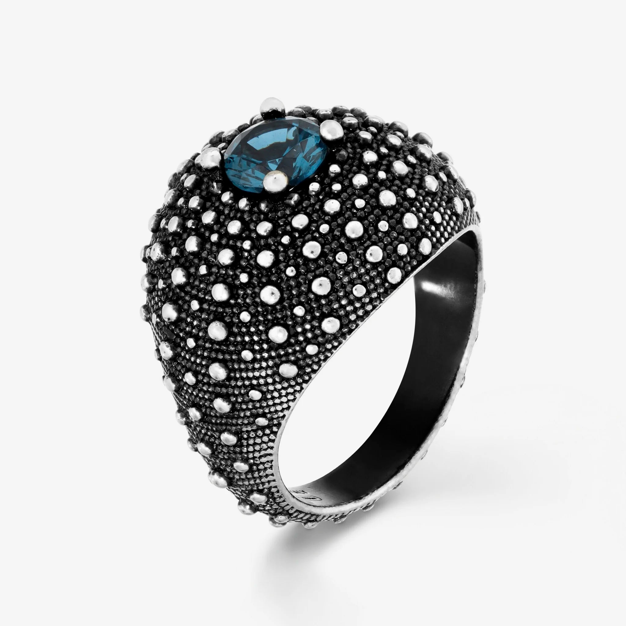 Anello a Fascia Graduato Texture Riccio di Mare in Argento 925 placcato Rutenio con Pietre Naturali