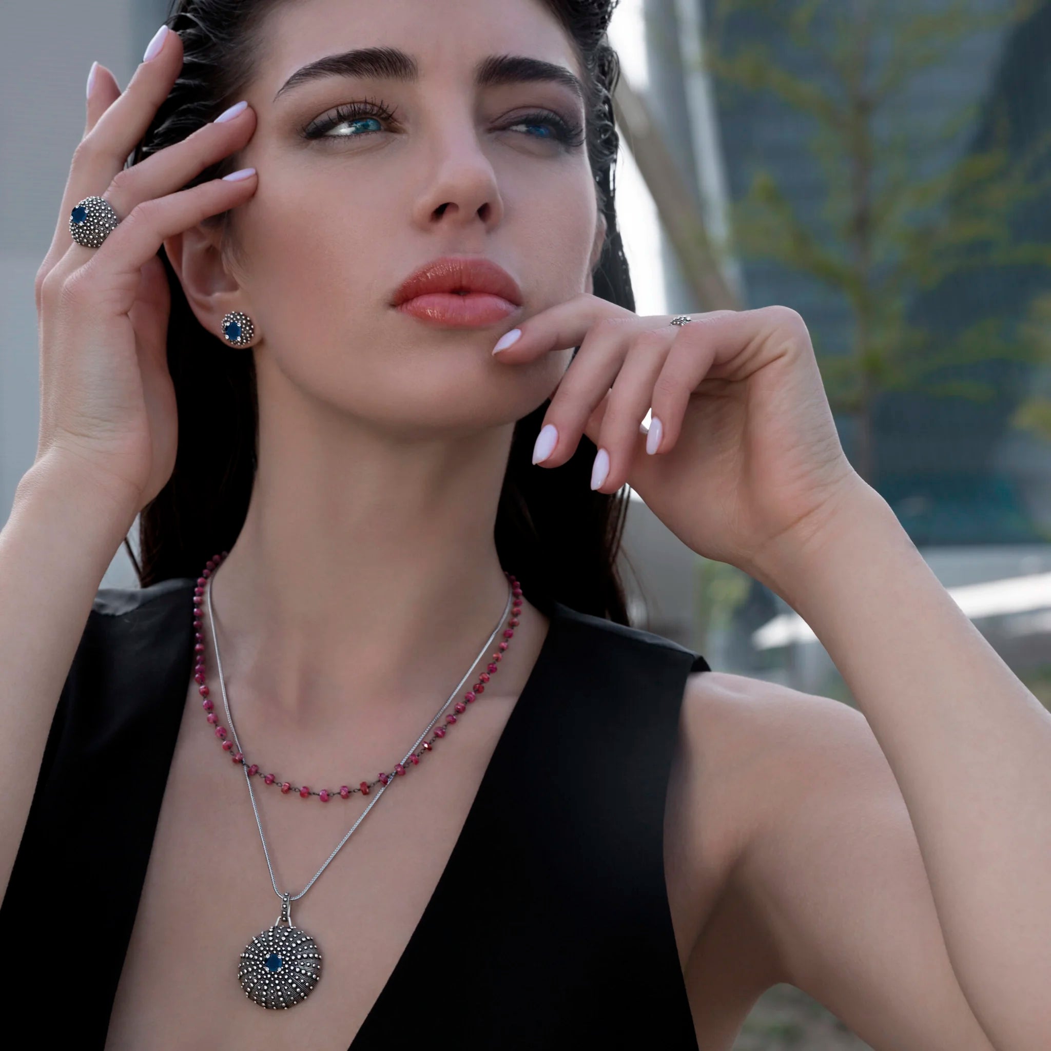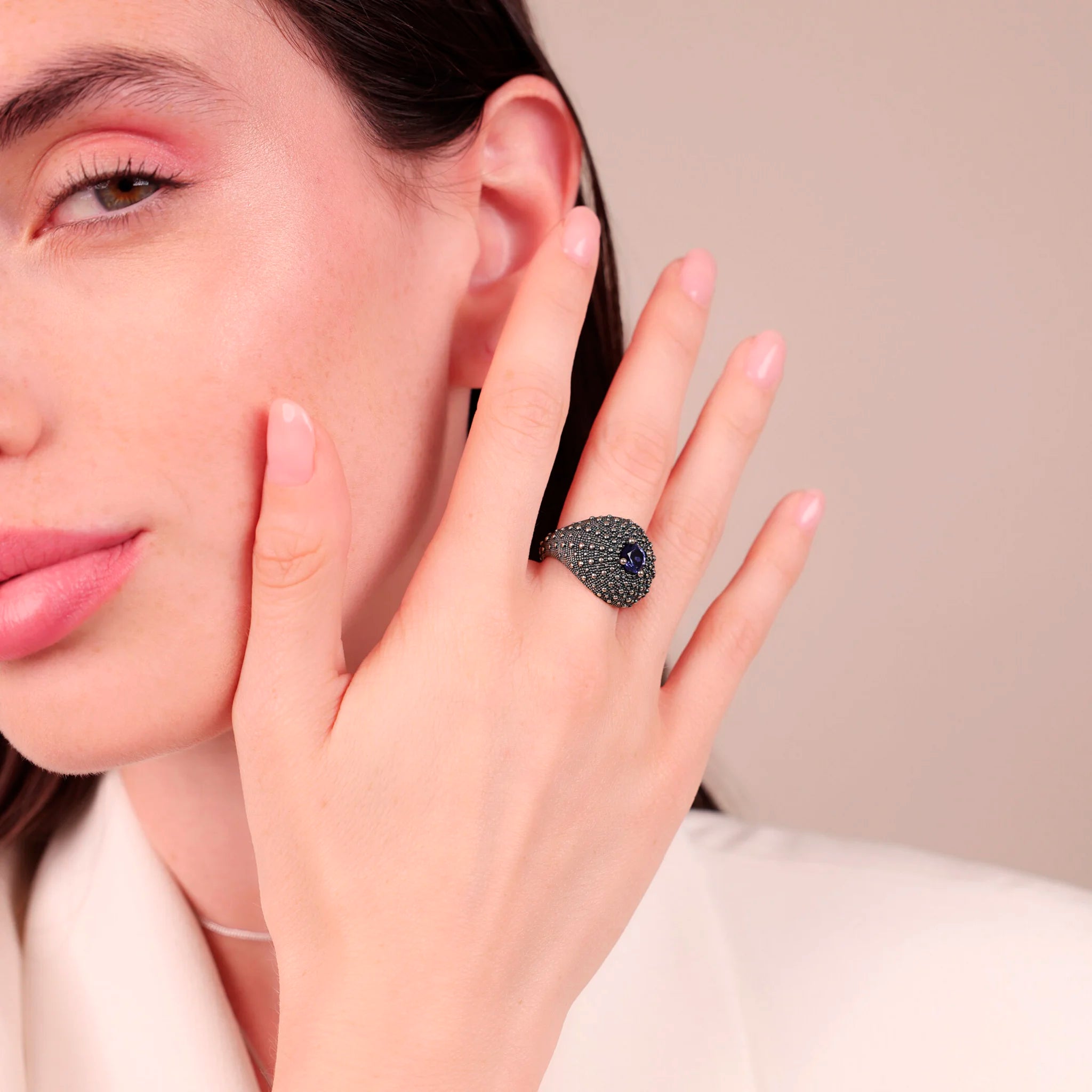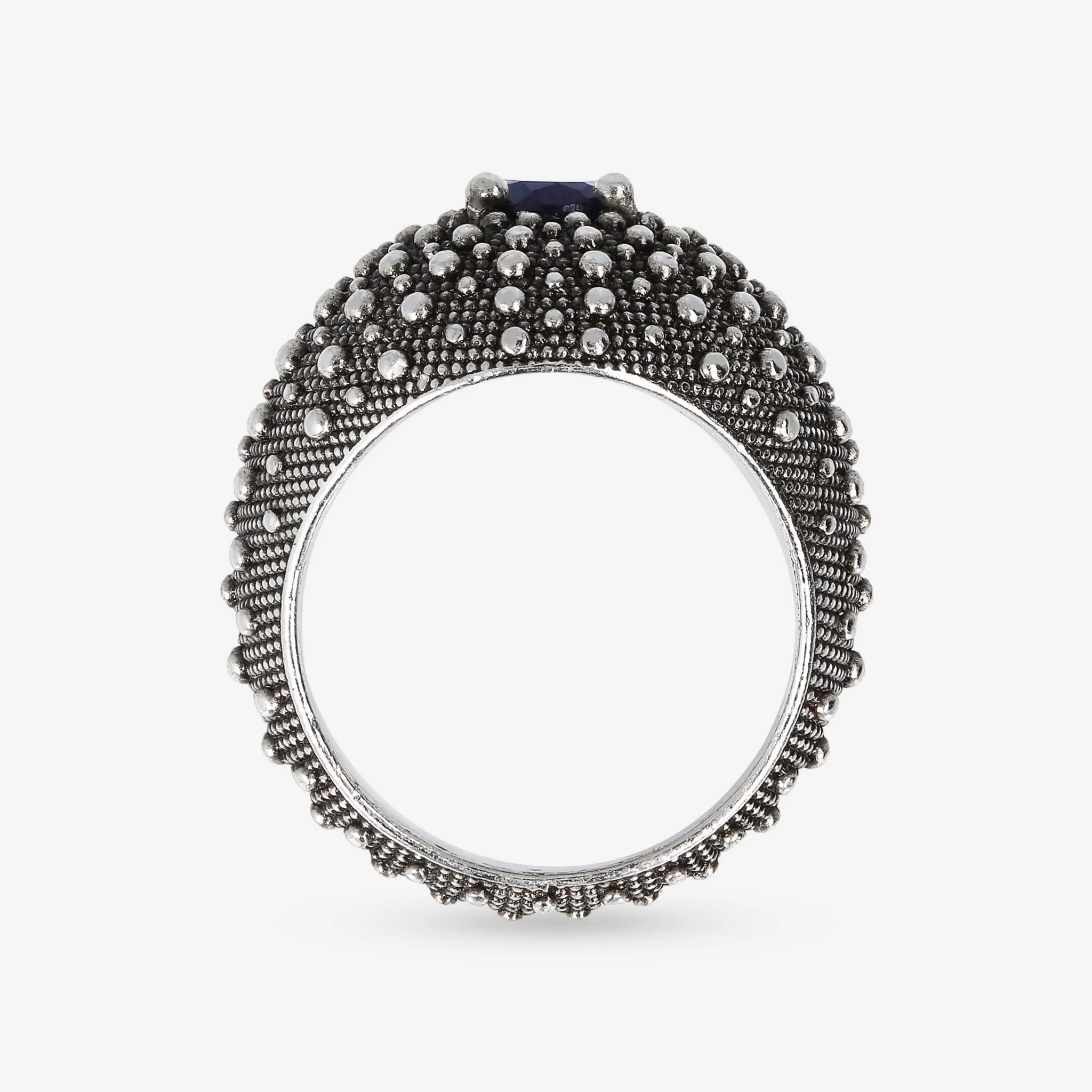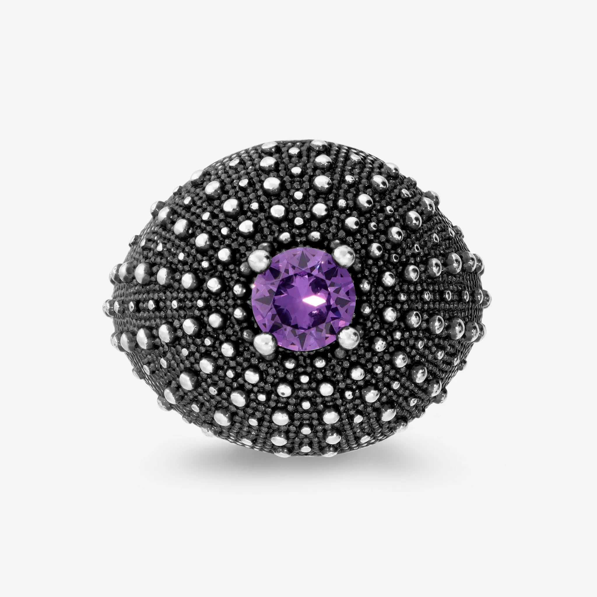 Anello a Fascia Graduato Texture Riccio di Mare in Argento 925 placcato Rutenio con Pietre Naturali