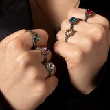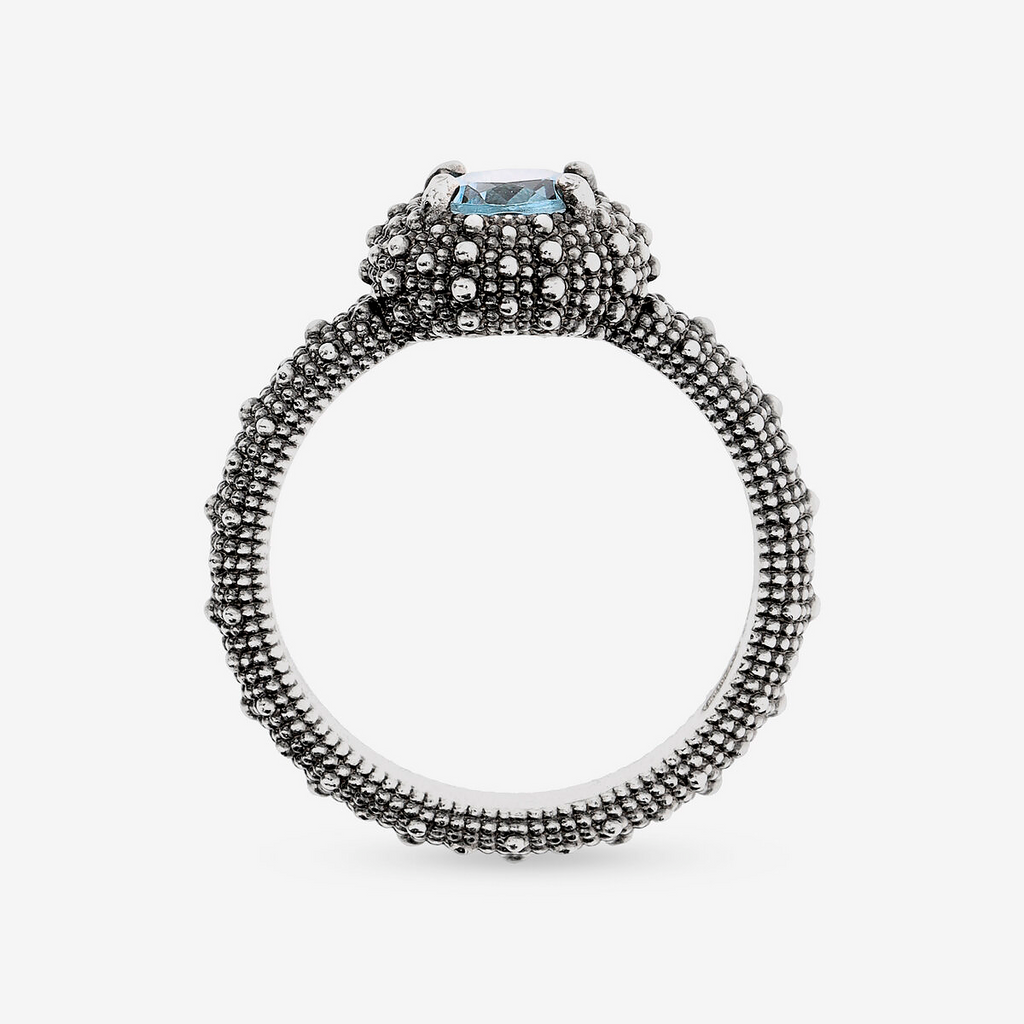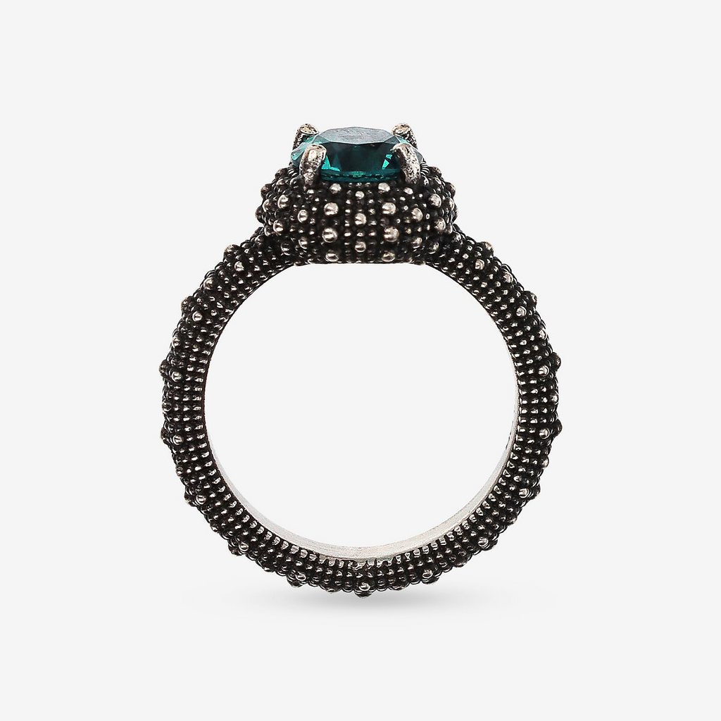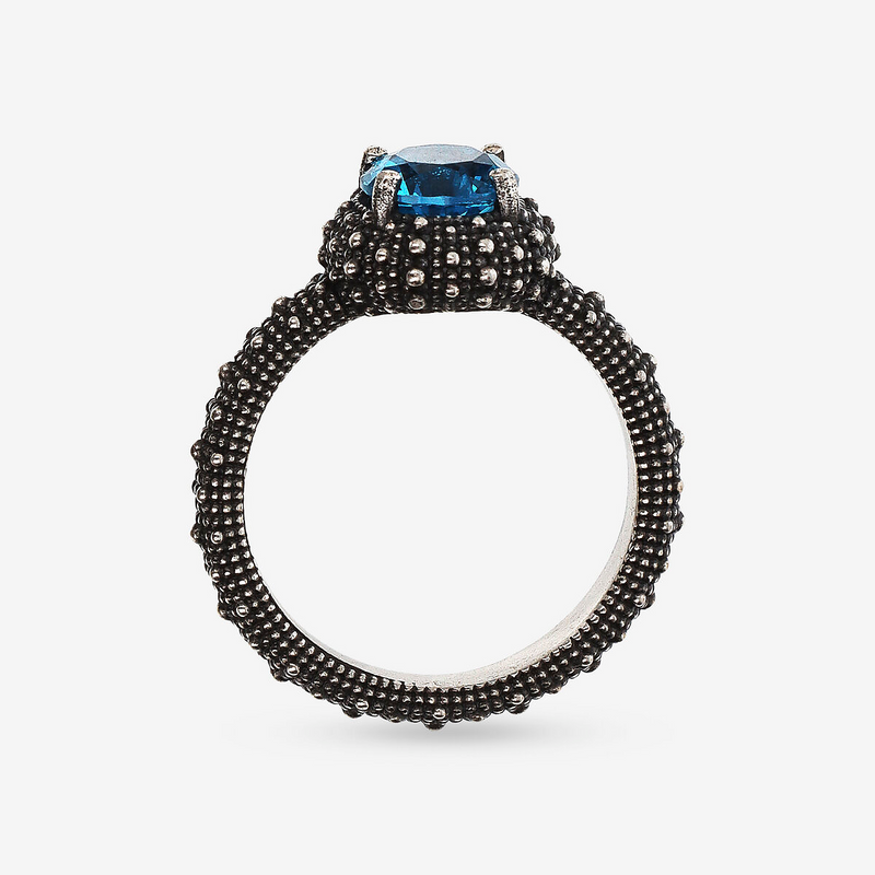 Anello Cocktail Texture Riccio di Mare in Argento 925 placcato Rutenio con Pietra