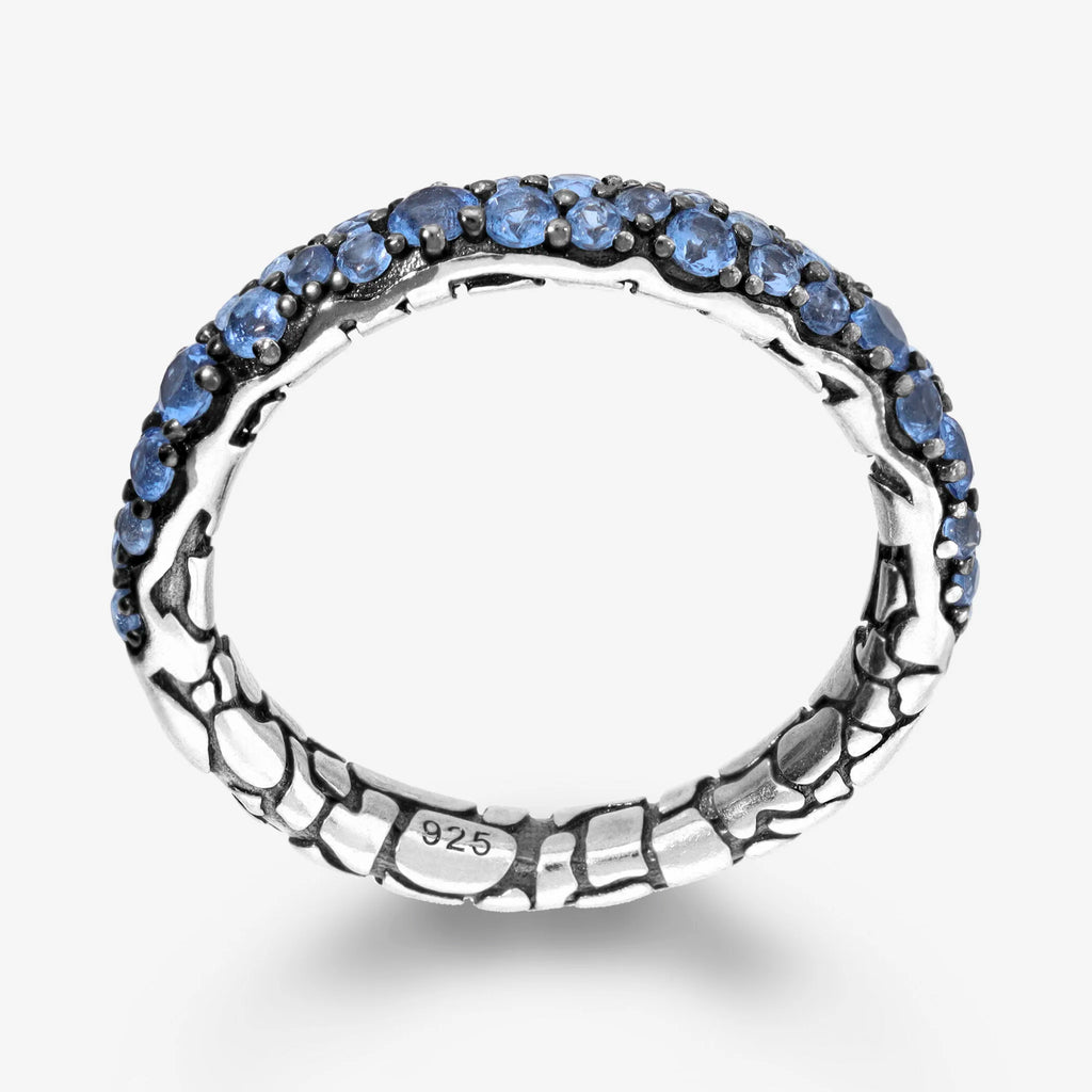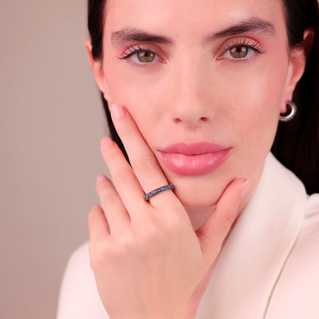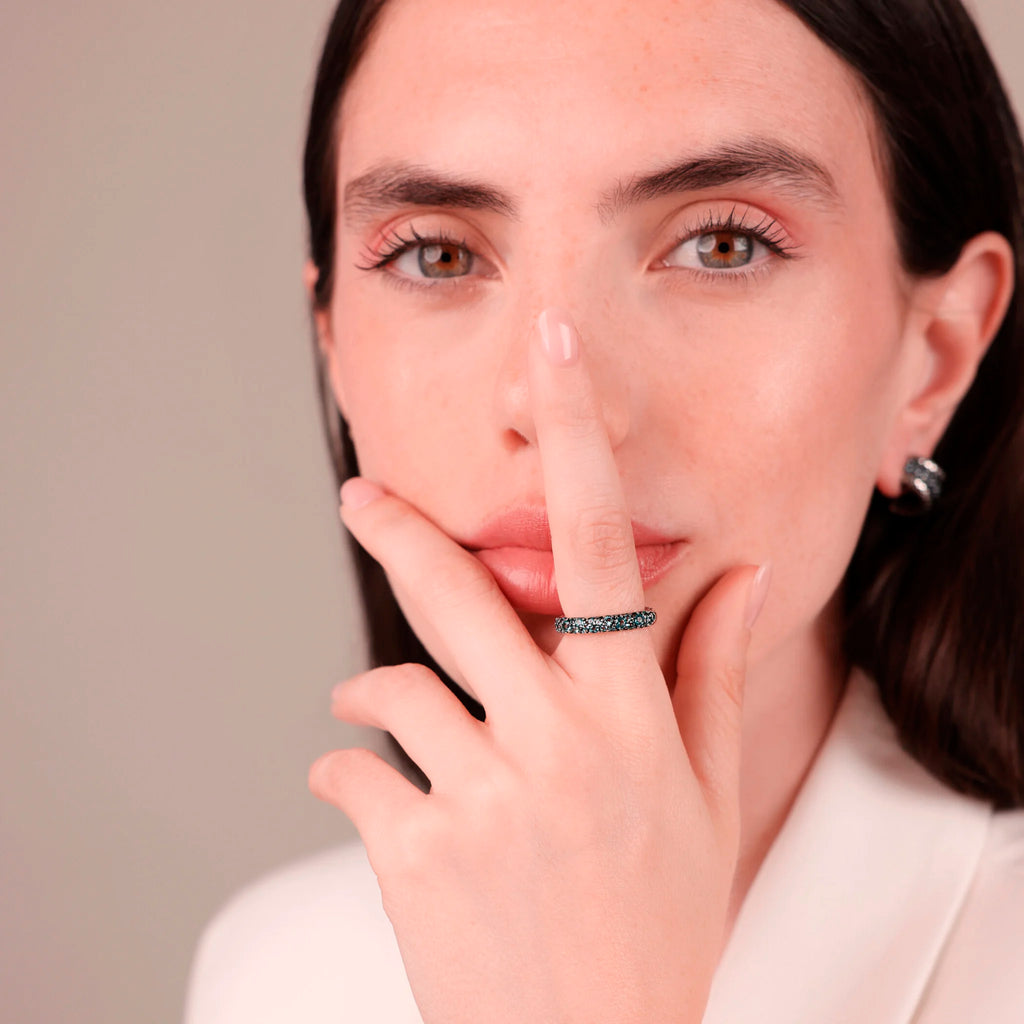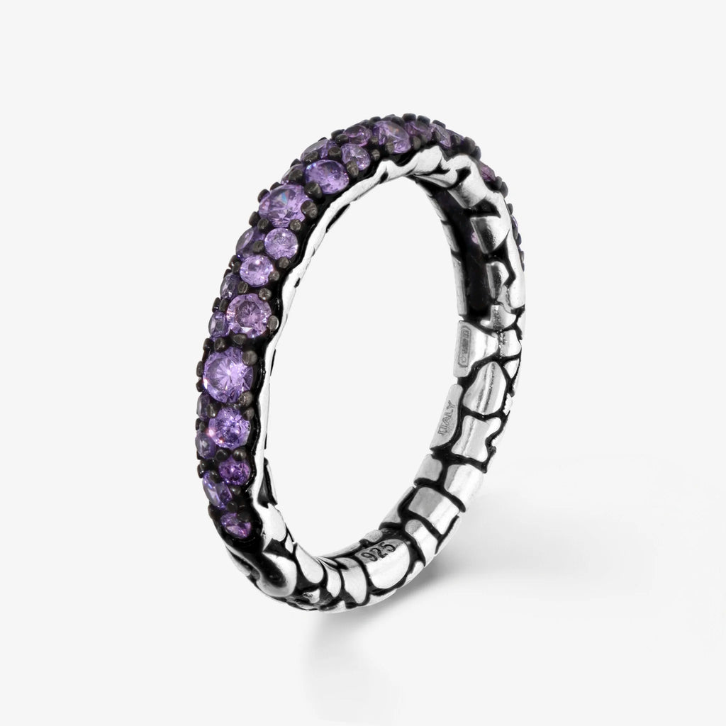 Anello fedina in Argento 925 con superficie texture impreziosito da pietre prisma gem.