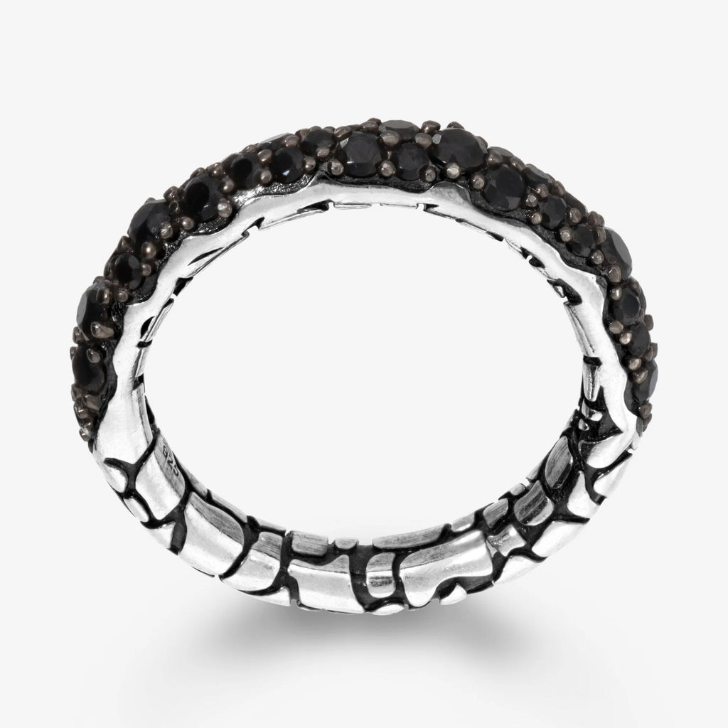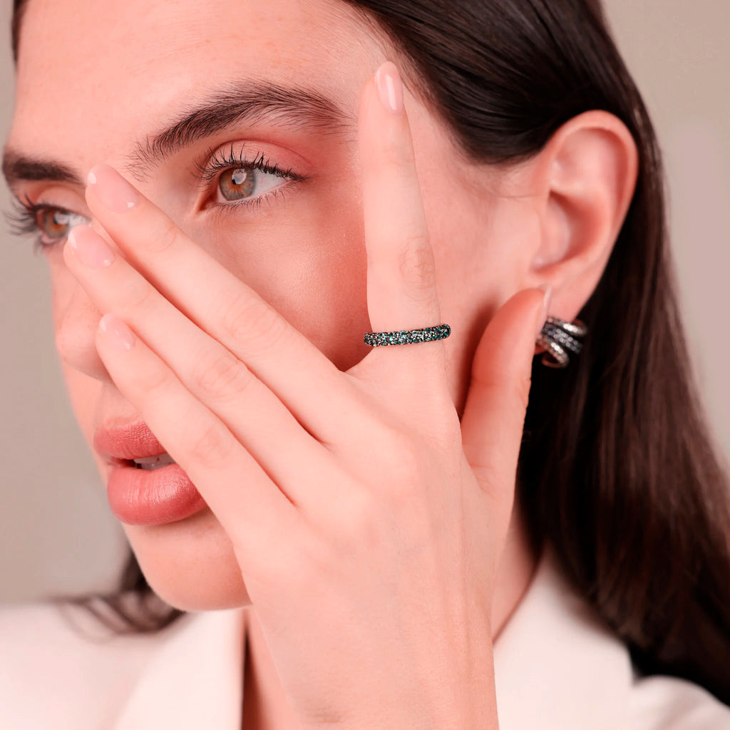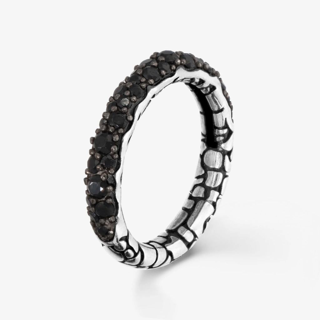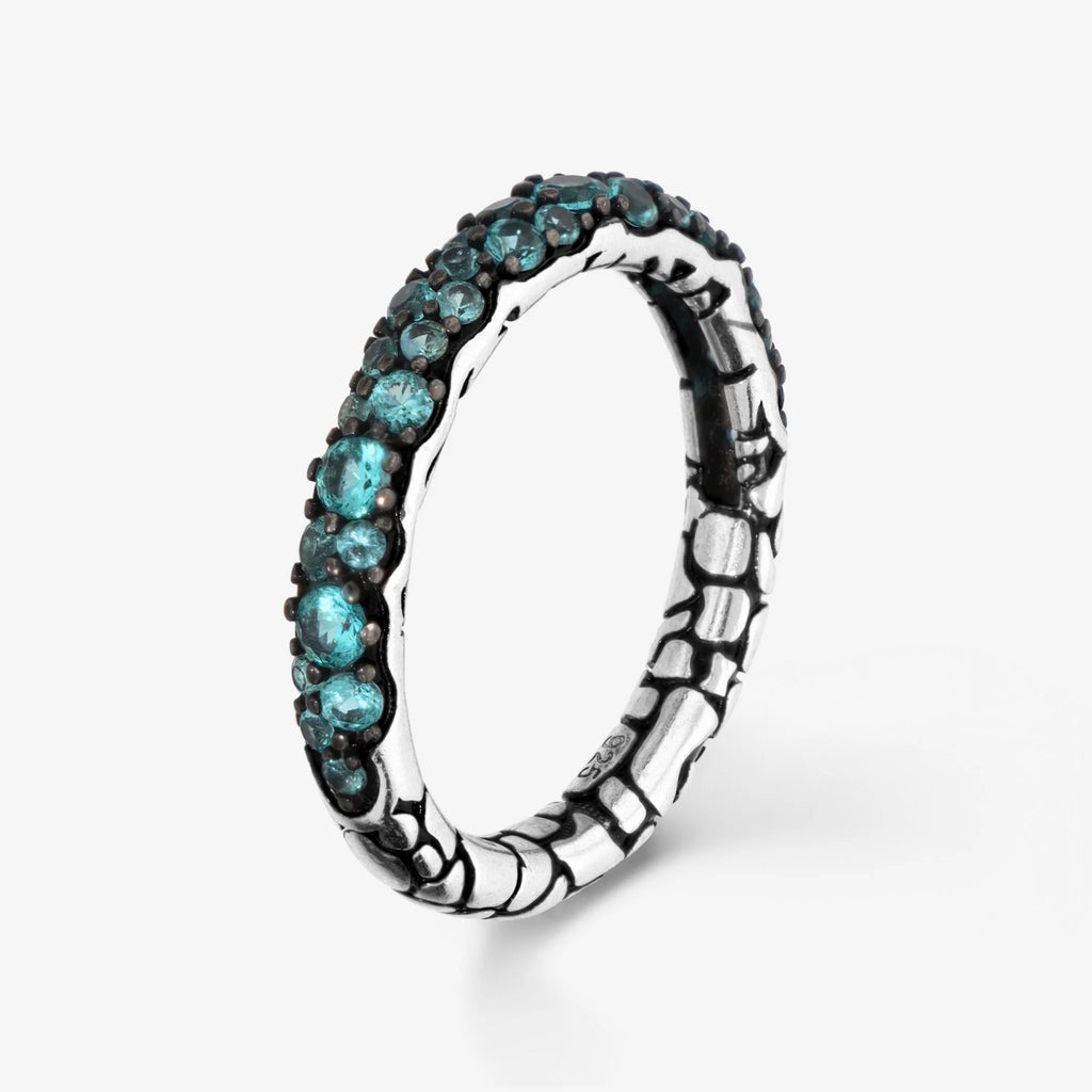 Anello fedina in Argento 925 con superficie texture impreziosito da pietre prisma gem.