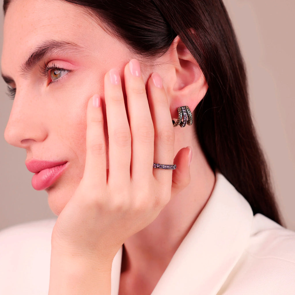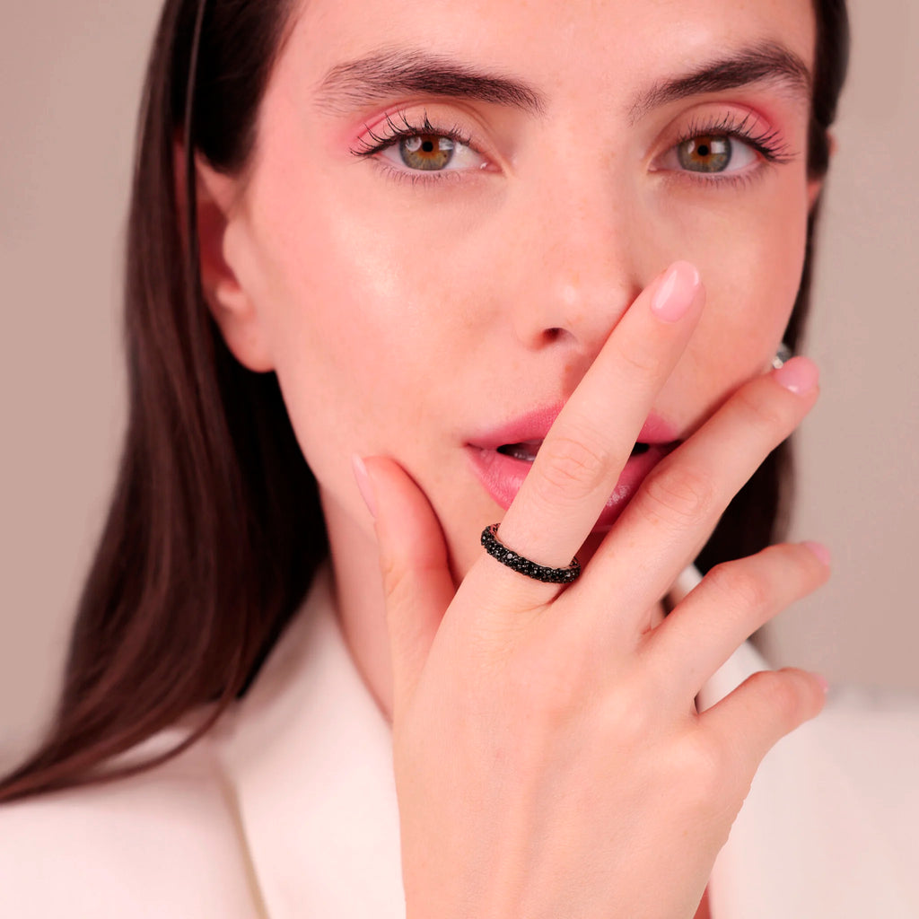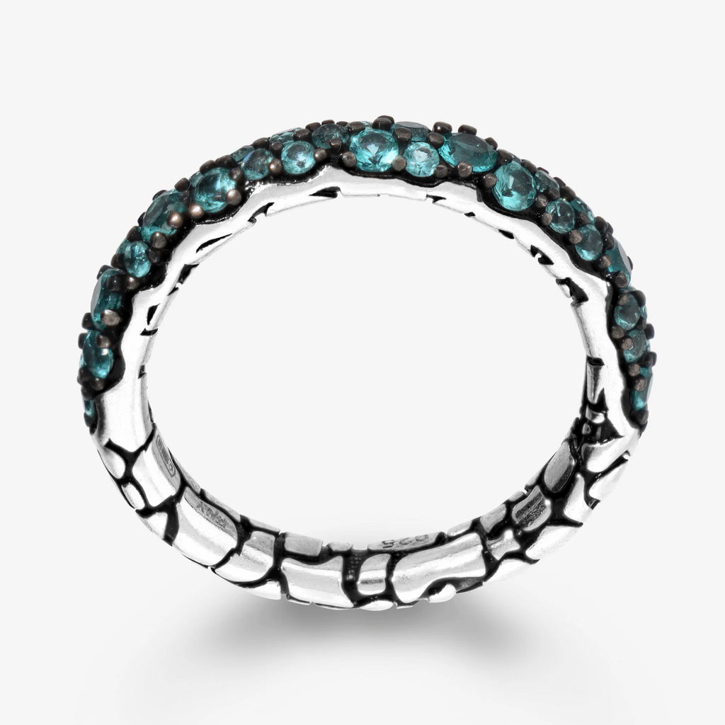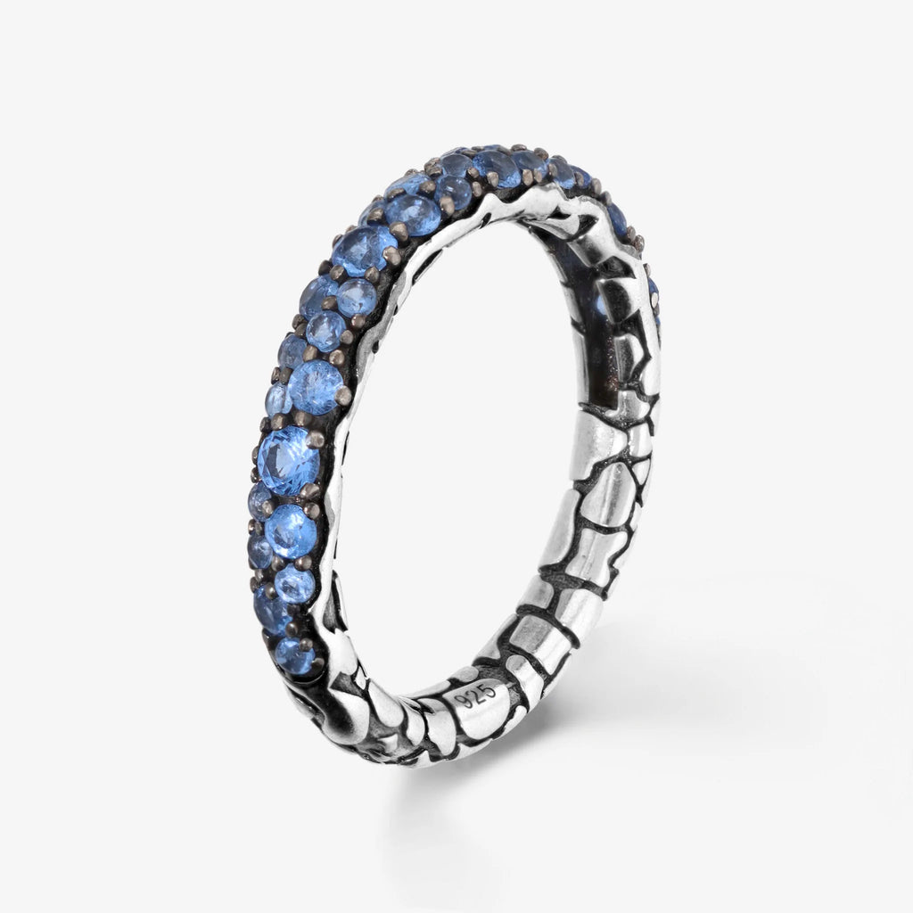 Anello fedina in Argento 925 con superficie texture impreziosito da pietre prisma gem.