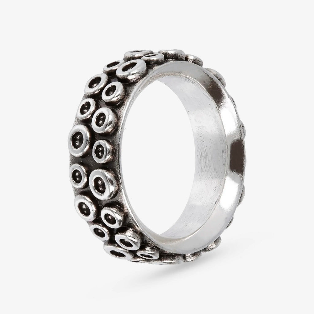 Anello fedina unisex Albert M. realizzato in argento 925 dal design classico con texture polpo.