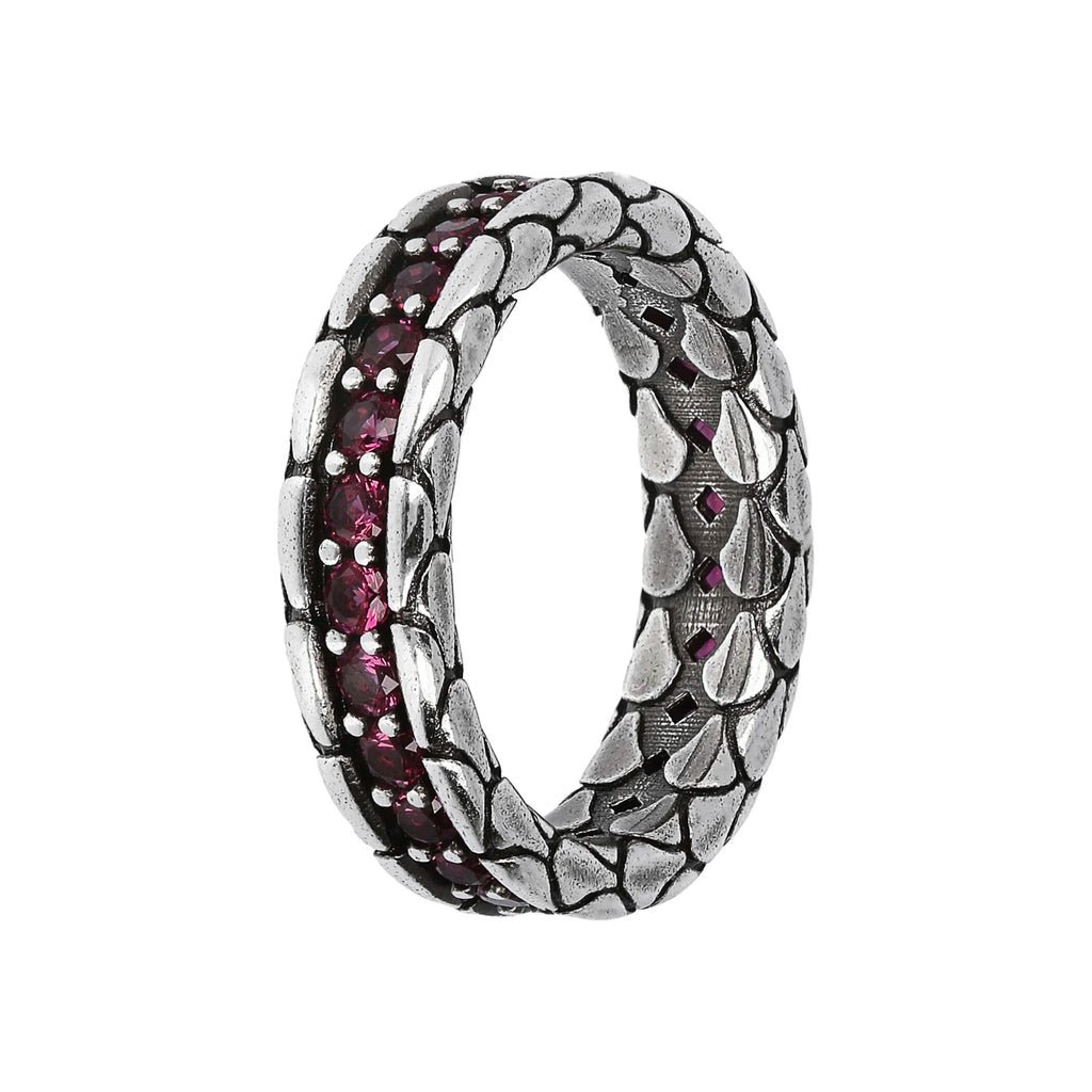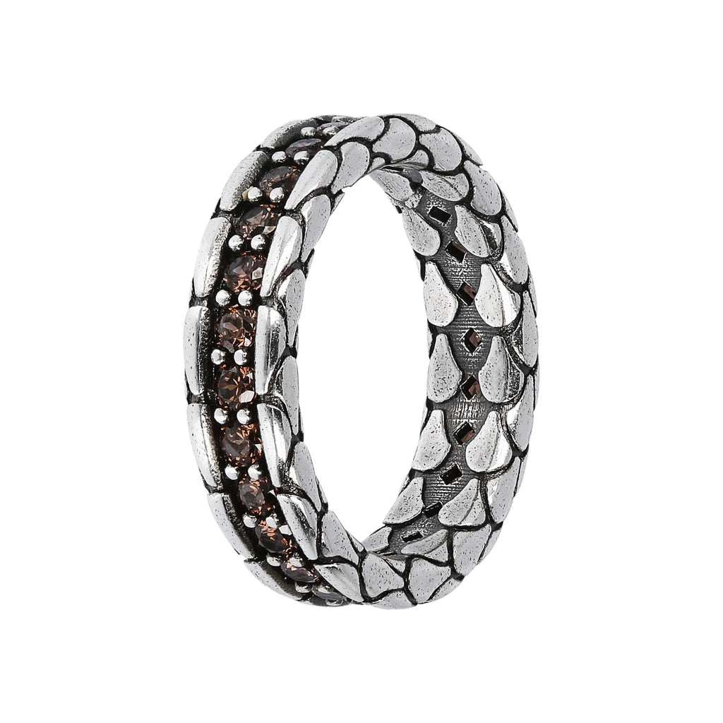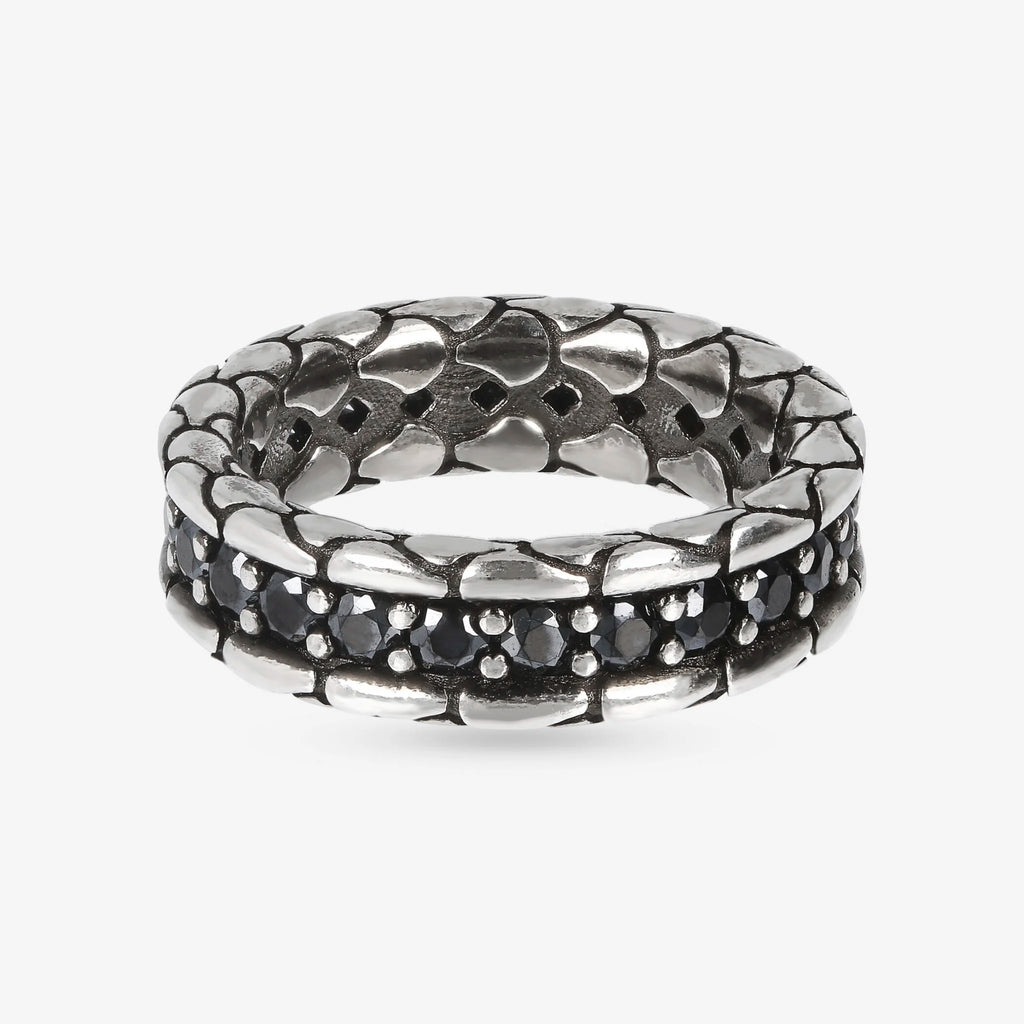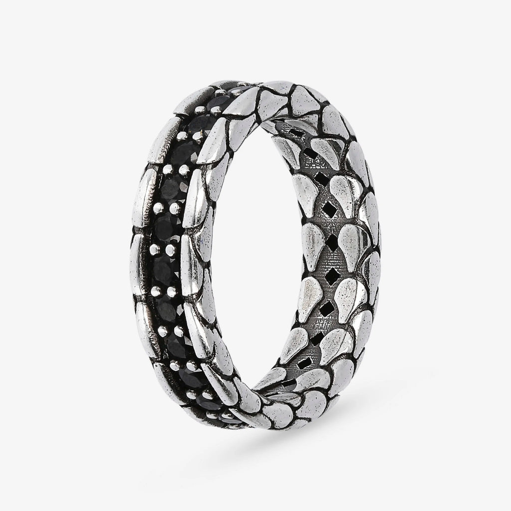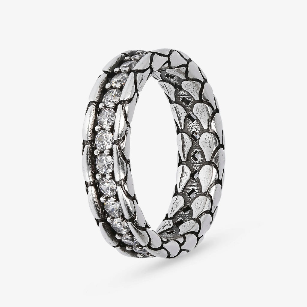 Anello fedina uomo Albert M. realizzato in argento 925 dalla texture sirena, impreziosito da una riviera di nano cristalli, pietre naturali o cubic zirconia, qualità luminosa. Creazione dal design definito che può essere facilmente indossata con qualsiasi abito.
