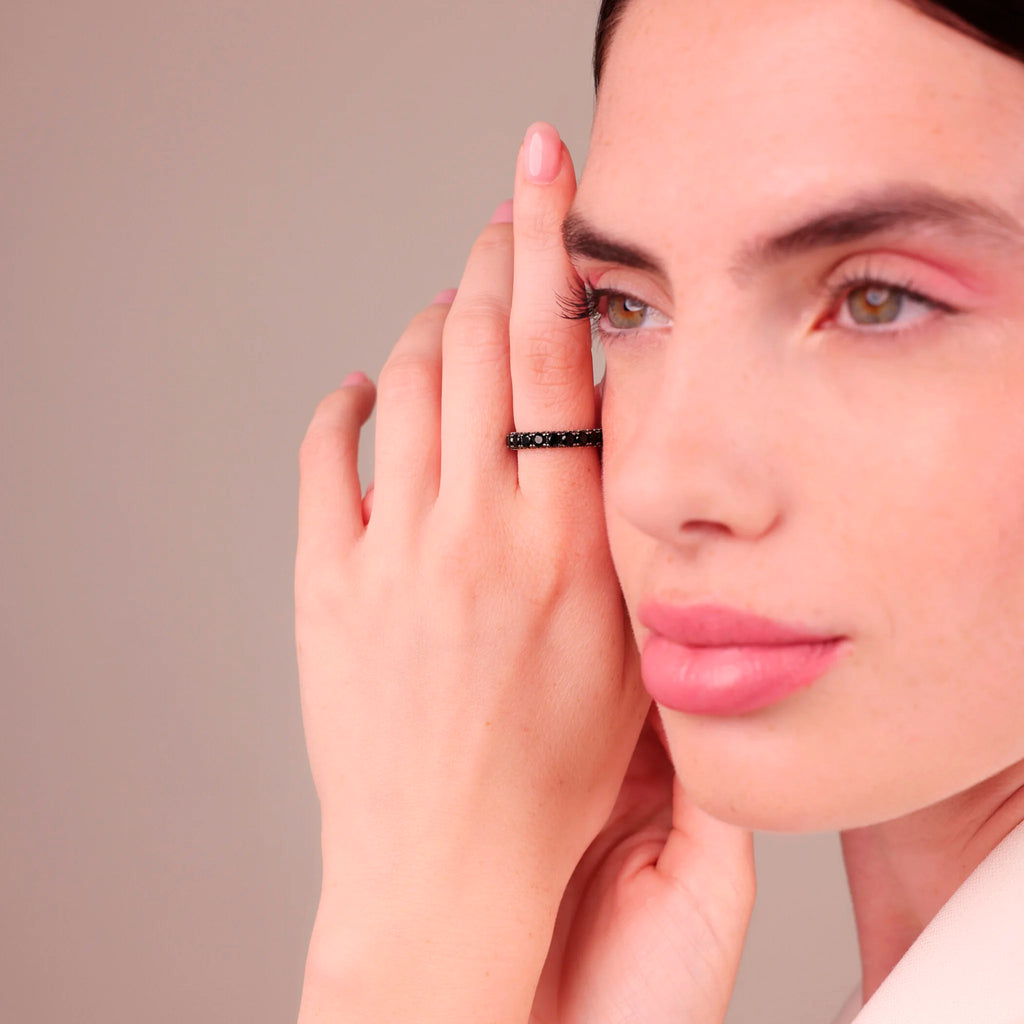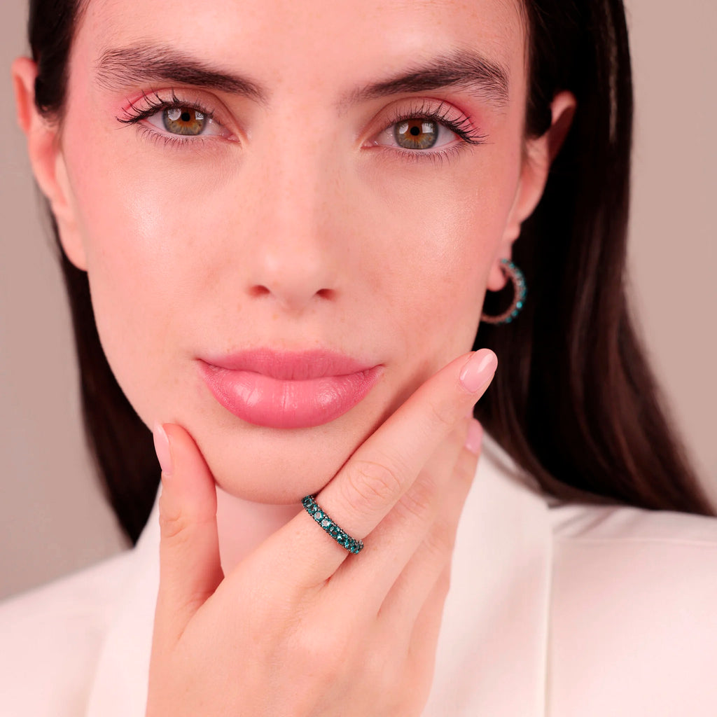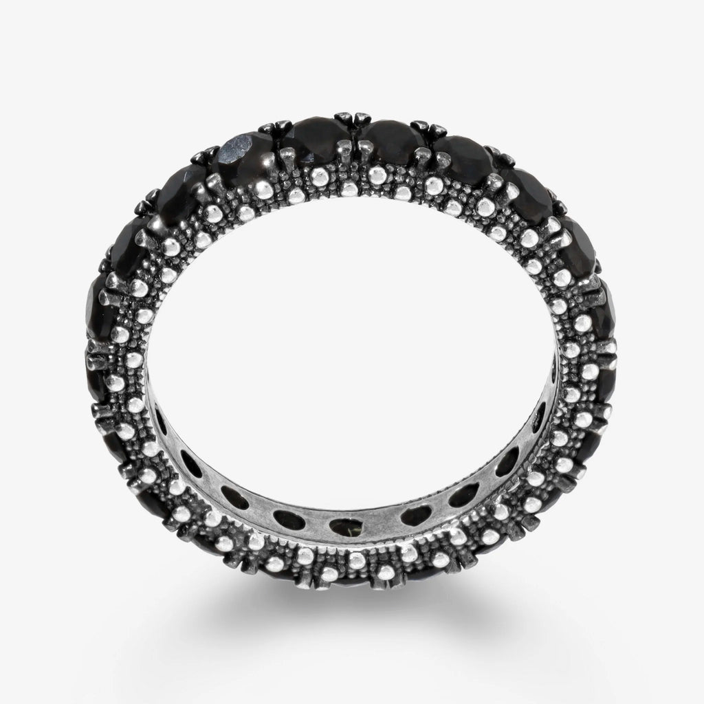 Anello veretta in Argento 925 con superficie texture riccio di mare impreziosito da pavé di pietre.