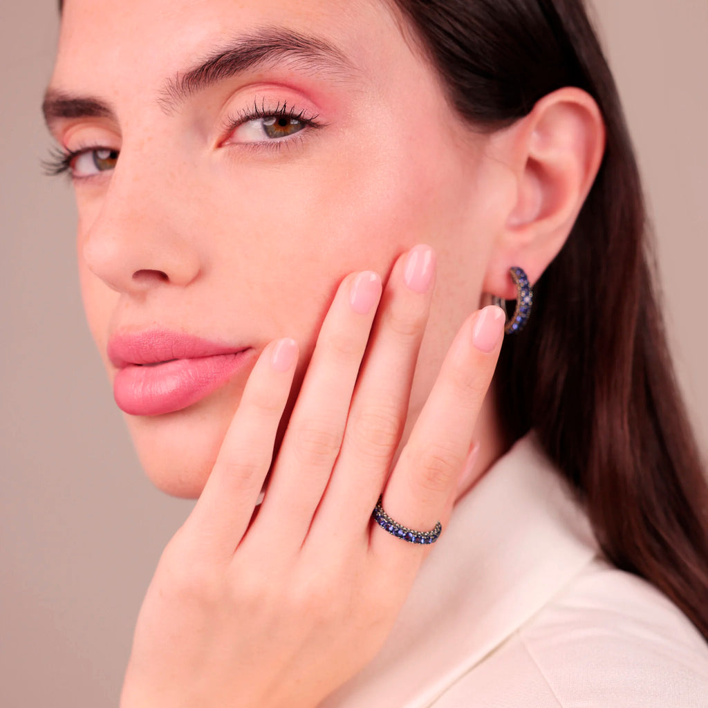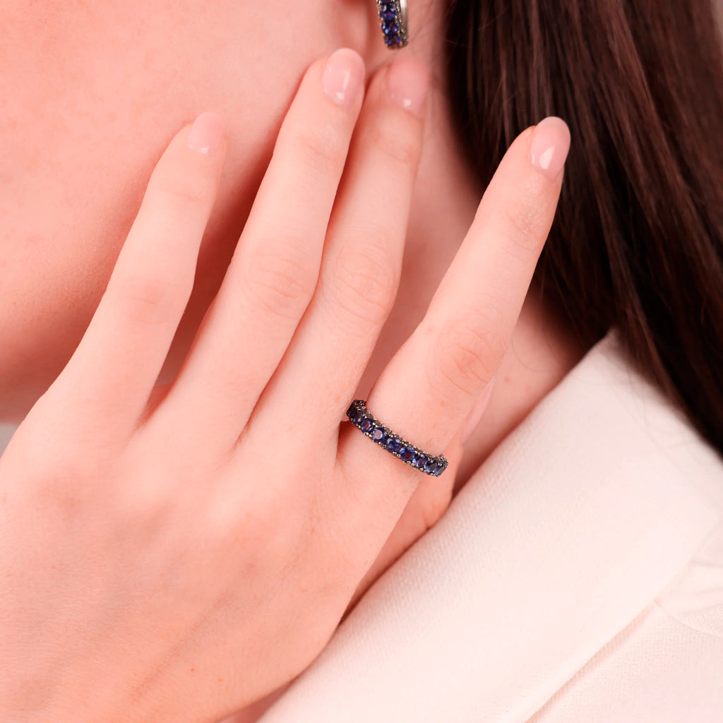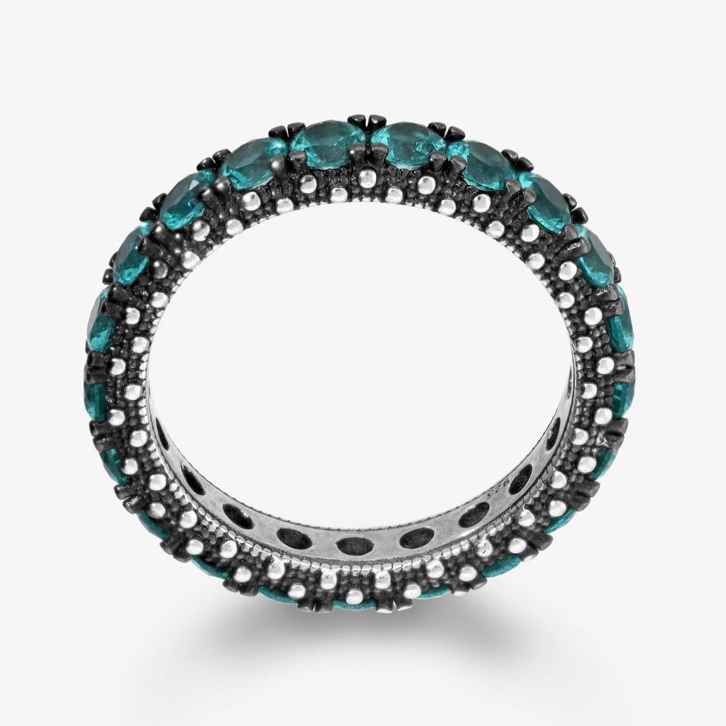 Anello veretta in Argento 925 con superficie texture riccio di mare impreziosito da pavé di pietre.