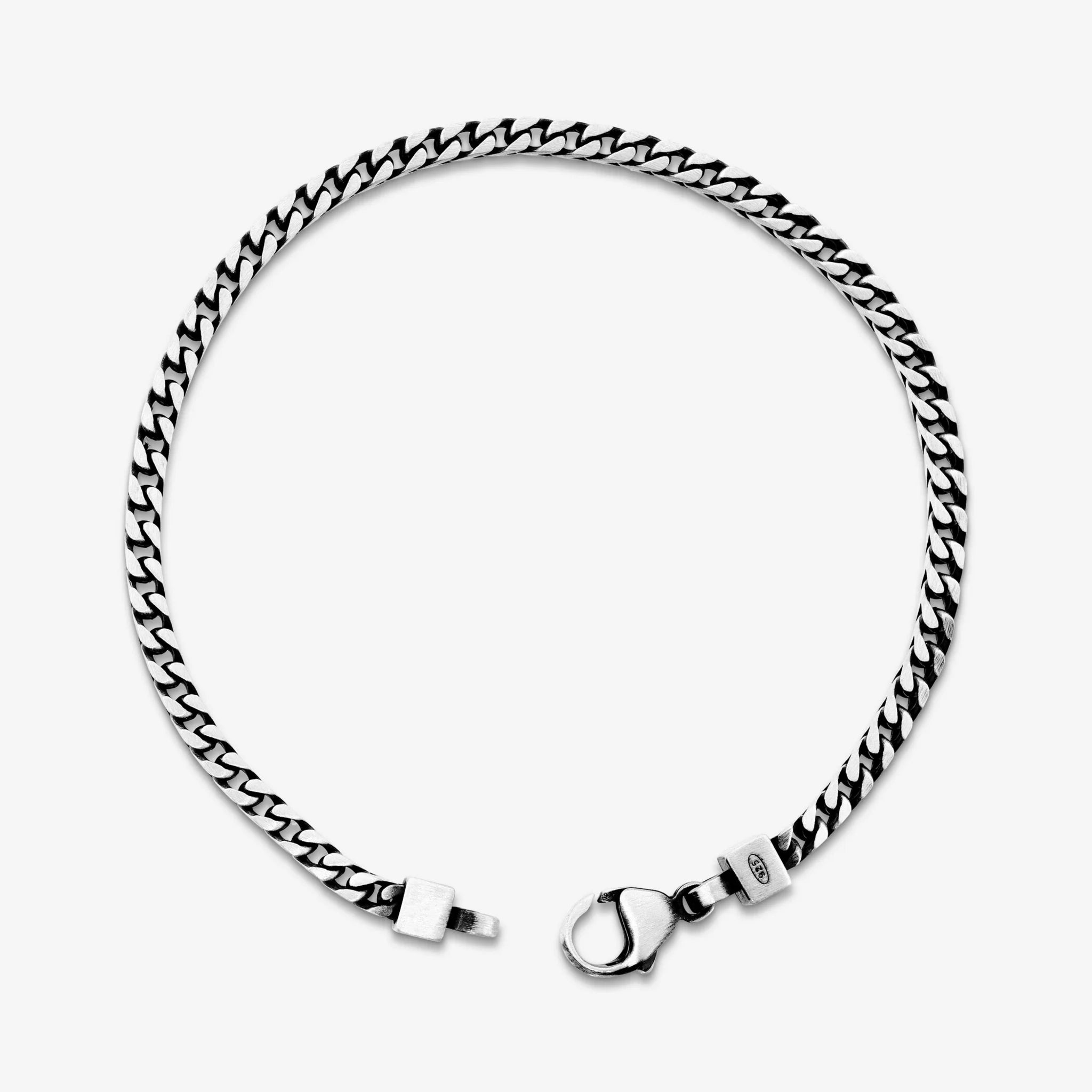 Bracciale Albert M. realizzato in Argento 925 con catena grumetta sottile. Finitura lucida. Chiusura a moschettone.