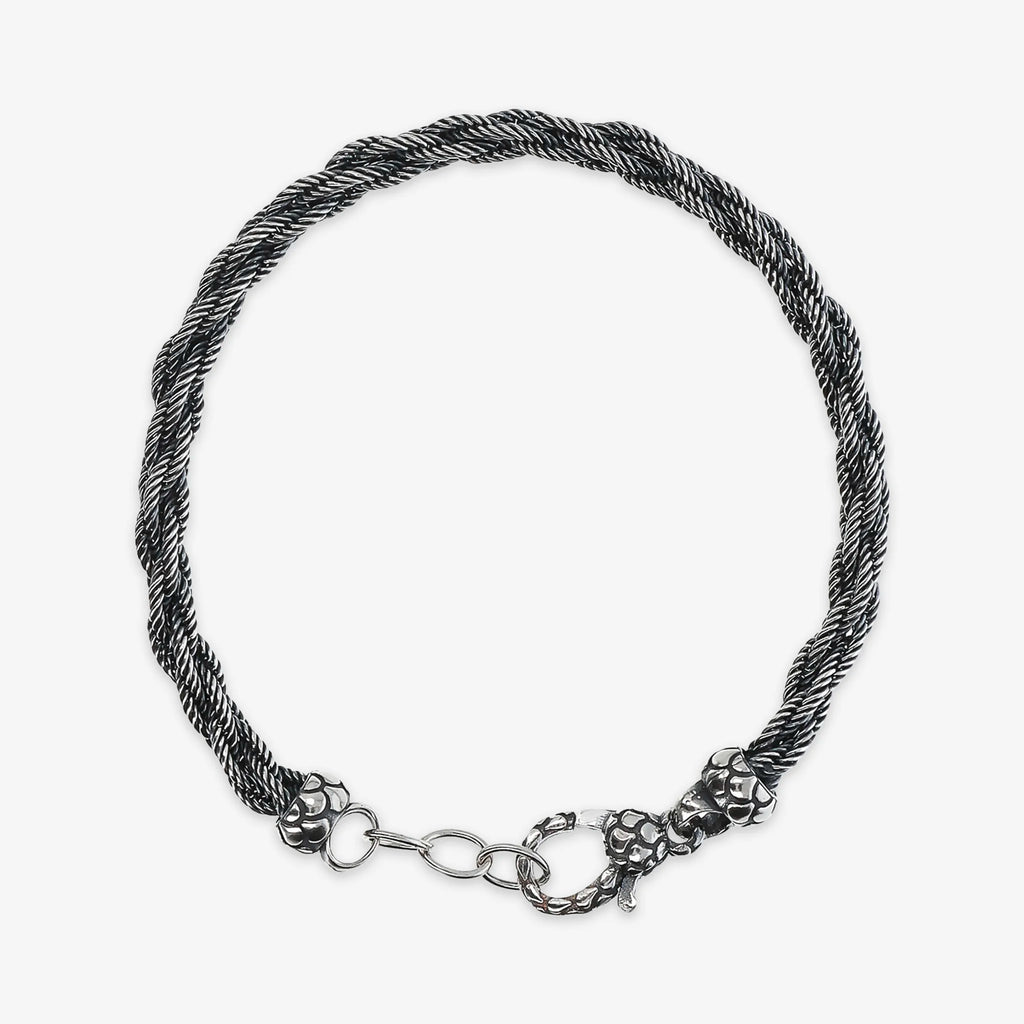 Bracciale uomo Albert M. realizzato in Argento 925 con maglia spiga intrecciata. Lunghezza 18.5+3 cm di estensione. Chiusura a moschettone texture sirena.