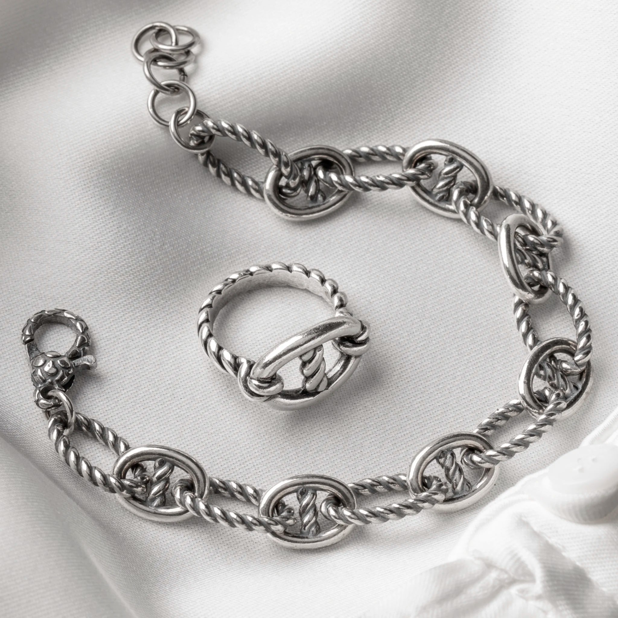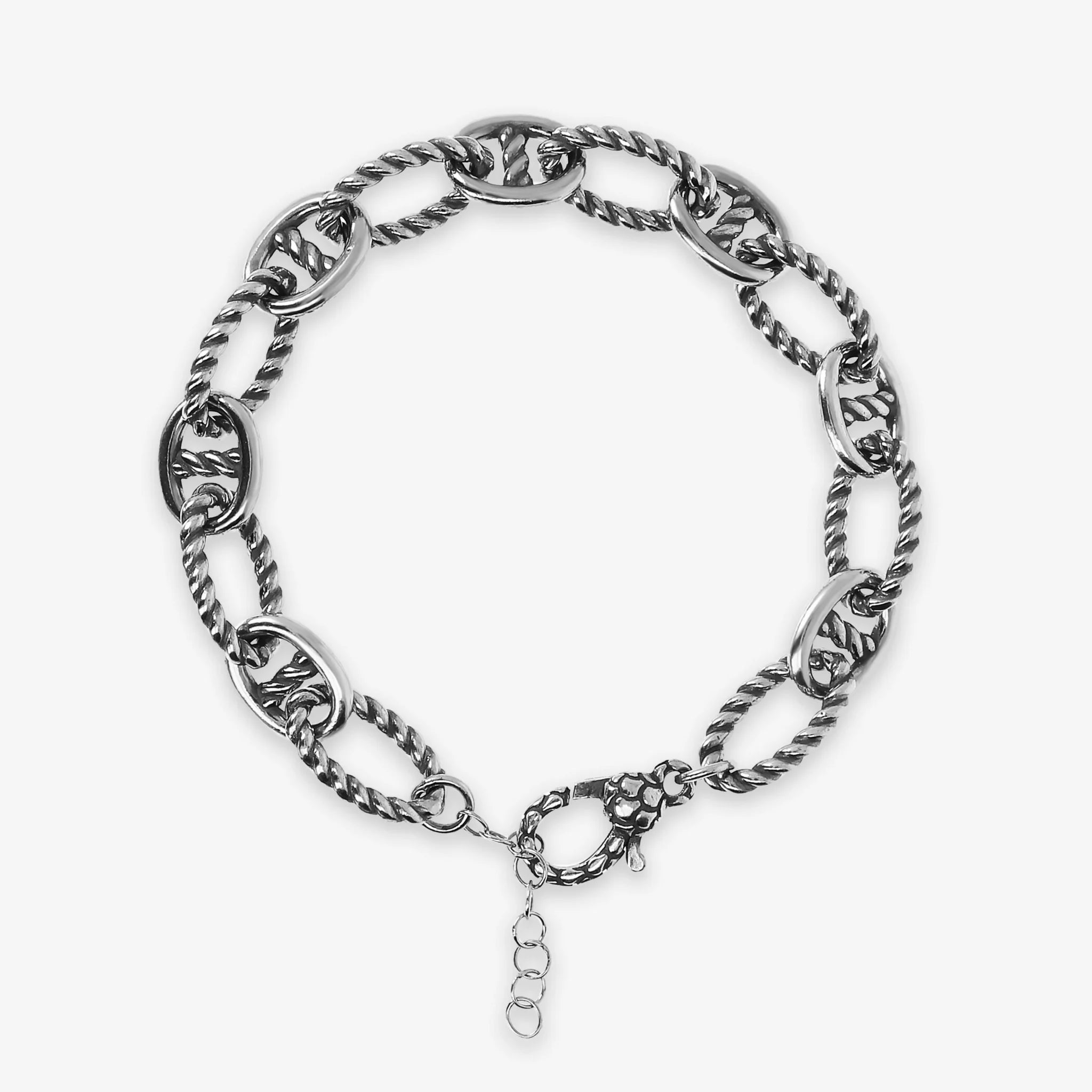 Bracciale con Catena Marina e Maglie Ovali Ritorte in Argento 925