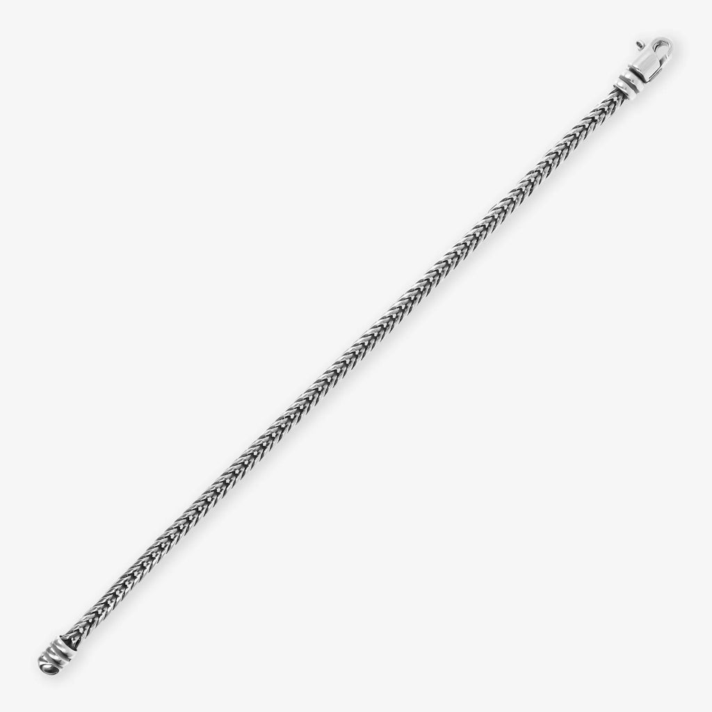 Bracciale uomo Albert M. realizzato su base di argento 925 composto da una catena spiga; chiusura a moschettone. Disponibile in due misure: small (19 cm) e large (21 cm). Creazione che può essere facilmente indossata con qualsiasi abito.