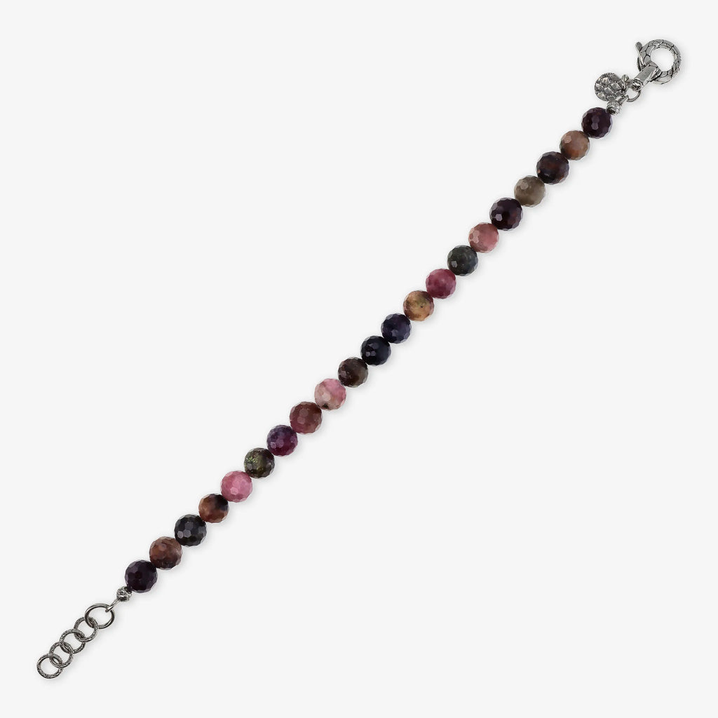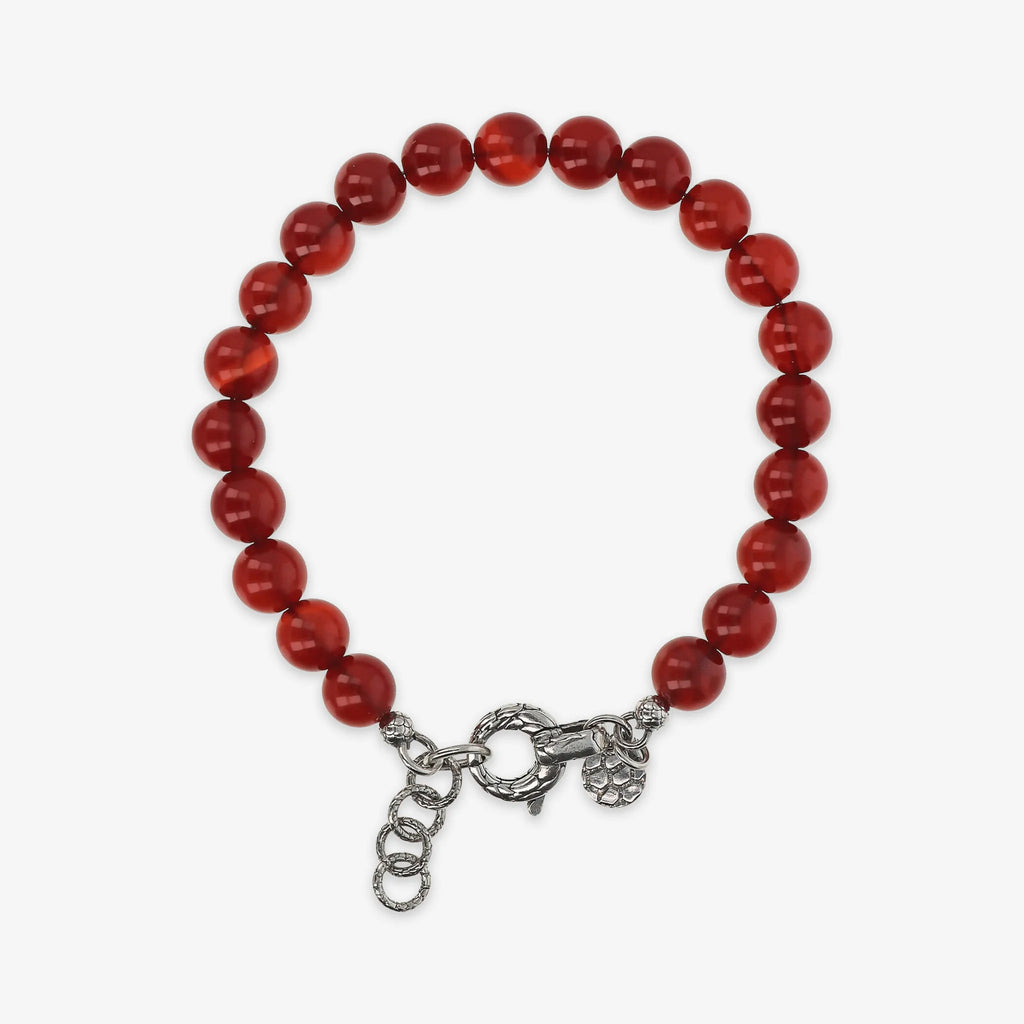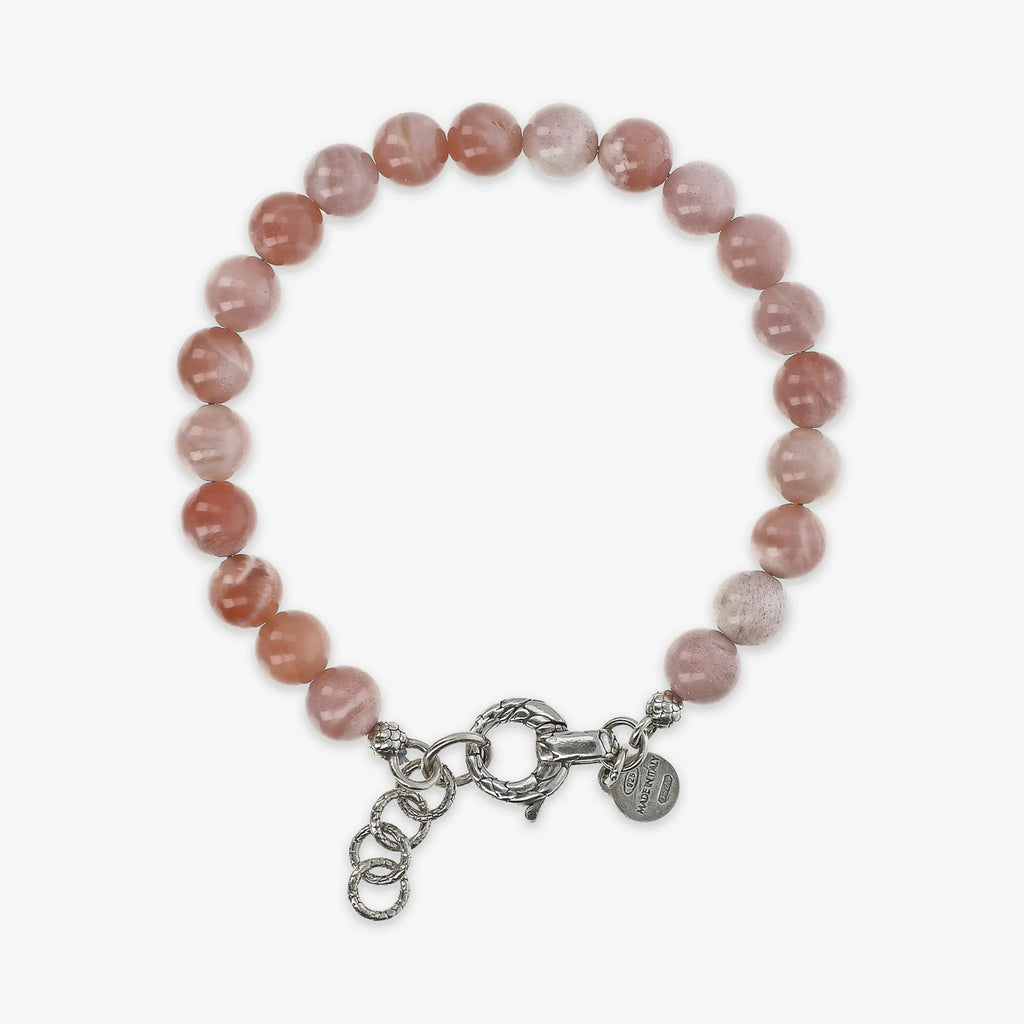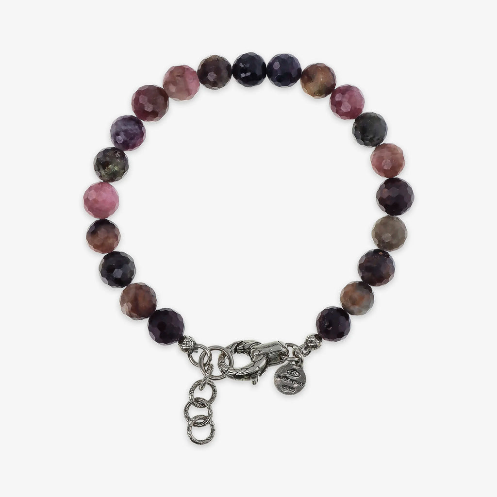 Bracciale realizzato in Argento 925 impreziosito da sfere (8 mm) in pietra naturale. Lunghezza 20+3 cm di estensione. Chiusura a moschettone con texture sirena.