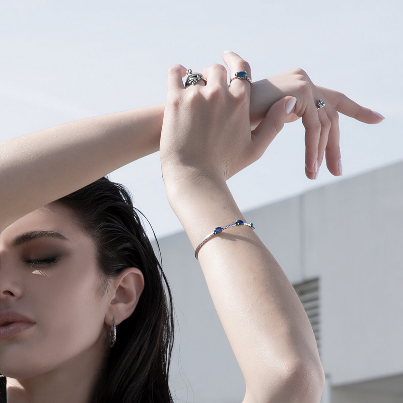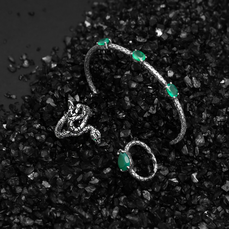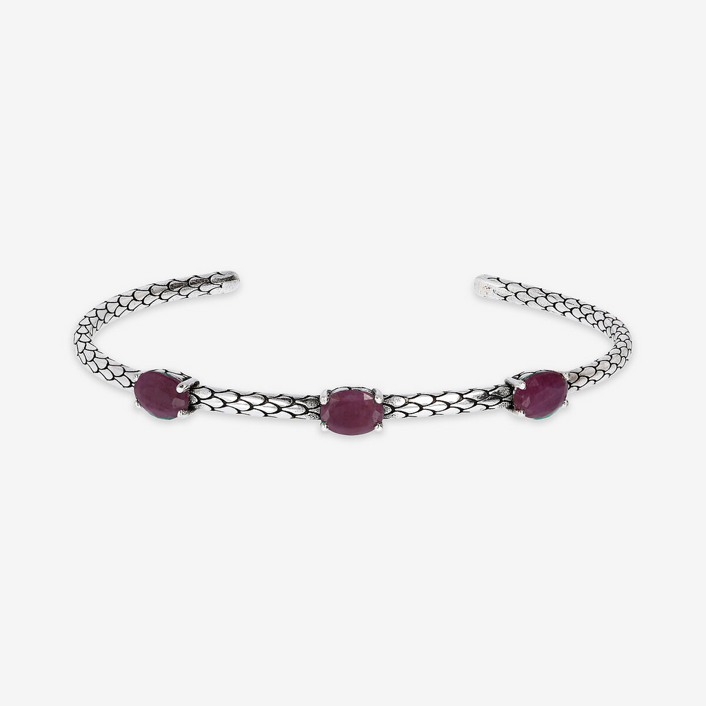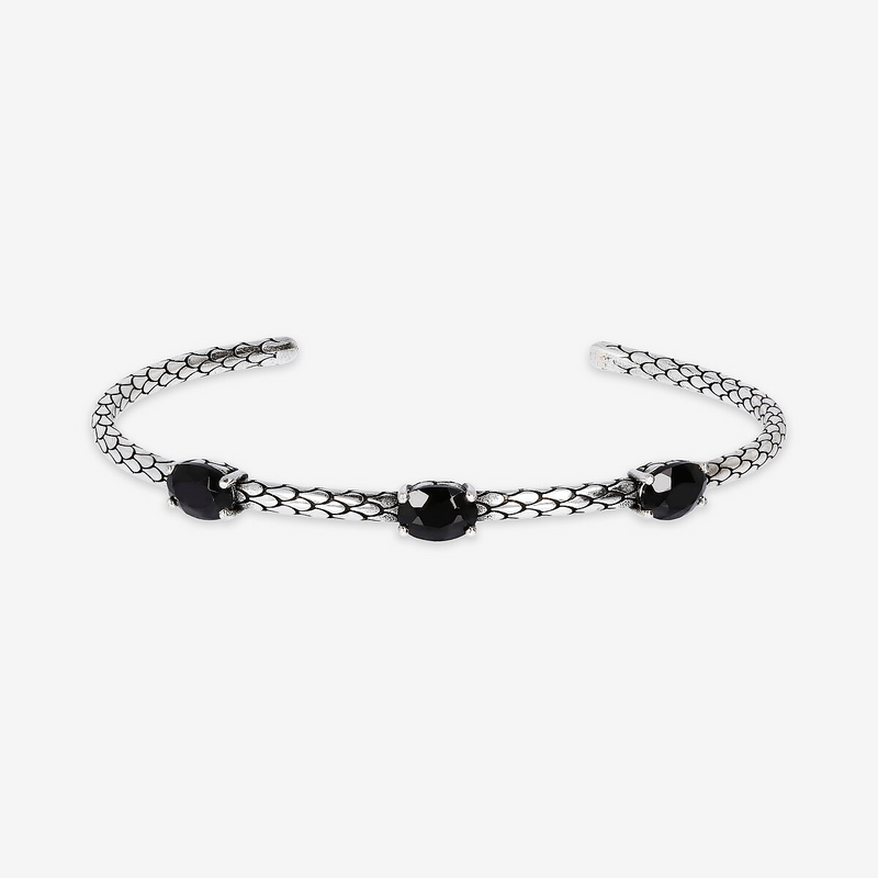 Bracciale rigido Albert M. in Argento 925 con texture sirena impreziosito da tre pietre naturali sfaccettate dalla forma ovale (7x5 mm).