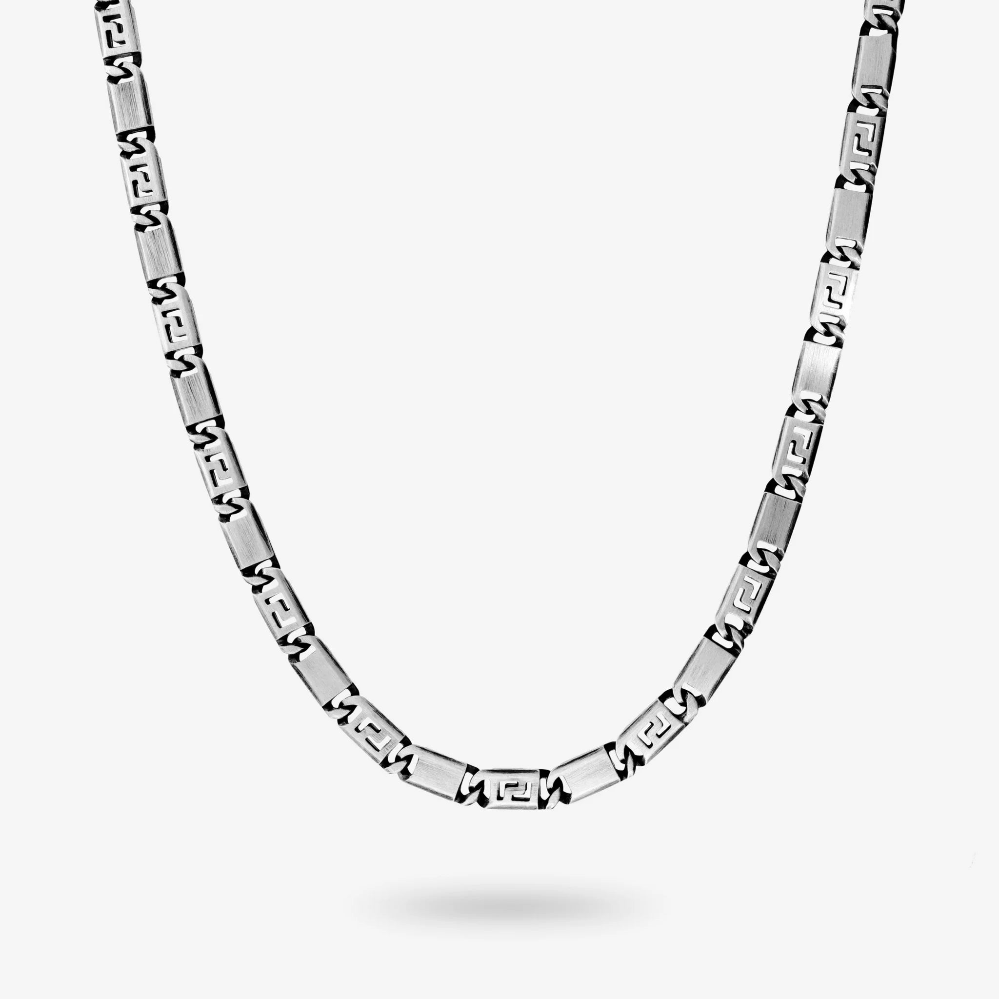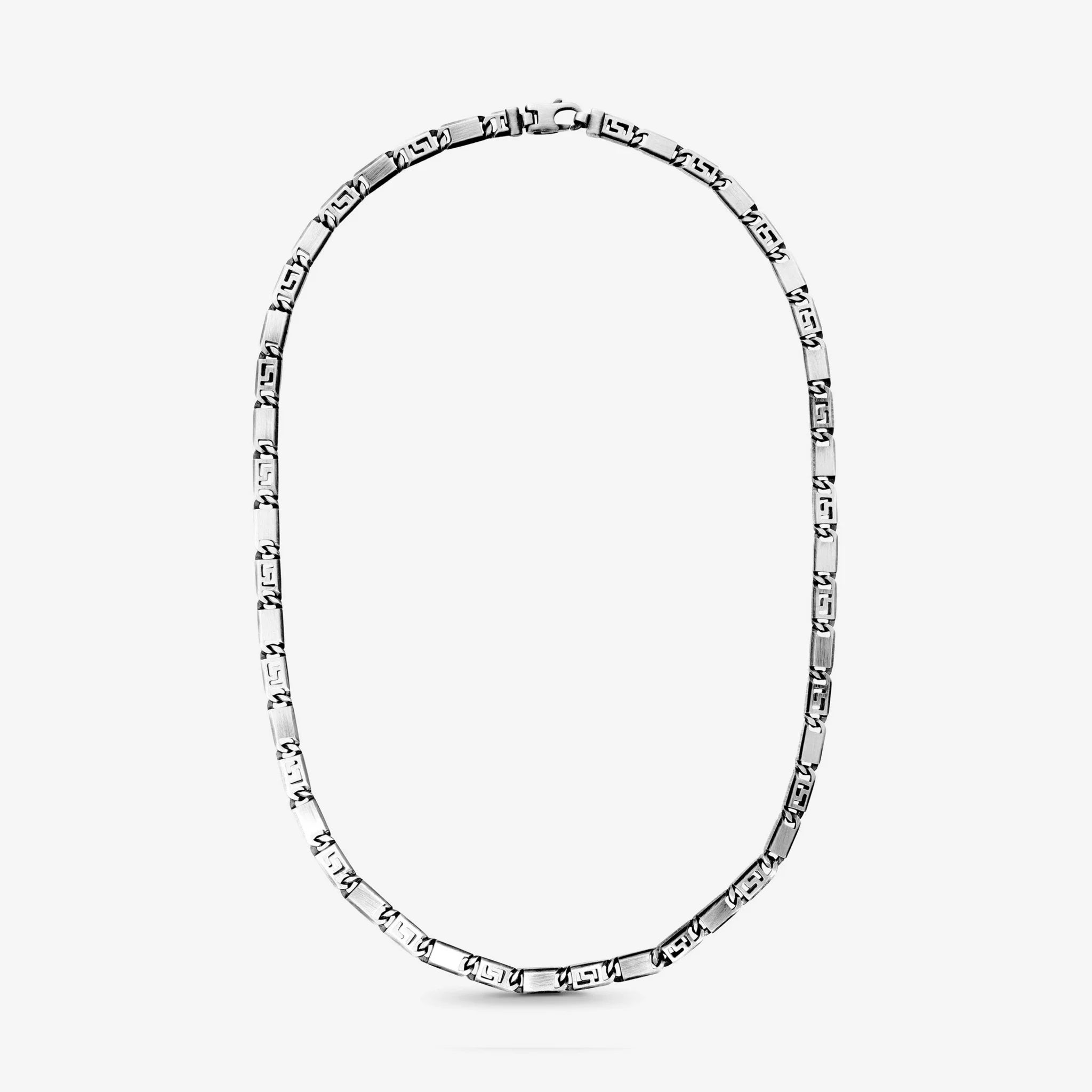Collana Albert M. realizzata in Argento 925 con catena traforata. Finitura lucida. Chiusura a moschettone. Disponibile in due misure: Short (50cm) e Long (60cm).
