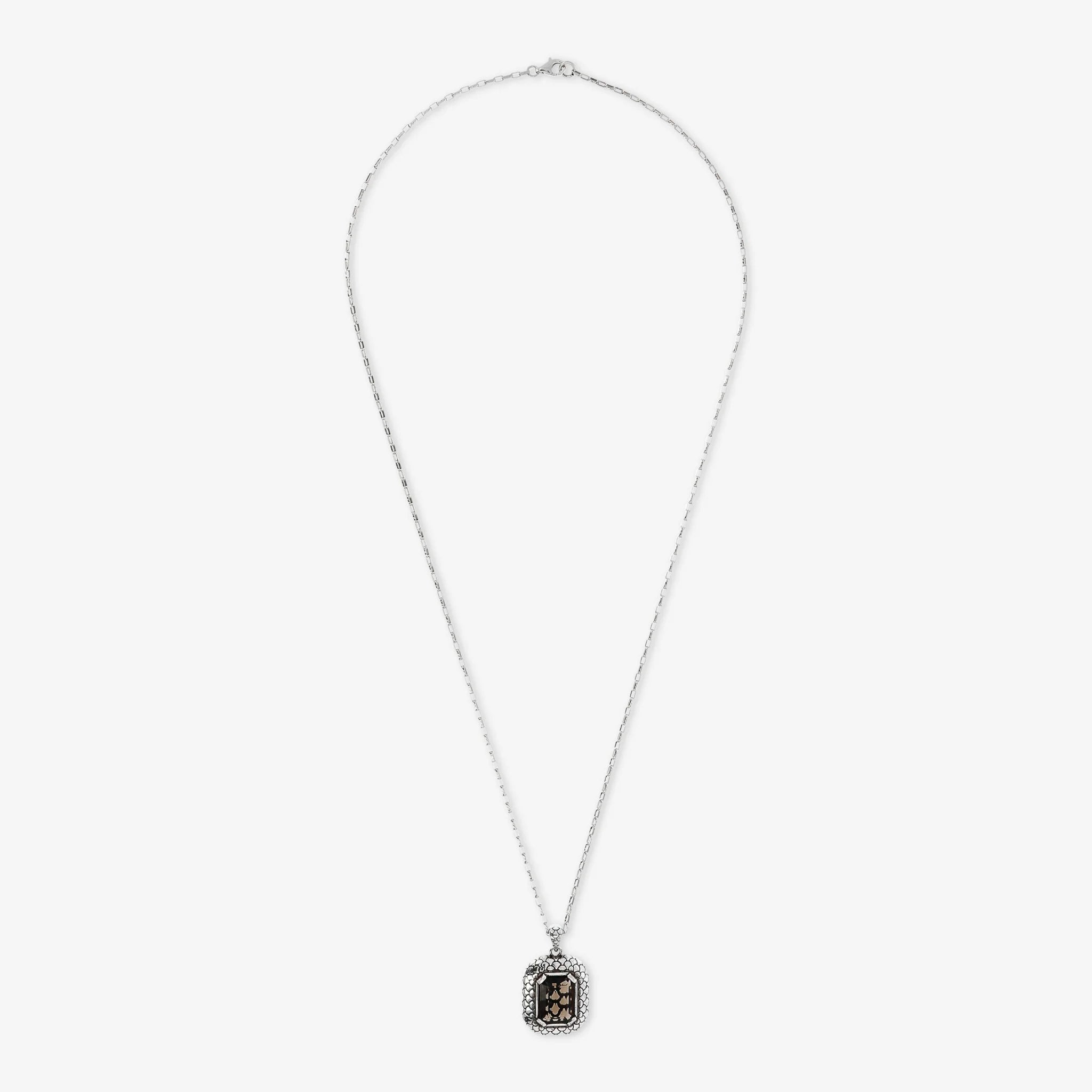 Collana con Catena Forzatina e Pendente Rettangolare con Texture Sirena e Quarzo Marrone in Argento 925