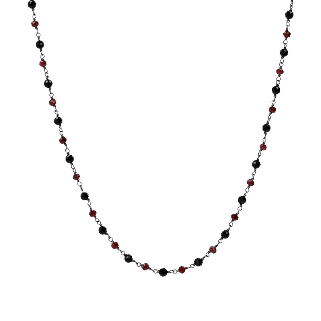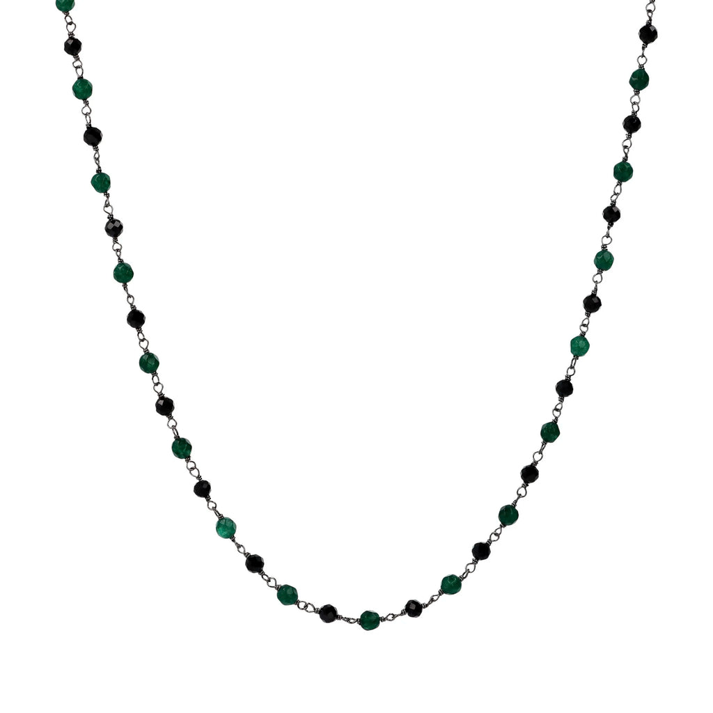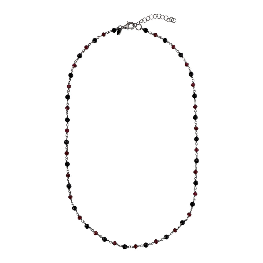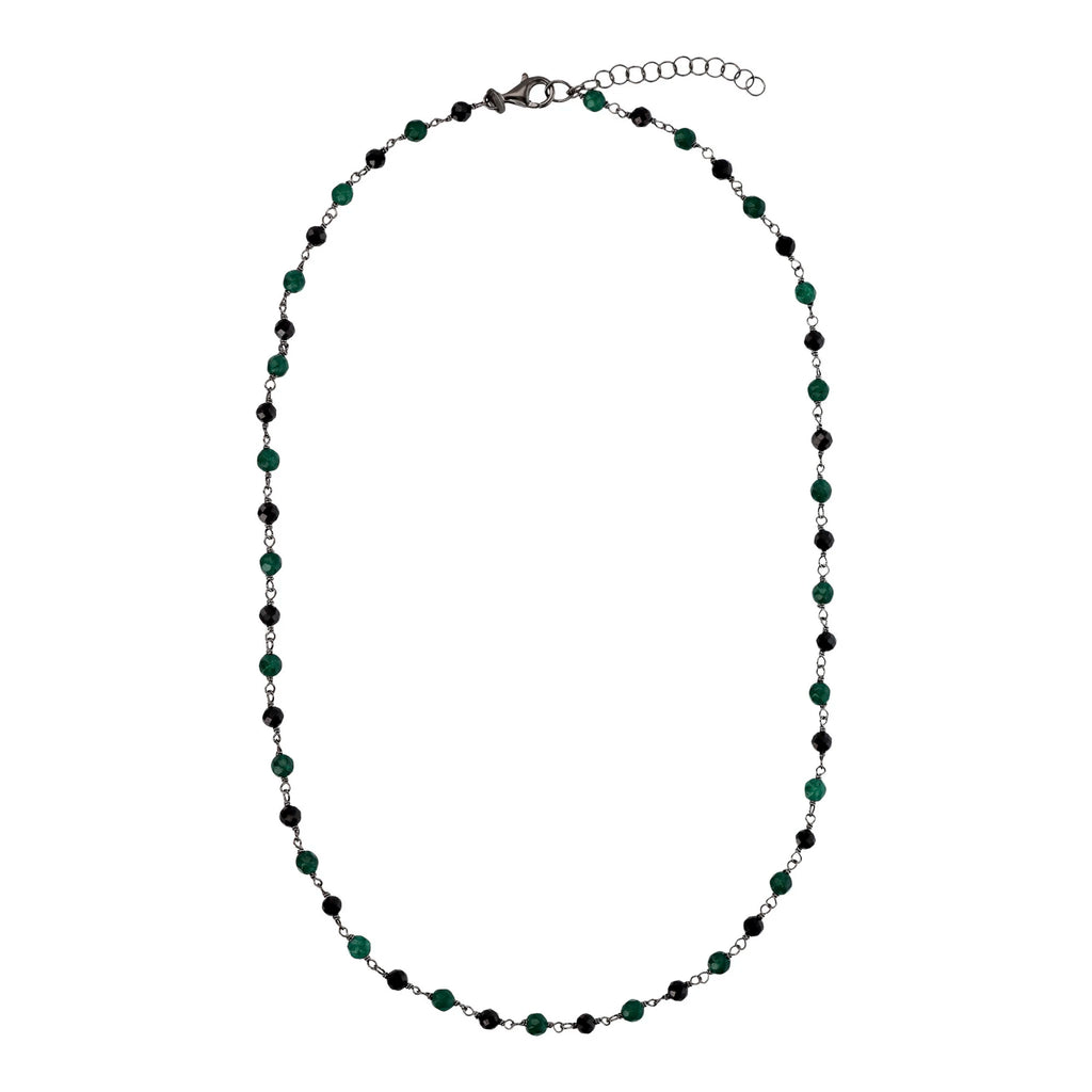 Collana rosario girocollo unisex Albert M. realizzata in Argento 925, placcato Rutenio, impreziosita da piccole sfere in pietra naturale sfaccettata. Chiusura a moschettone.