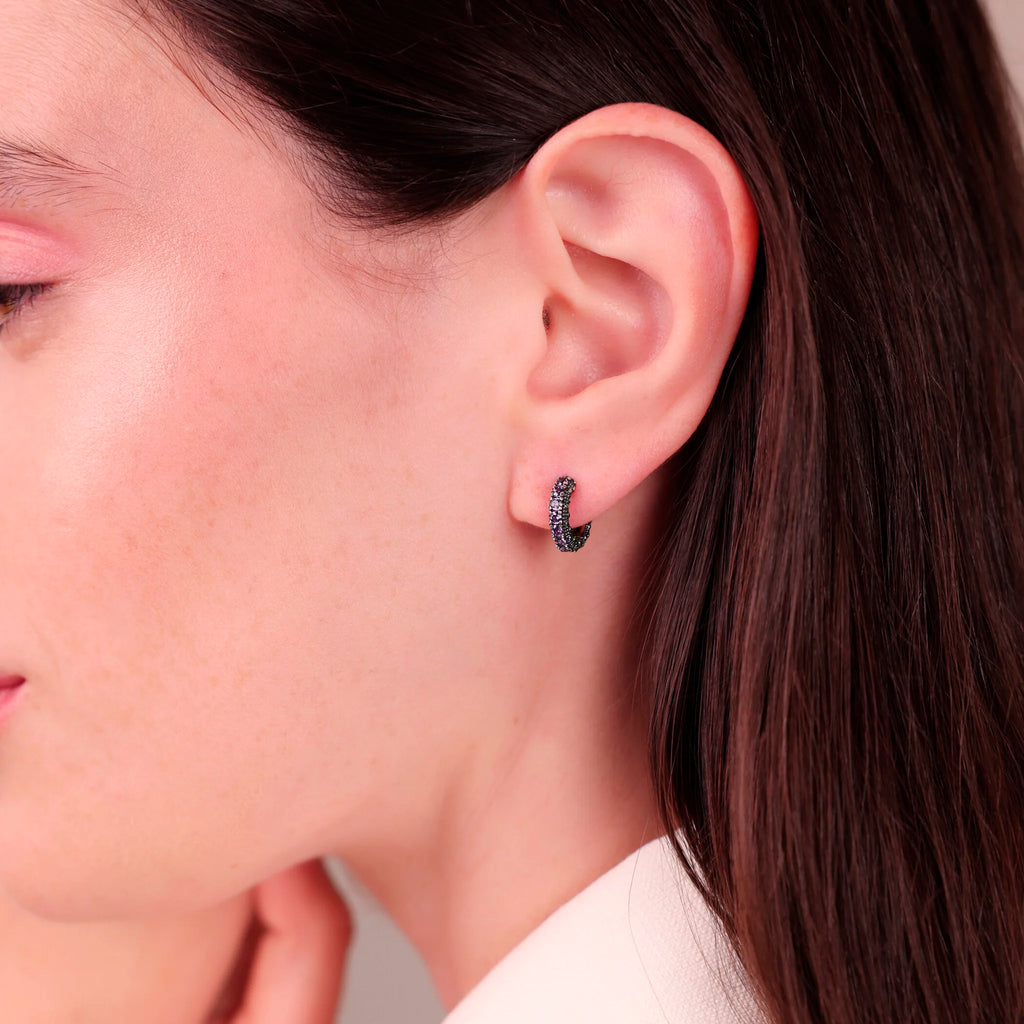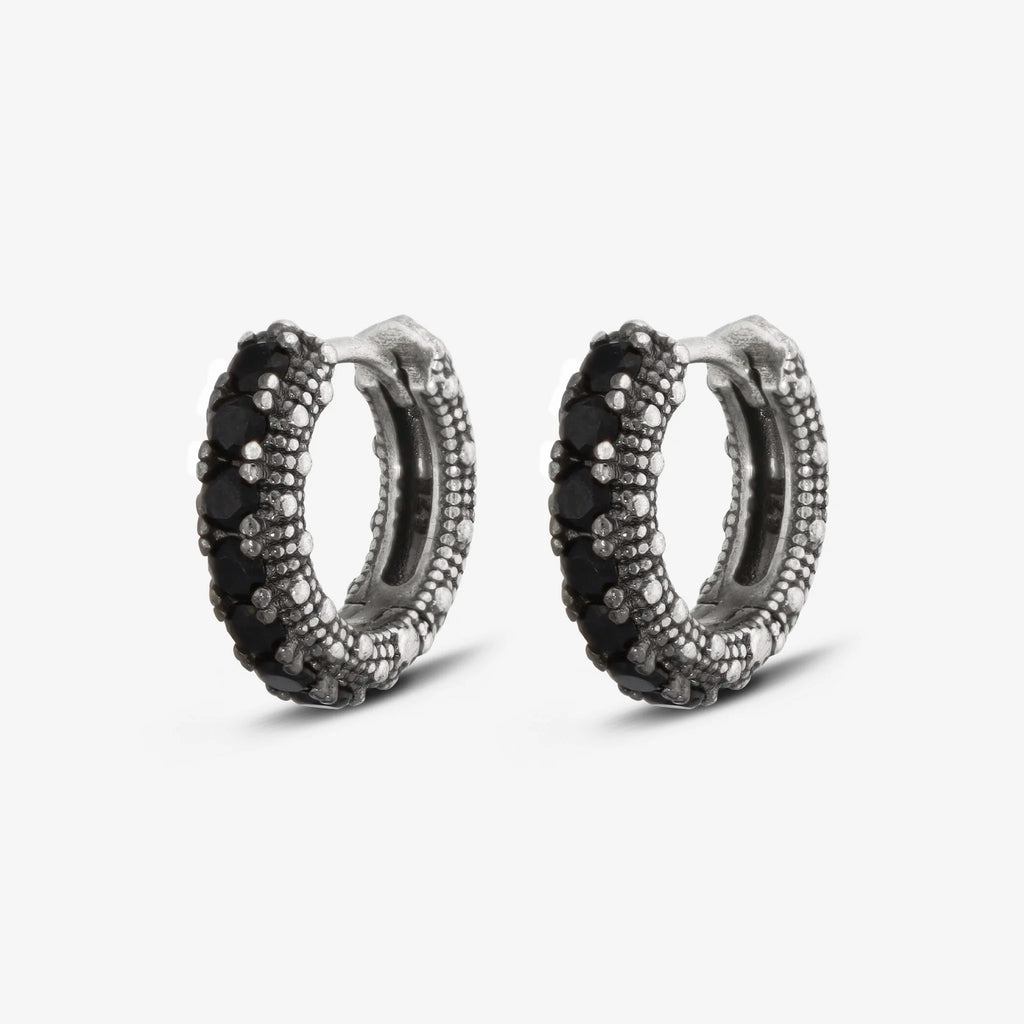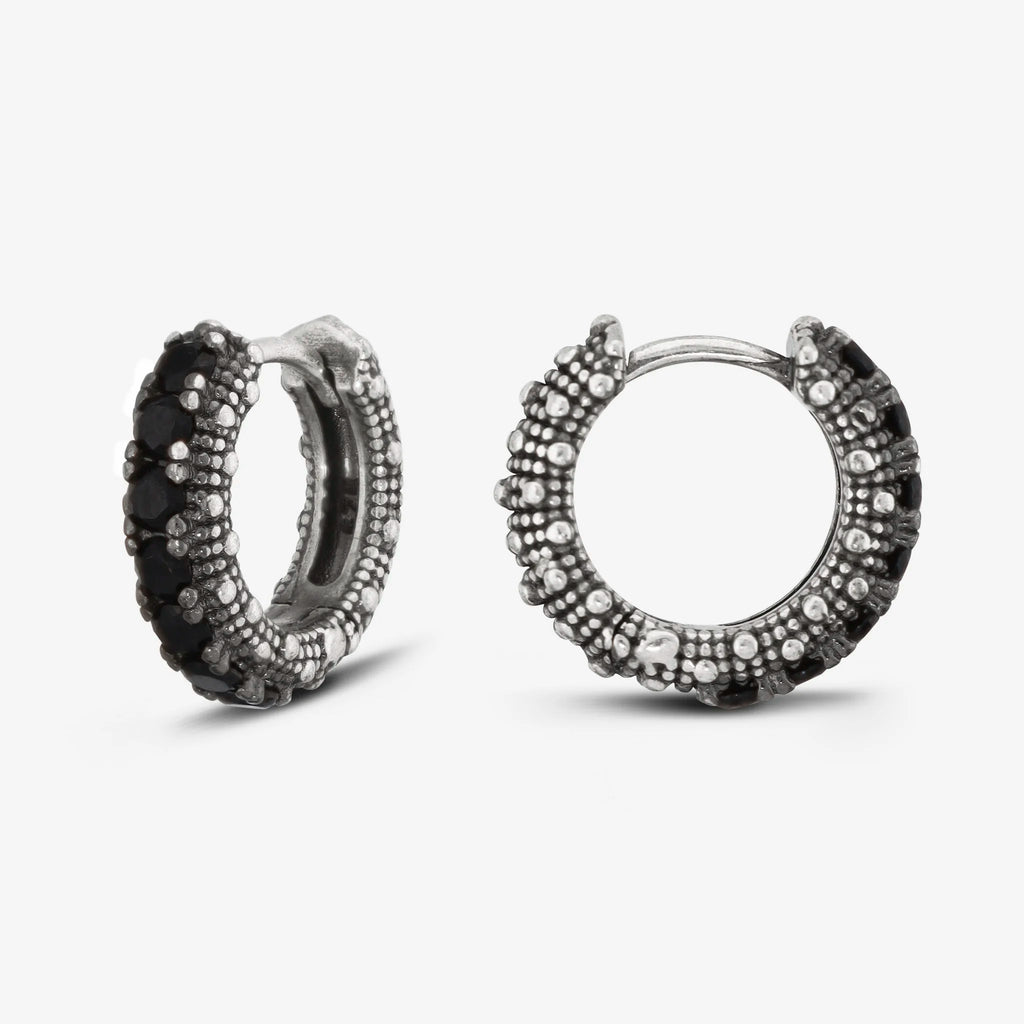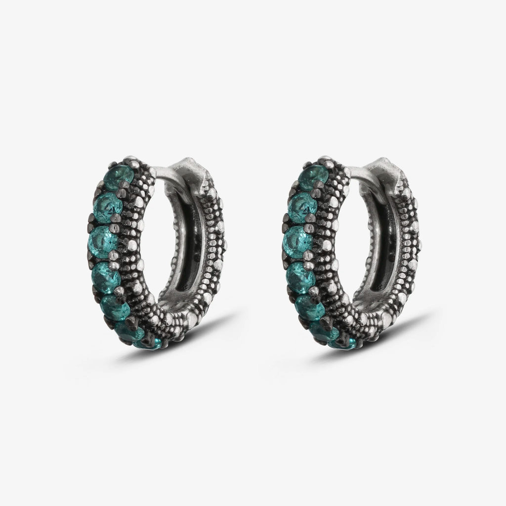 Orecchini a cerchio piccoli Albert M. realizzati in Argento 925 con superficie texture riccio di mare impreziositi da pietre. Chiusura con perno a incastro.