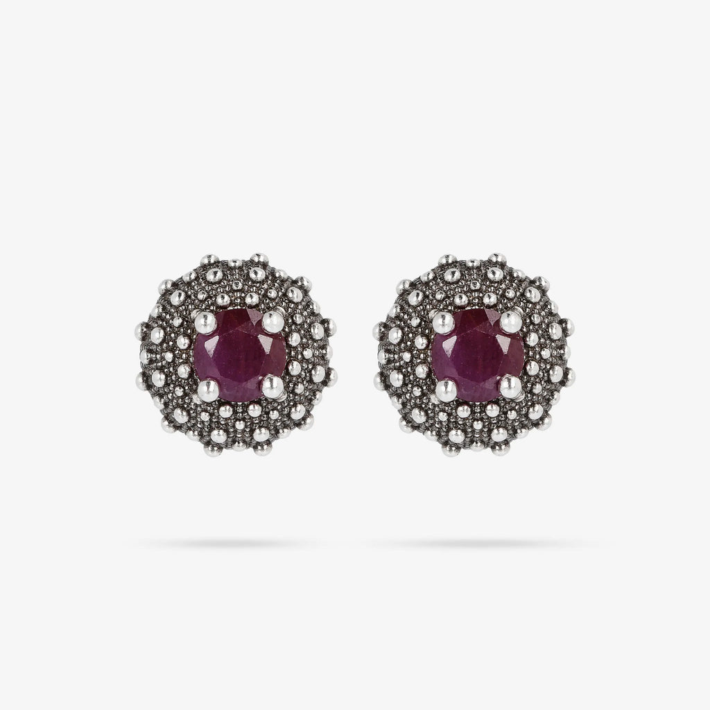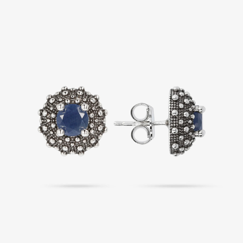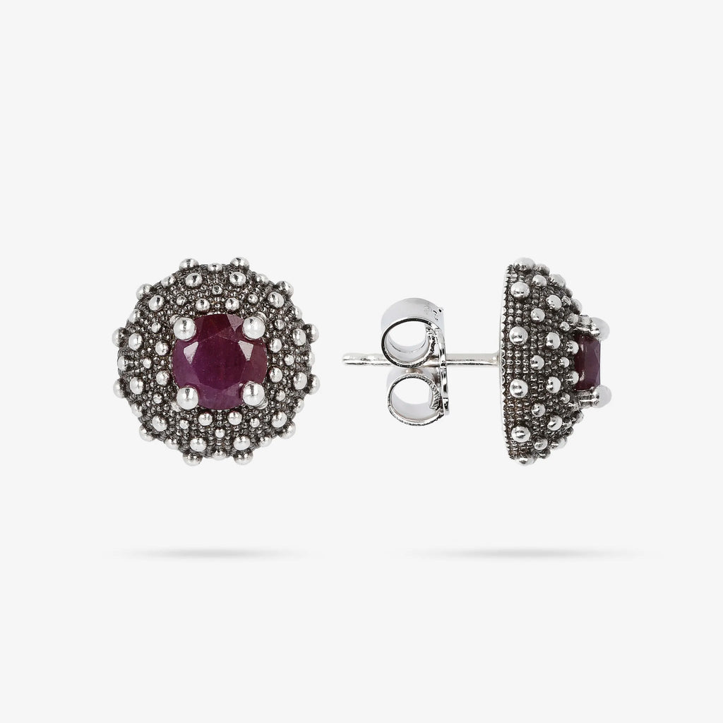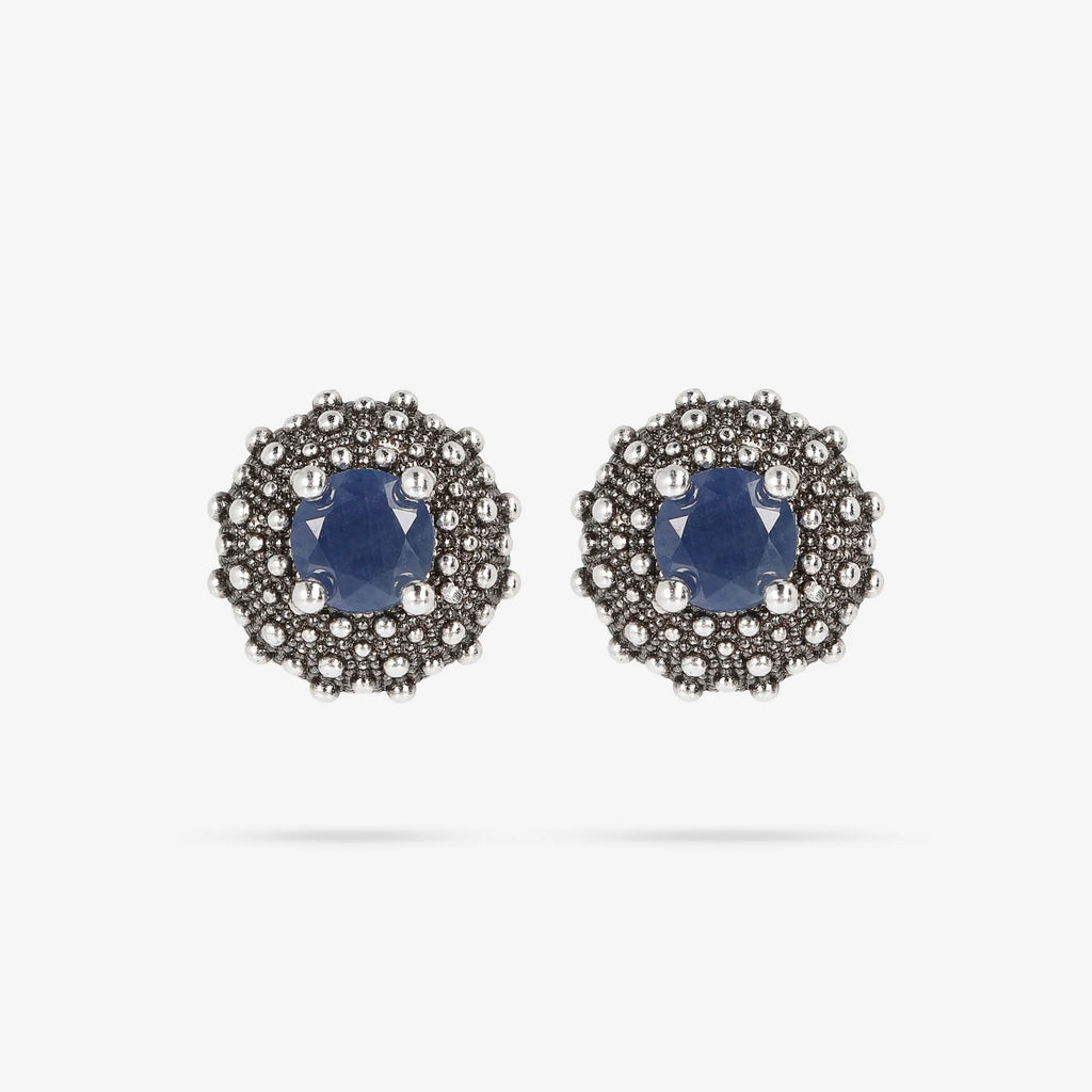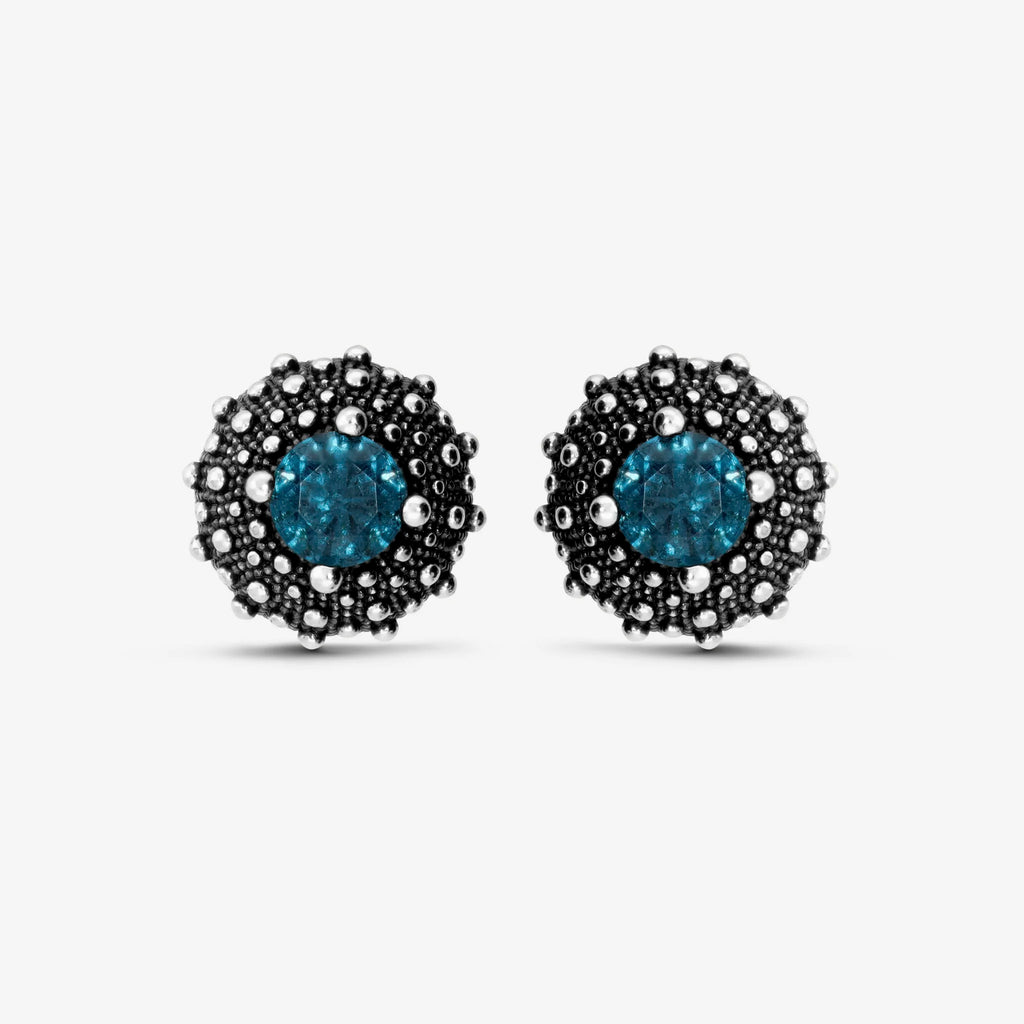 Orecchini a lobo in Argento 925, placcato Rutenio, con superficie texture riccio di mare e pietra naturale sfaccettata (6 mm). Chiusura a perno e farfalla. Dimensioni orecchino (10 mm).